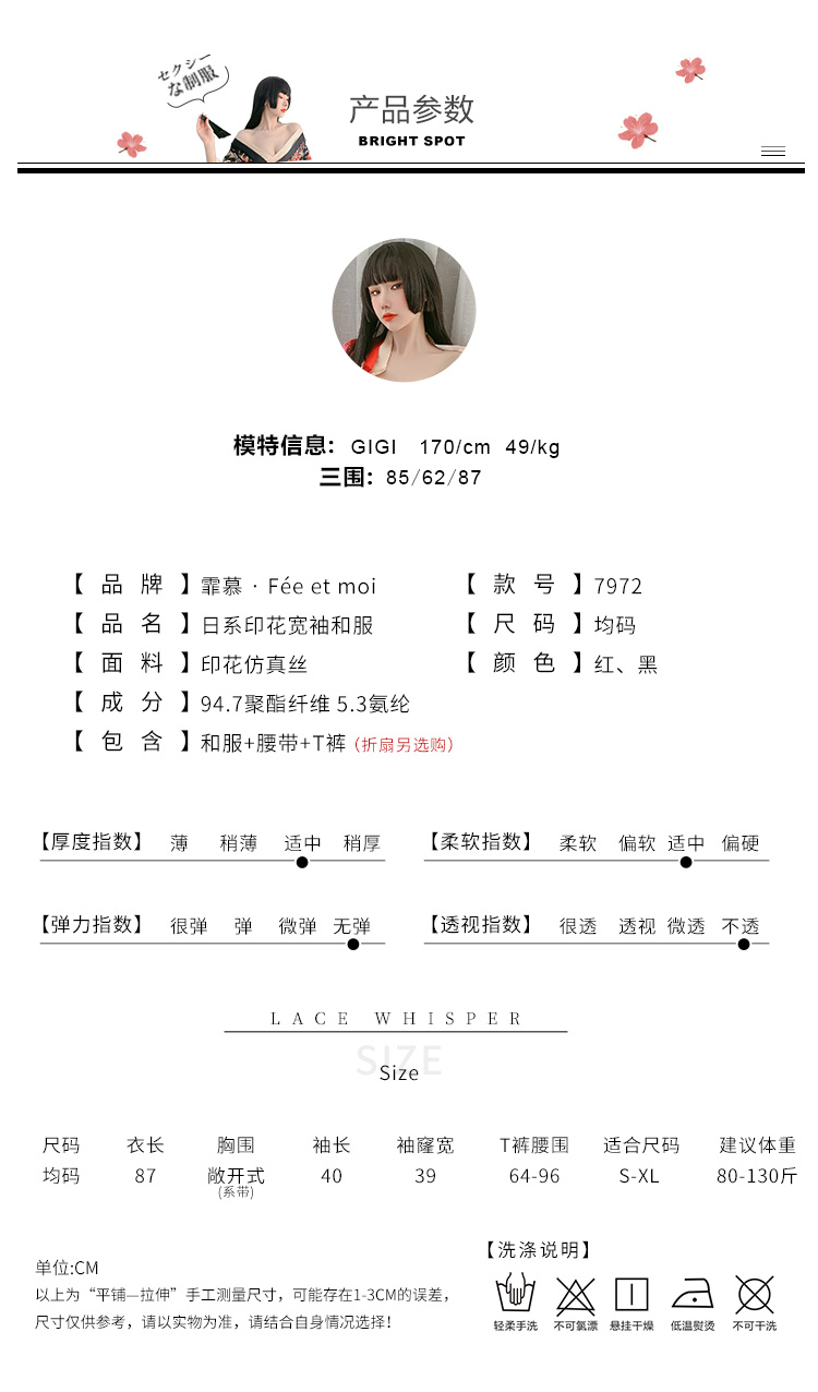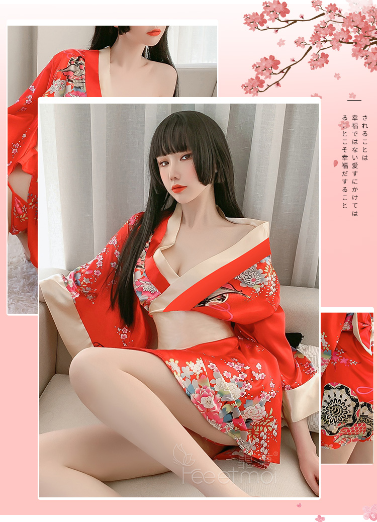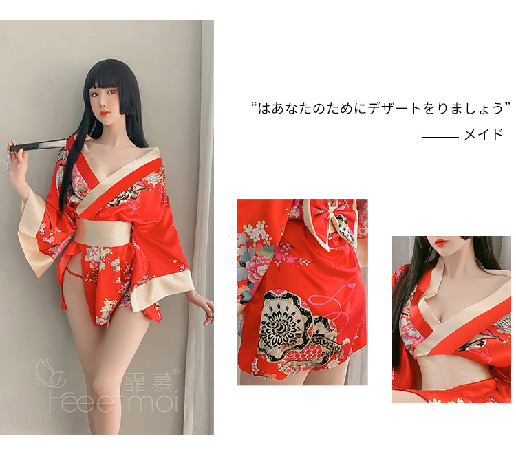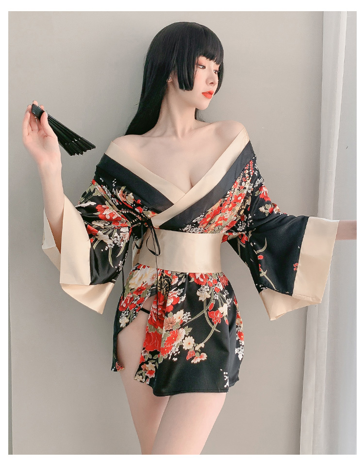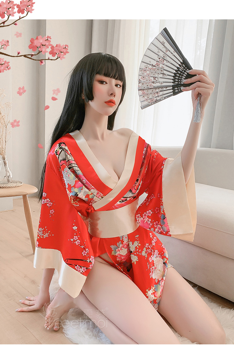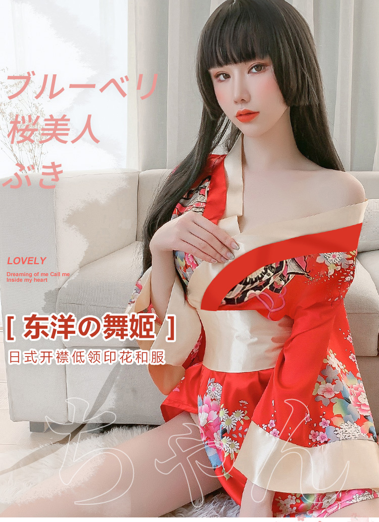 【东阳舞姬】日式情趣内衣 女装 制服 深V 印花 日式 和服 性感套装 套装 7972