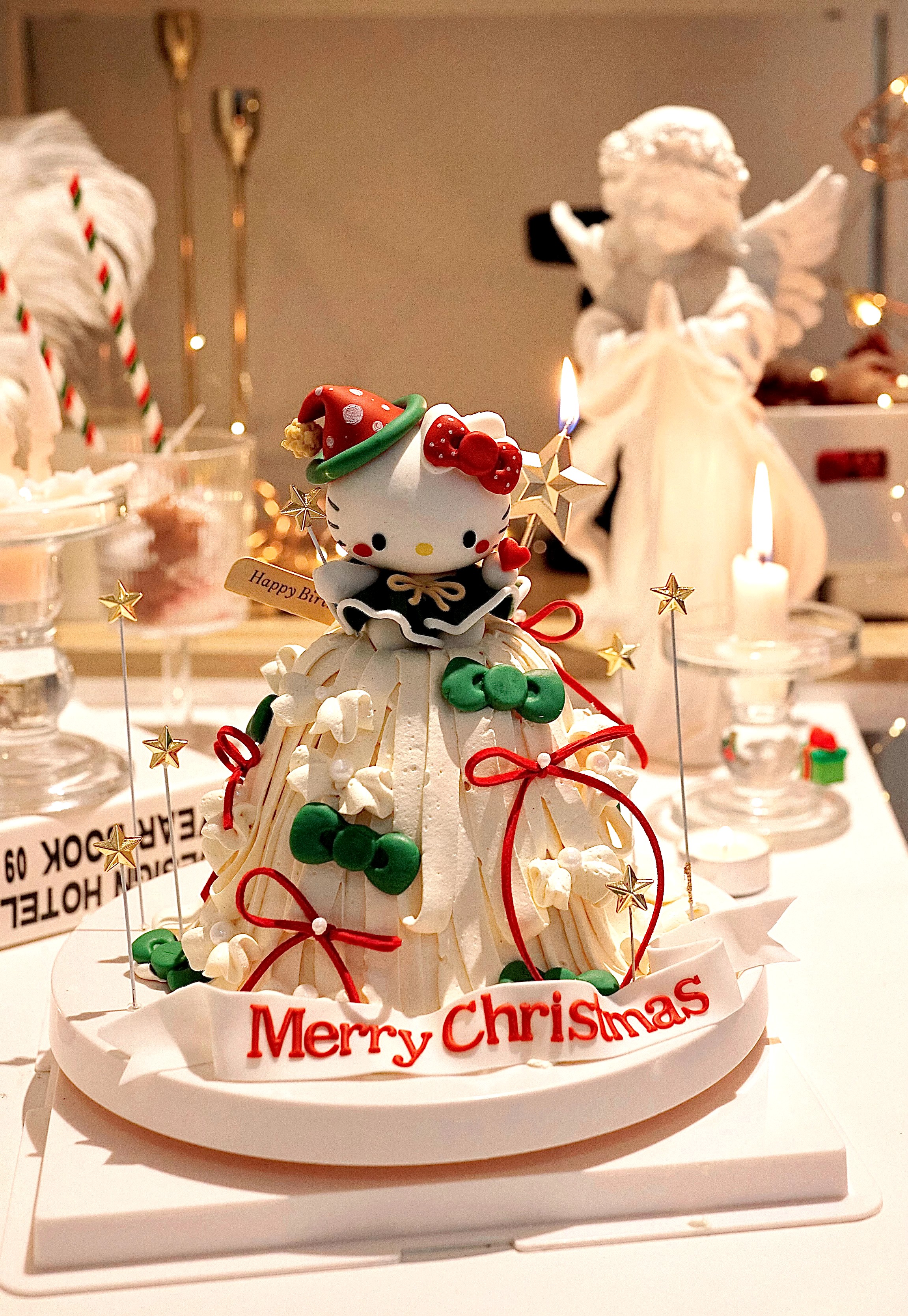 【圣诞版绿披风Kitty】-翻糖造型-新鲜水果蛋糕