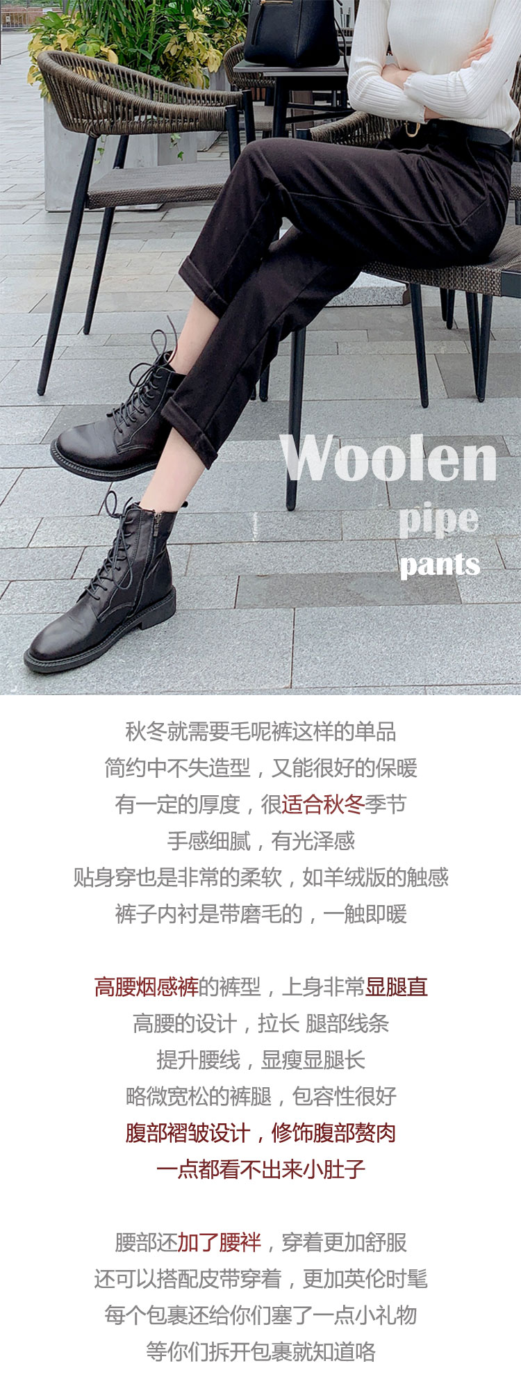 【百图lulu私服】【毛呢裤】九分裤 高腰显瘦直筒宽松 毛呢裤 烟管裤