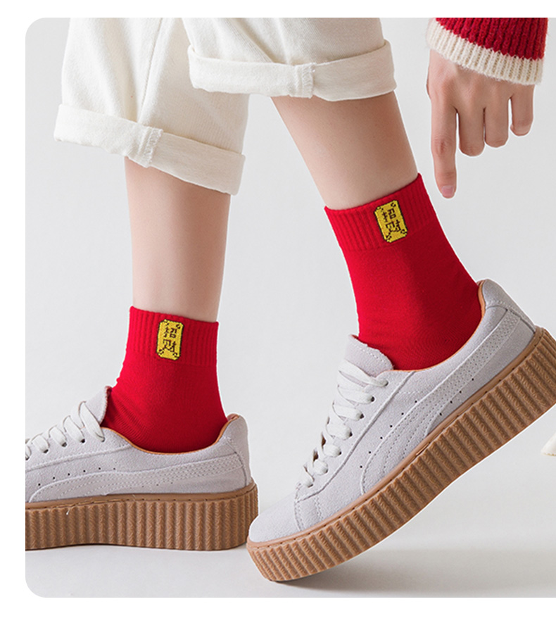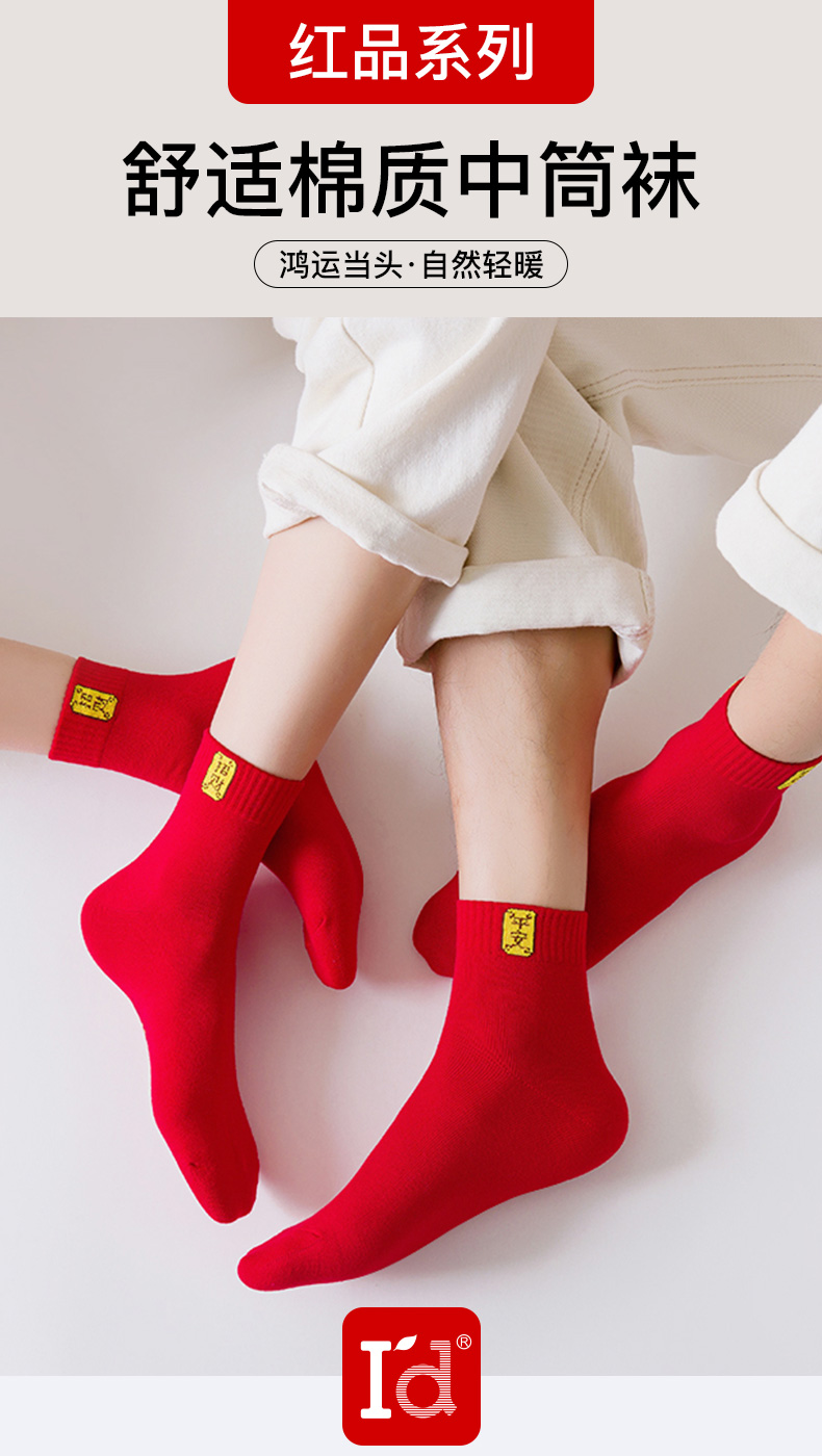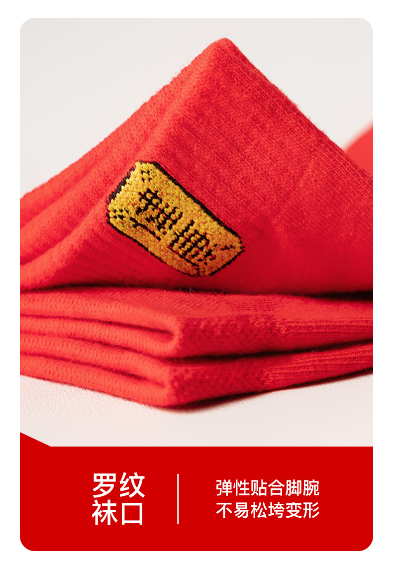 【鸿运5双装】爱帝中邦棉袜喜庆中国红组合装本命年红袜