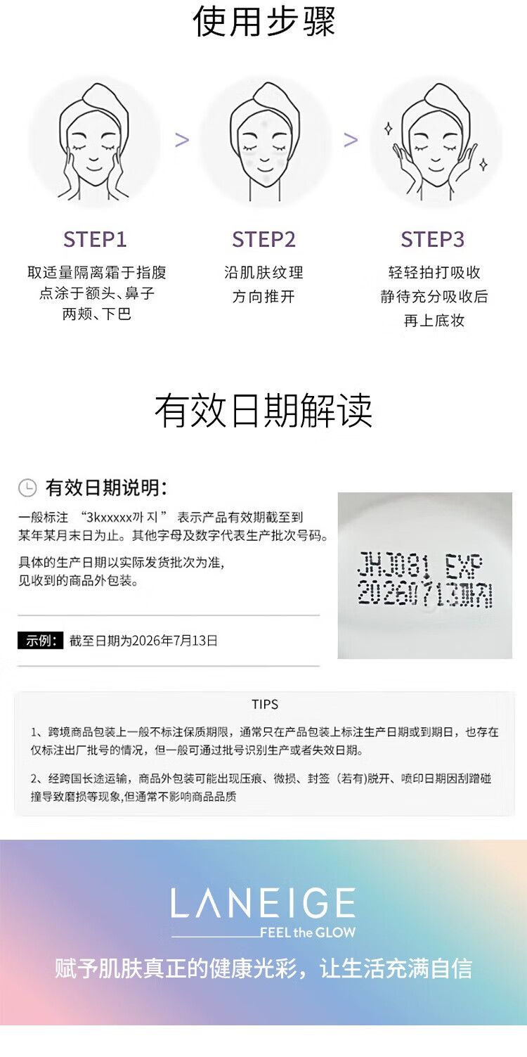 【保税仓直发】兰芝丝柔防晒隔离霜30ml/紫色