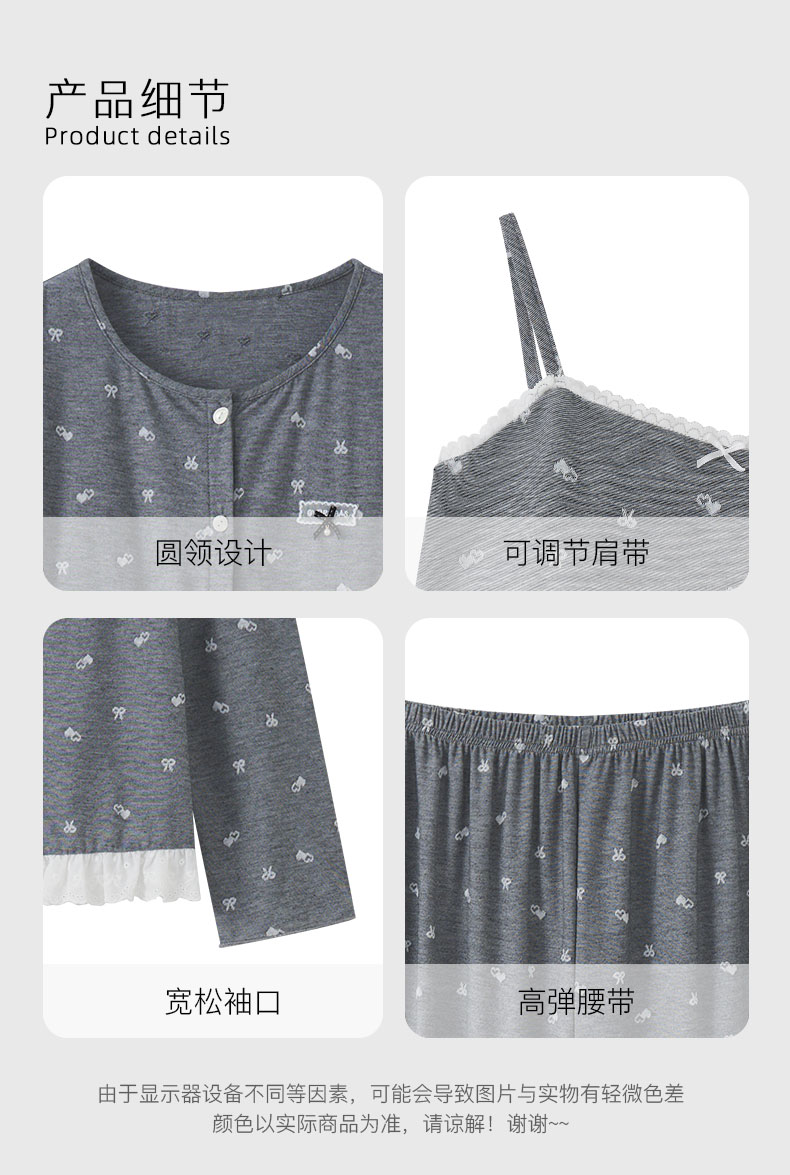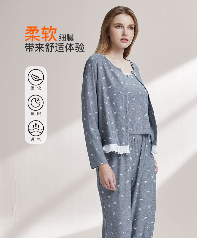 【7.5折限时特惠】【秀黛】女圆领针织提花长袖三件套装女士睡衣家居服W1551027T【门店同款】