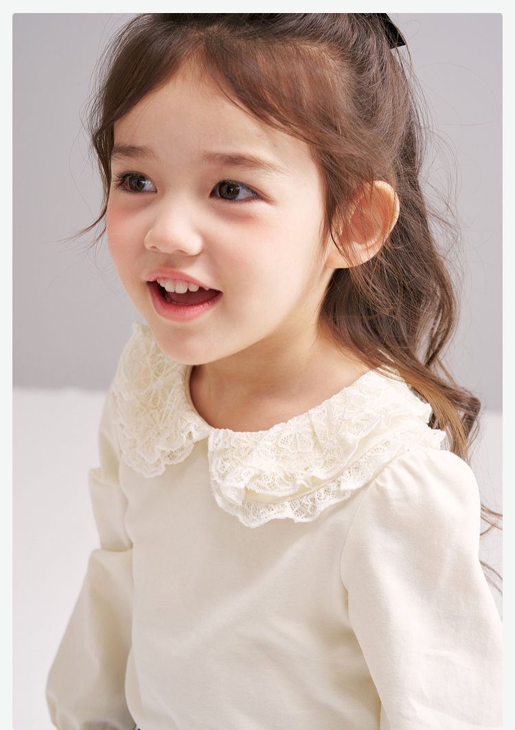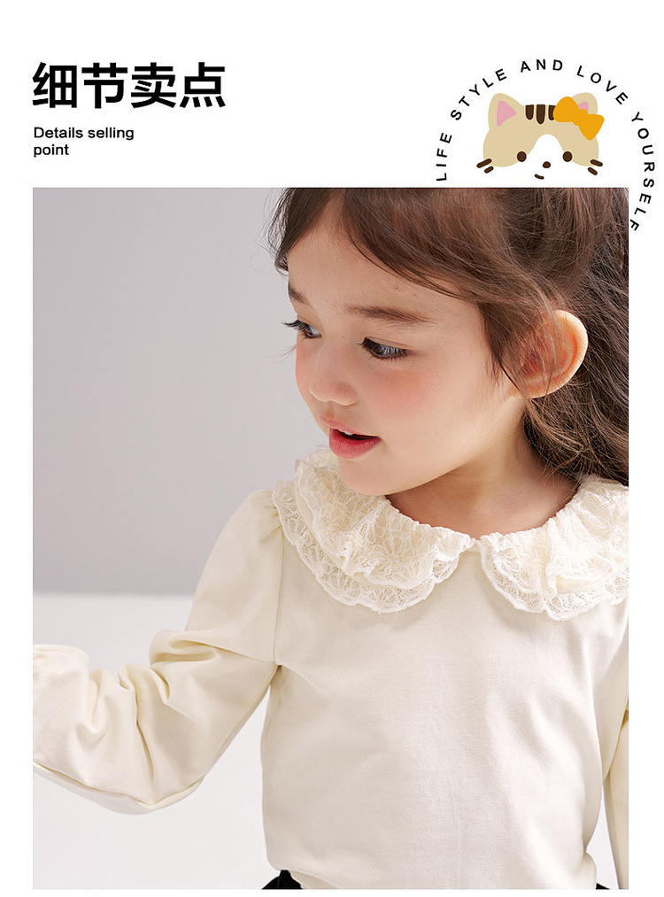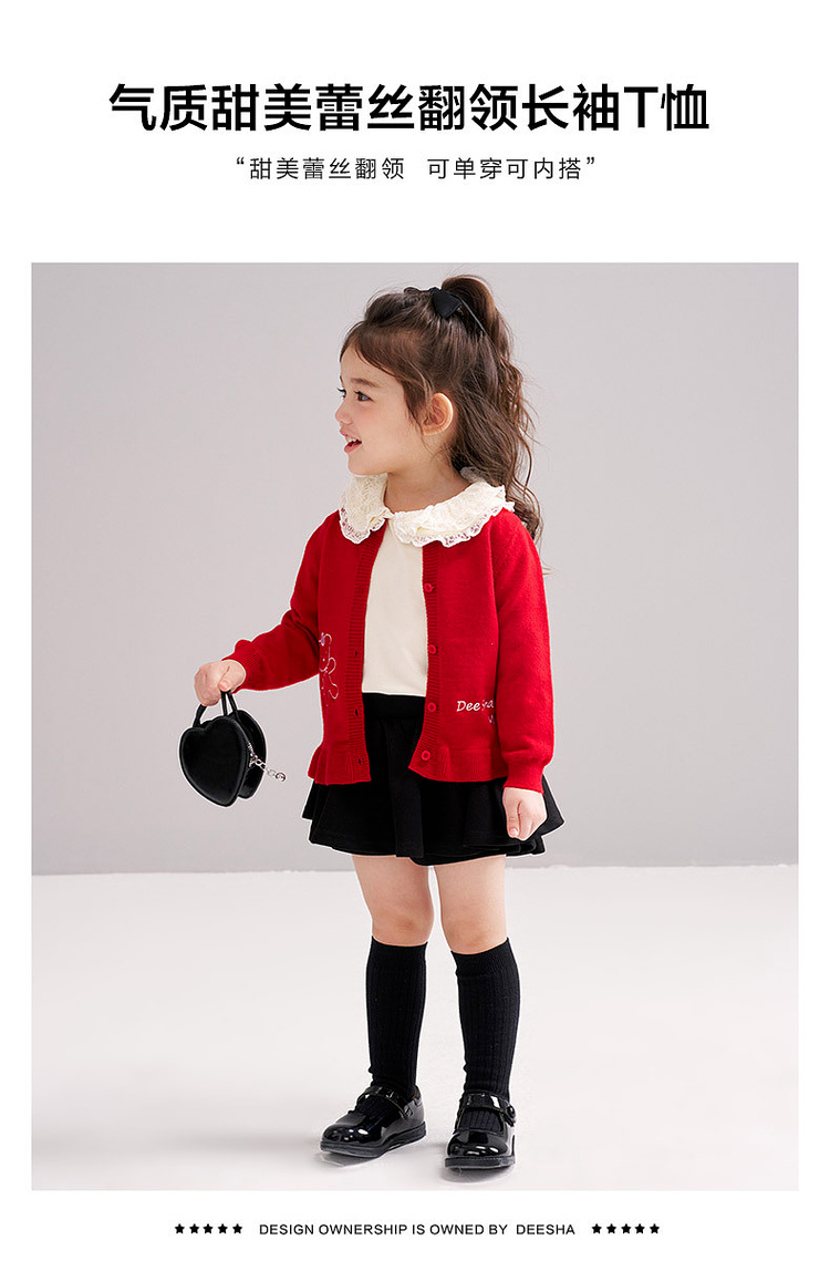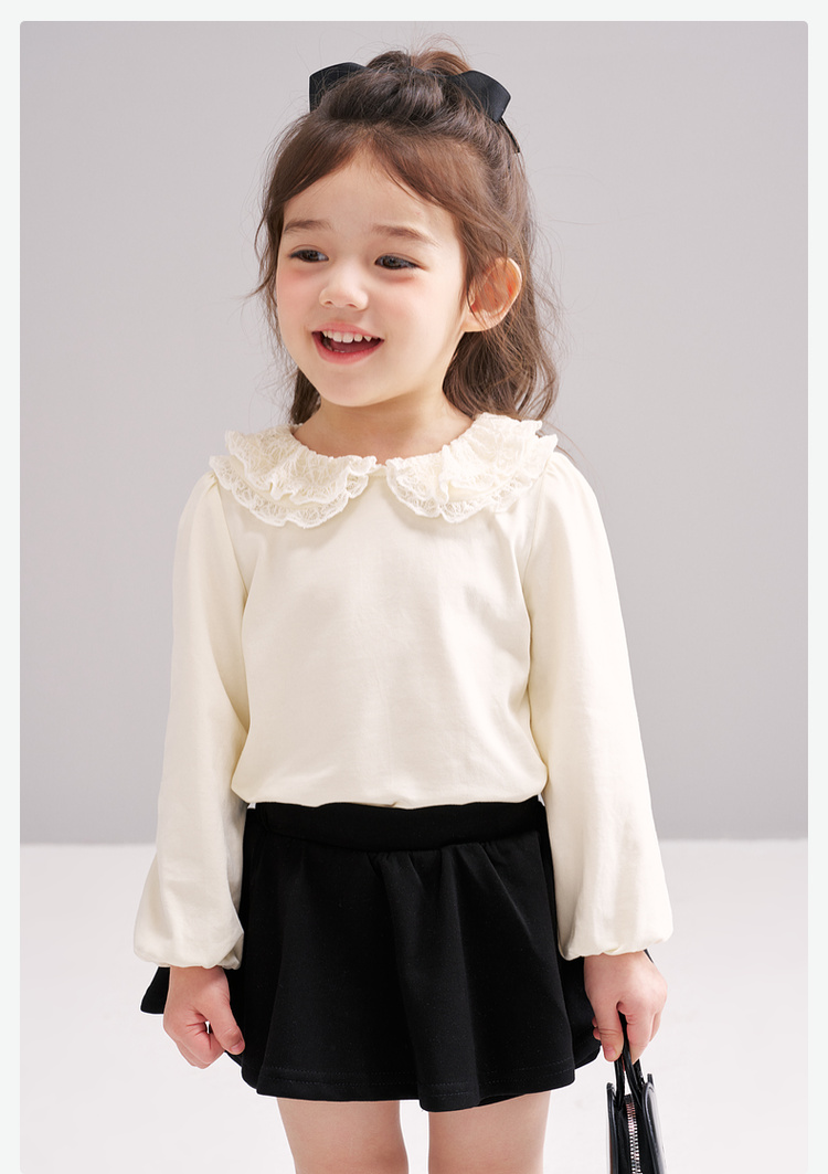 笛莎Deesha 2026春季女童气质甜美蕾丝翻领长袖T恤