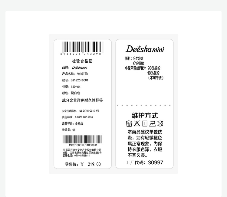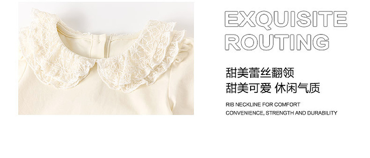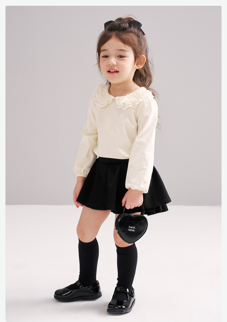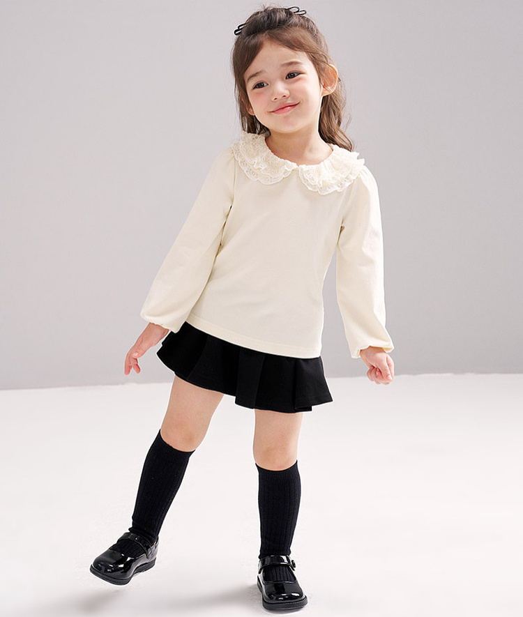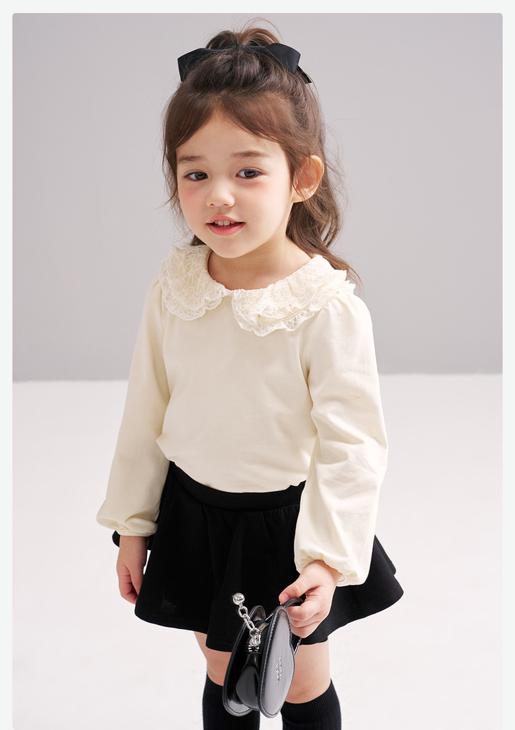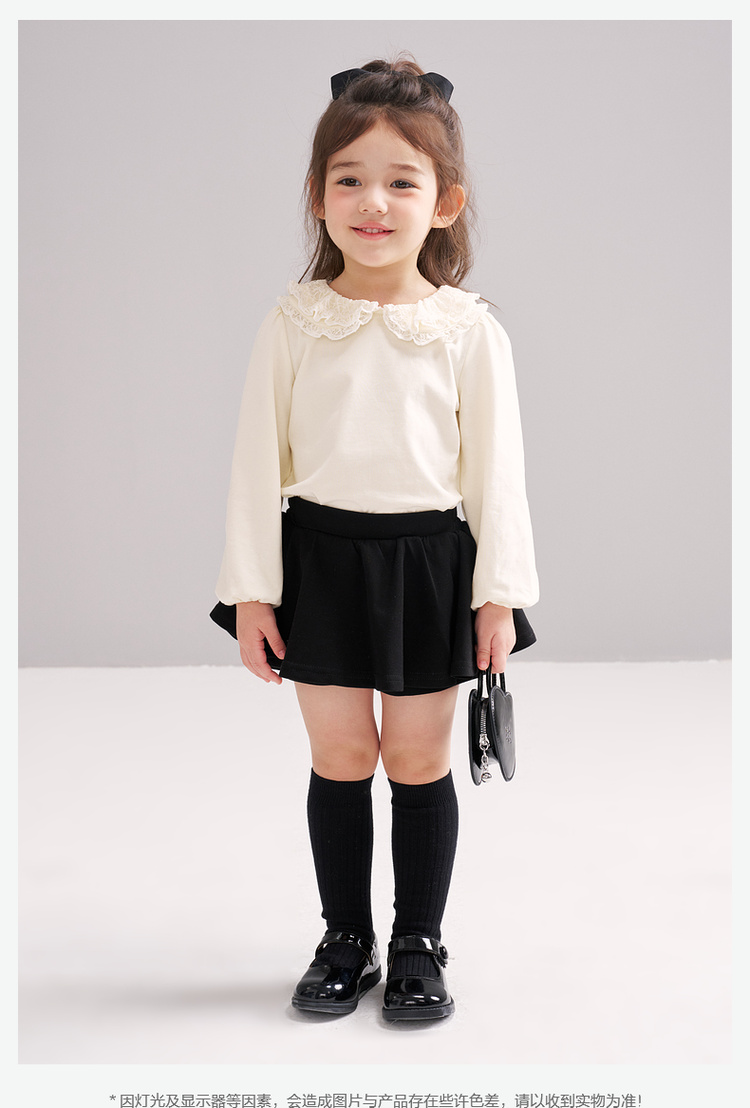 笛莎Deesha 2026春季女童气质甜美蕾丝翻领长袖T恤