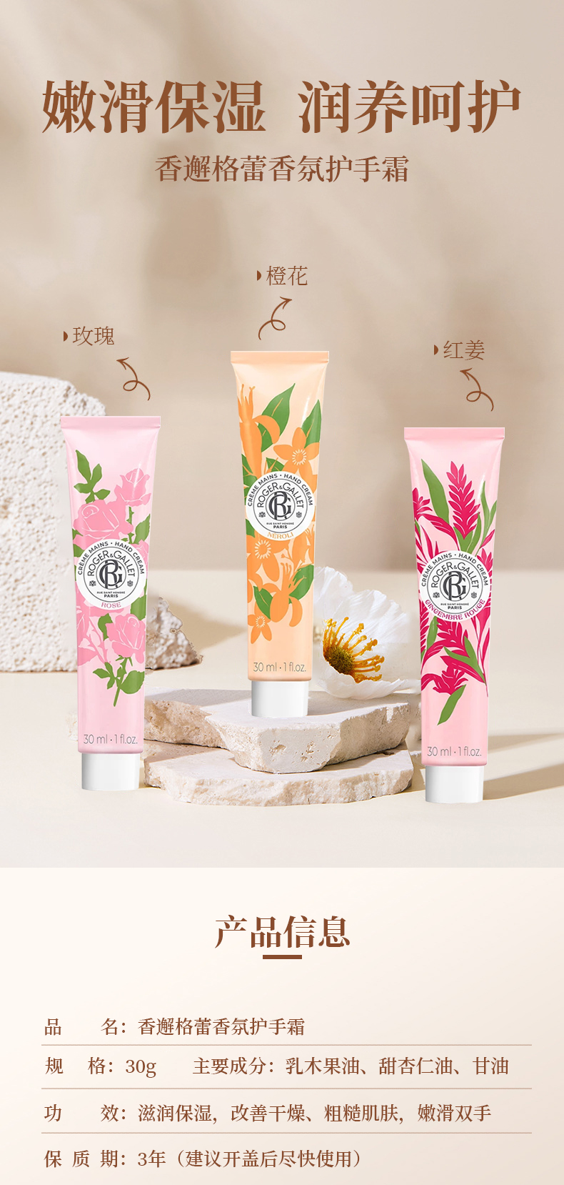 香邂格蕾香氛护手霜30ml补水保湿滋润新版铝管无花果红姜多款