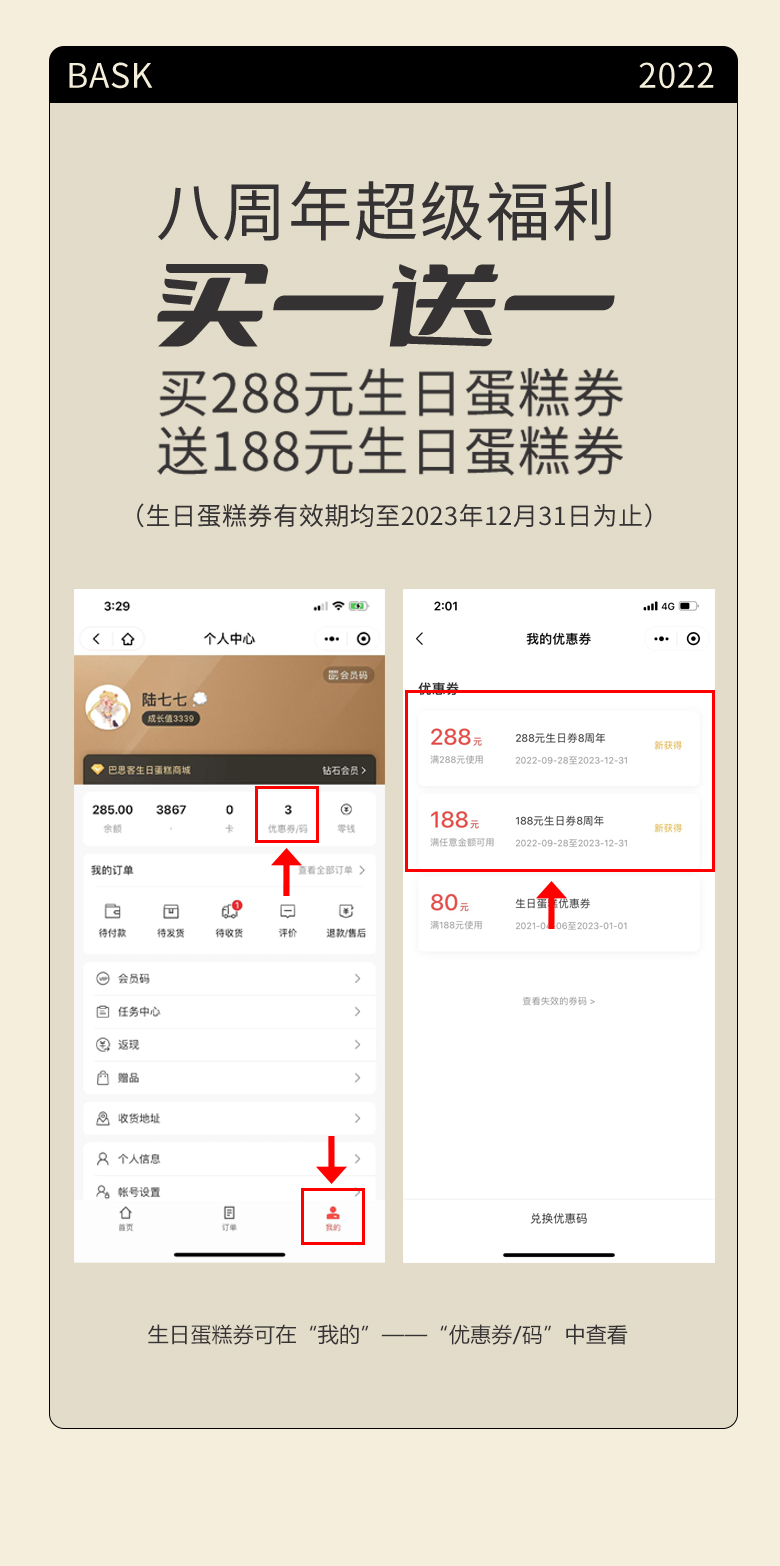 购288元生日券送188元生日券