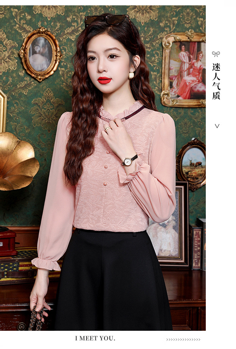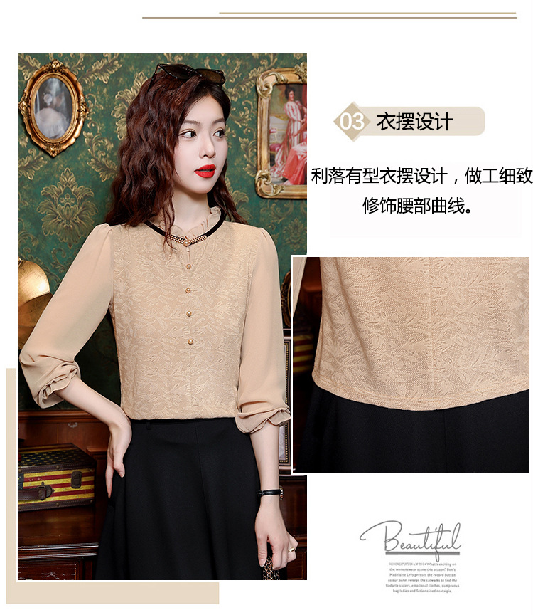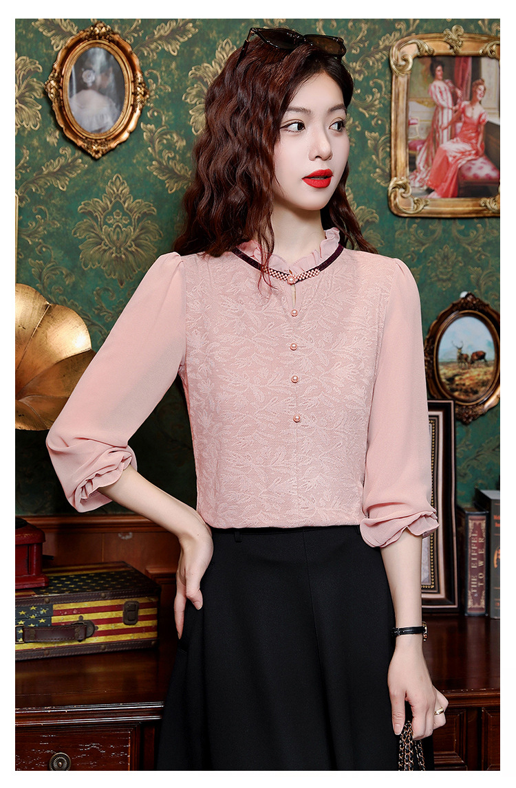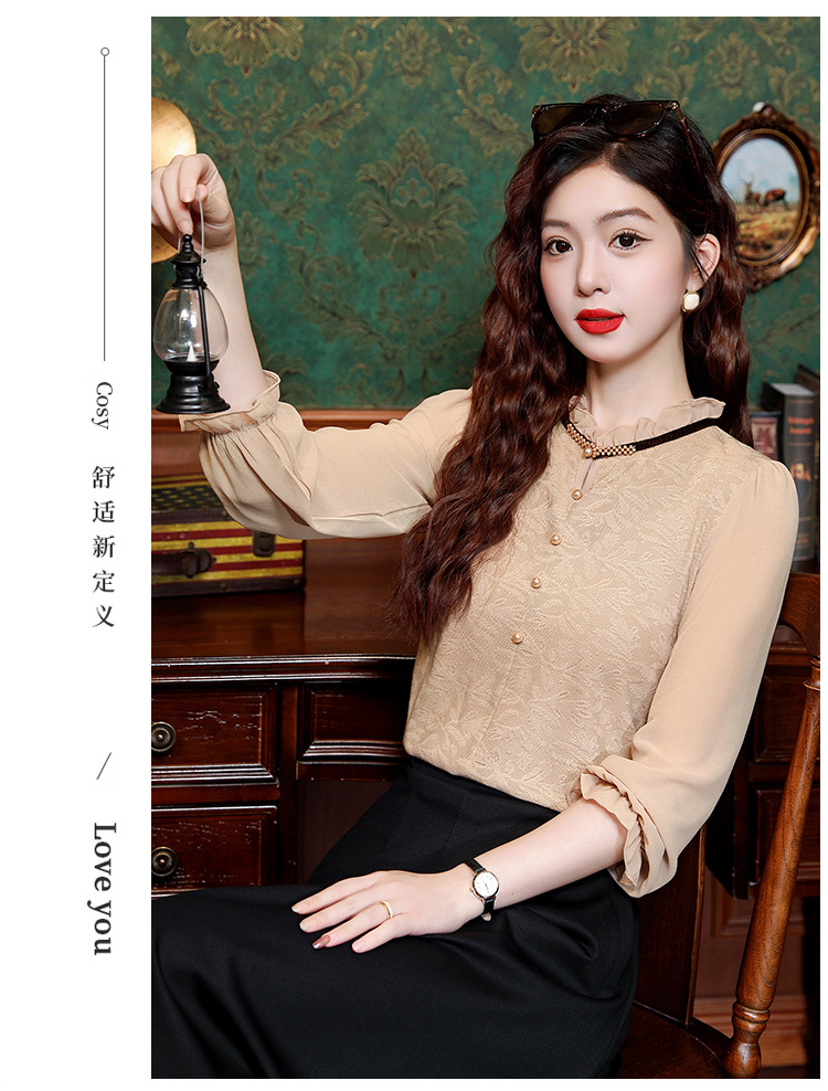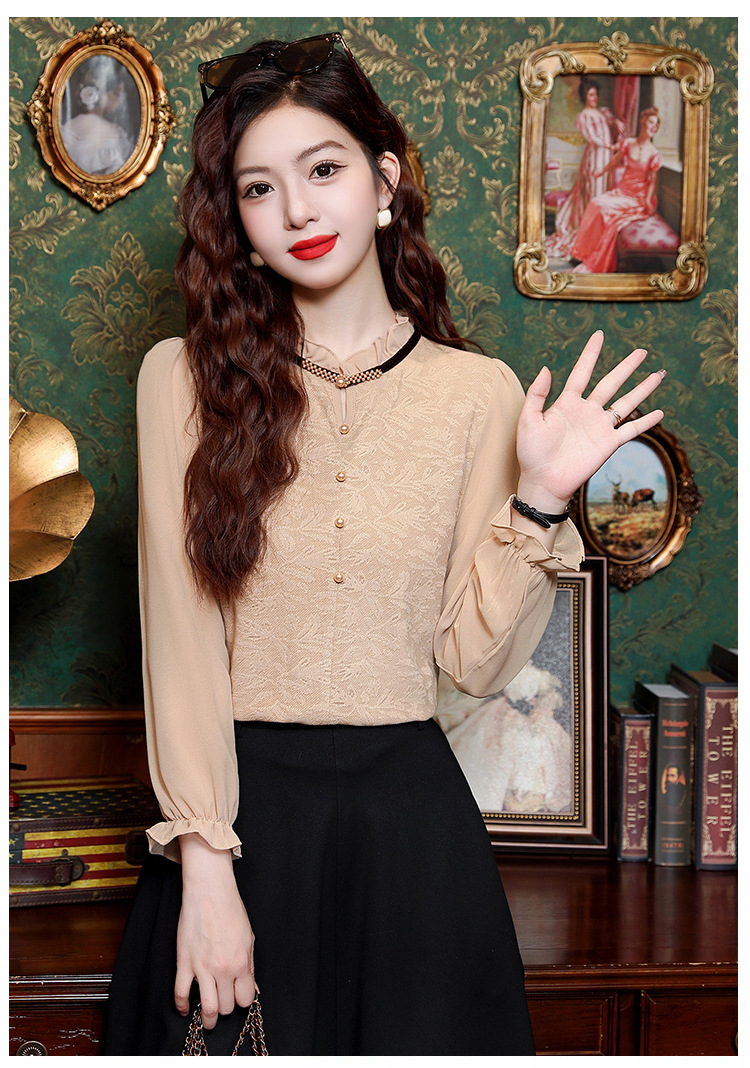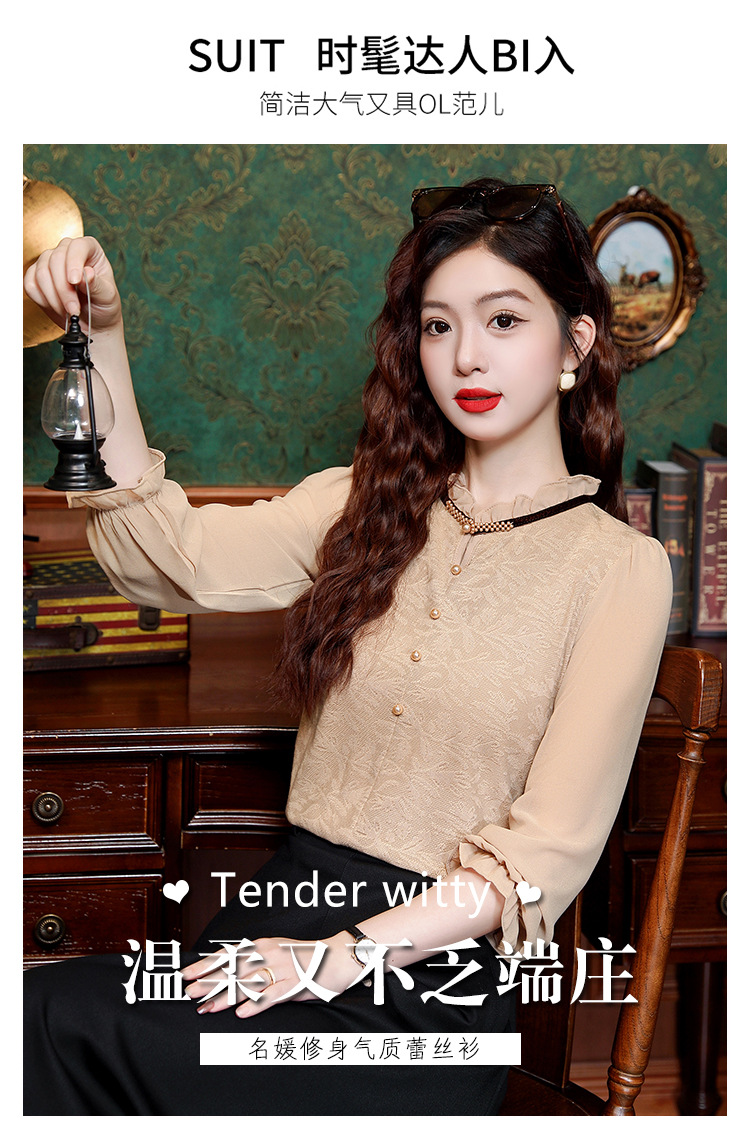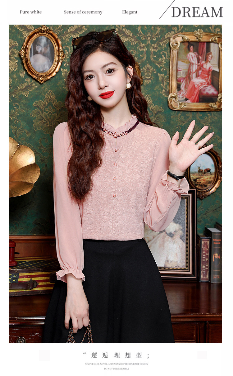 荷叶领珍珠扣喇叭袖显瘦简约上衣KQL-E324N1104