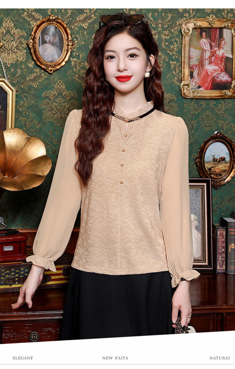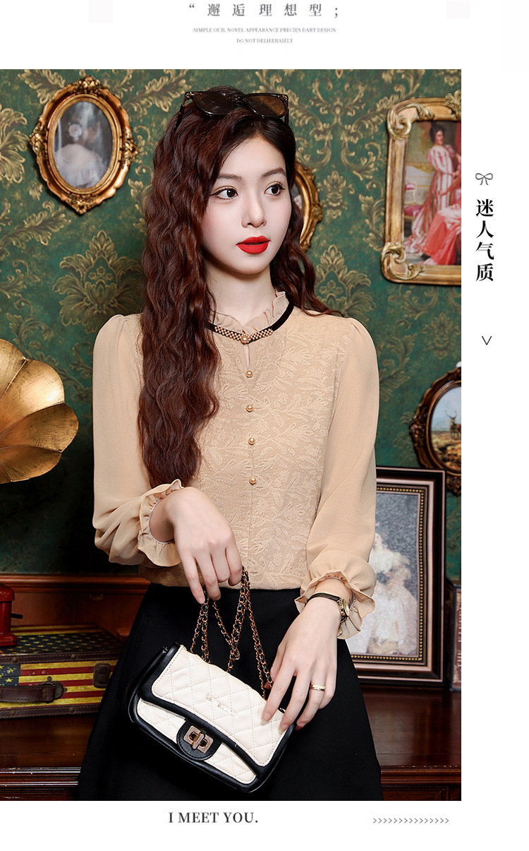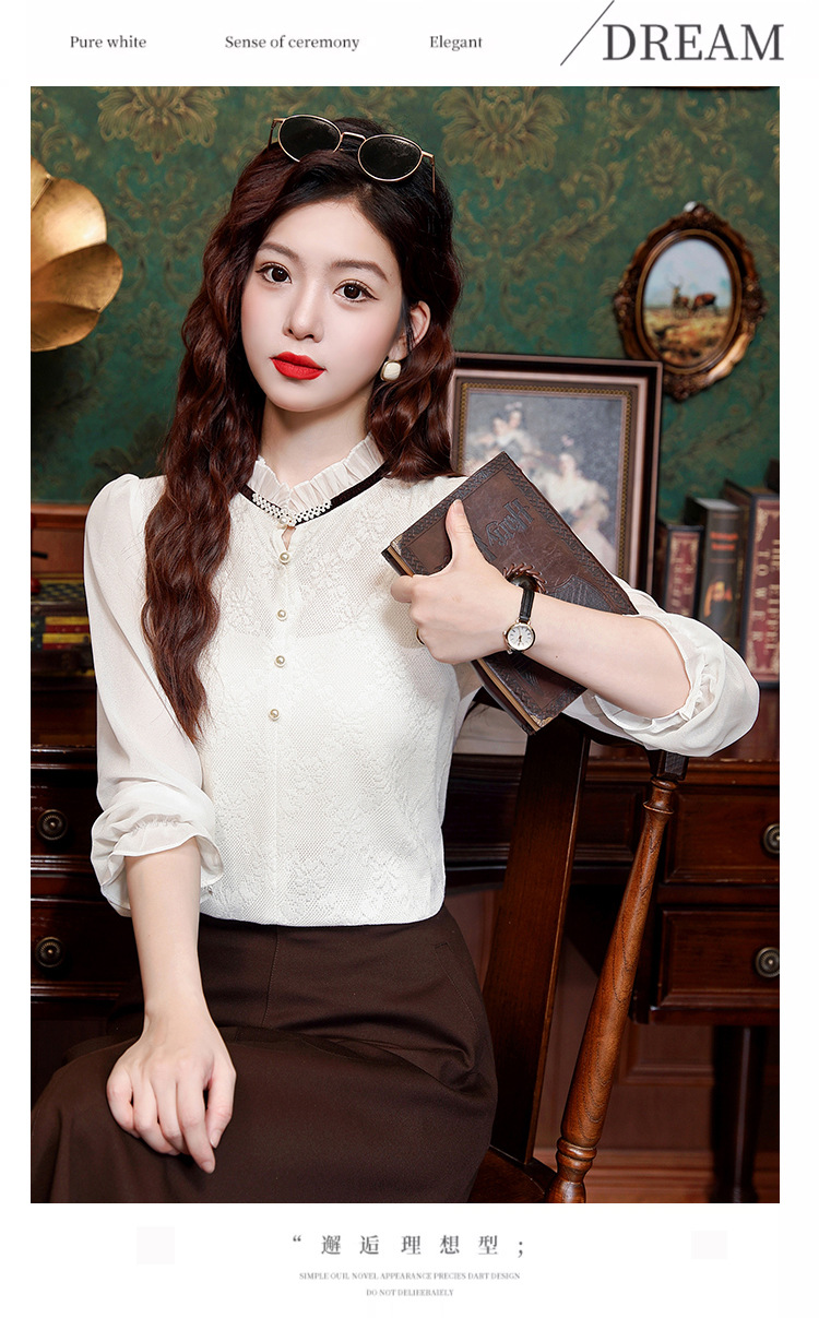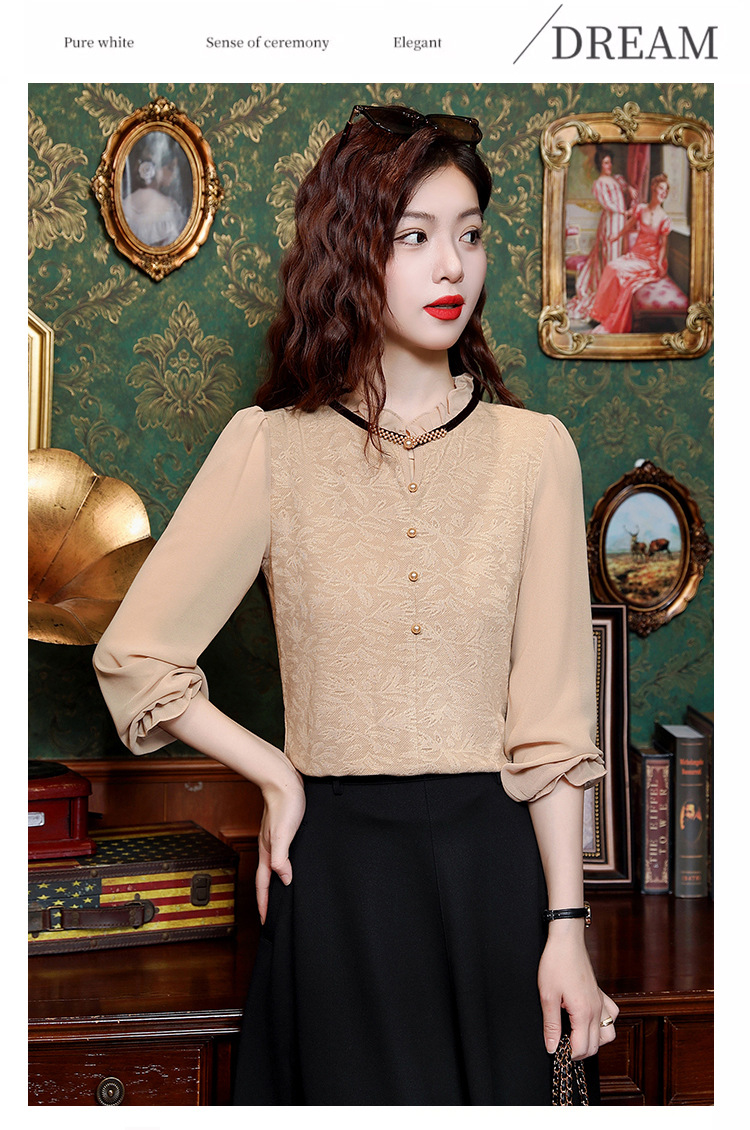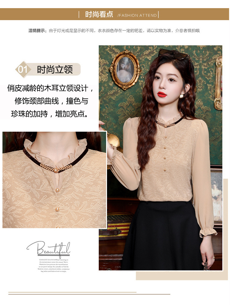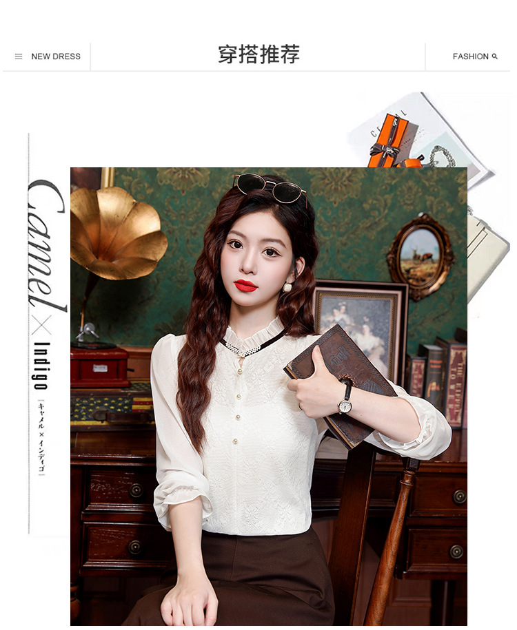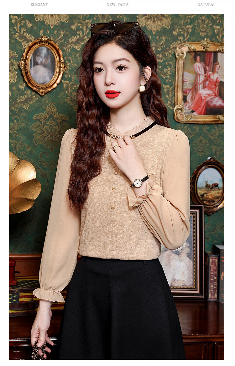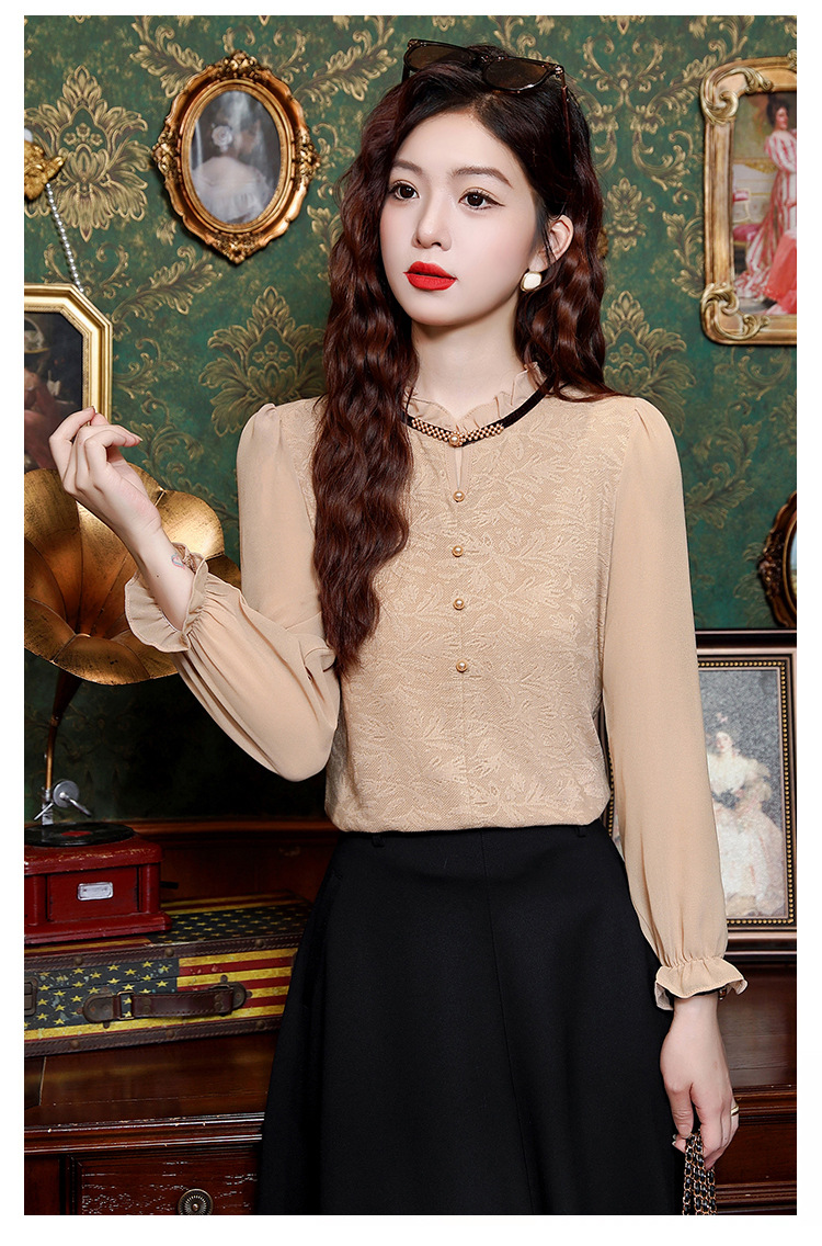 荷叶领珍珠扣喇叭袖显瘦简约上衣KQL-E324N1104