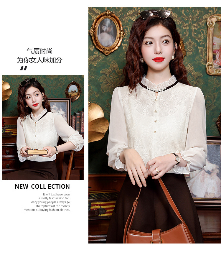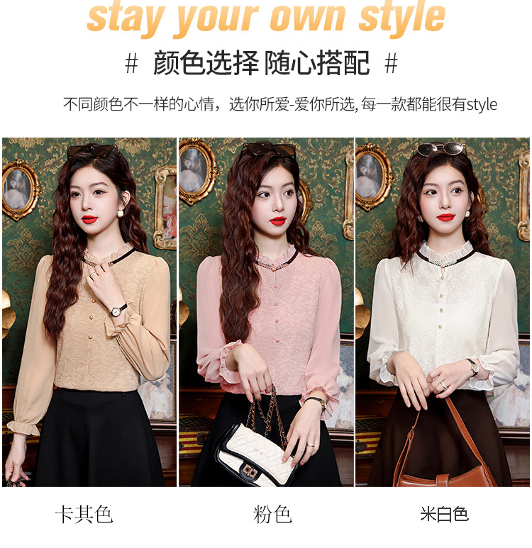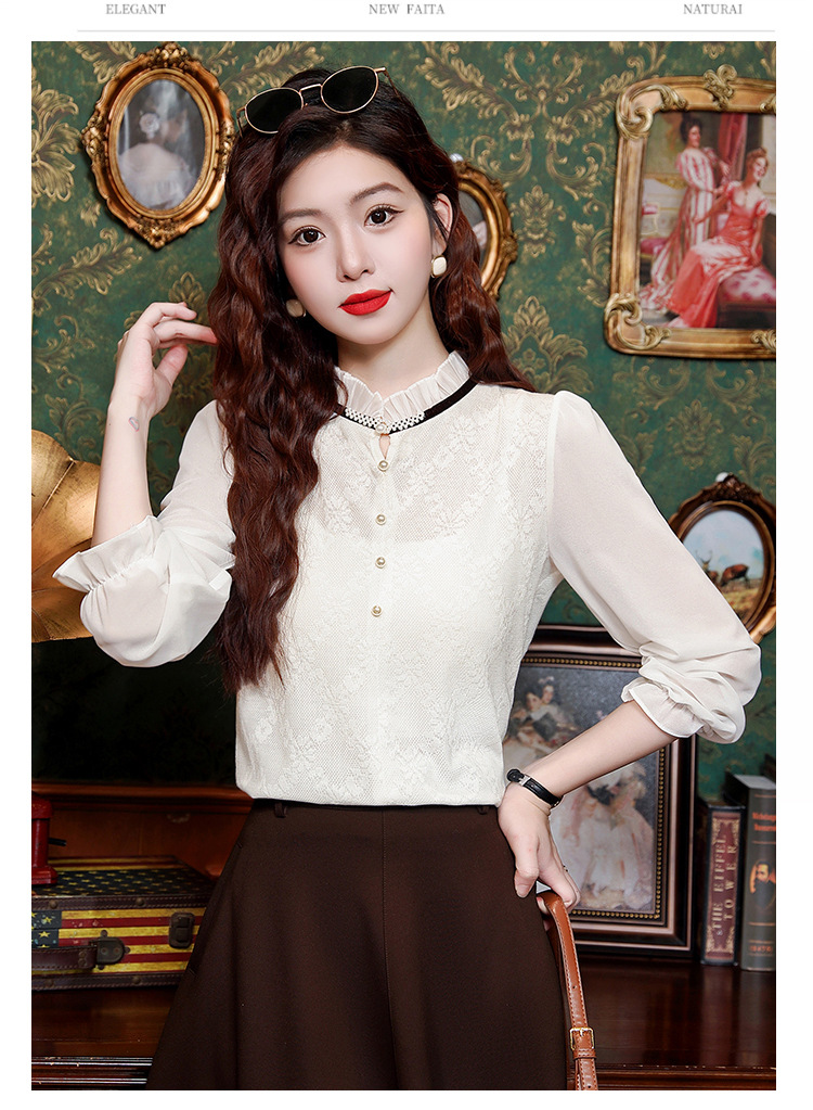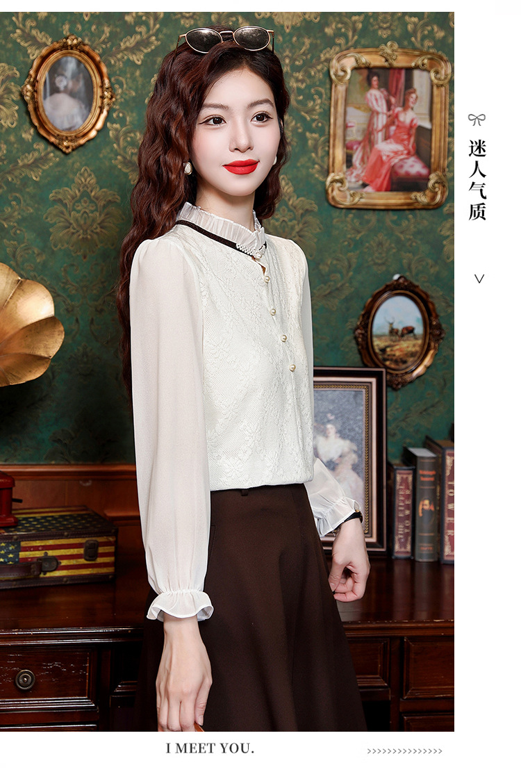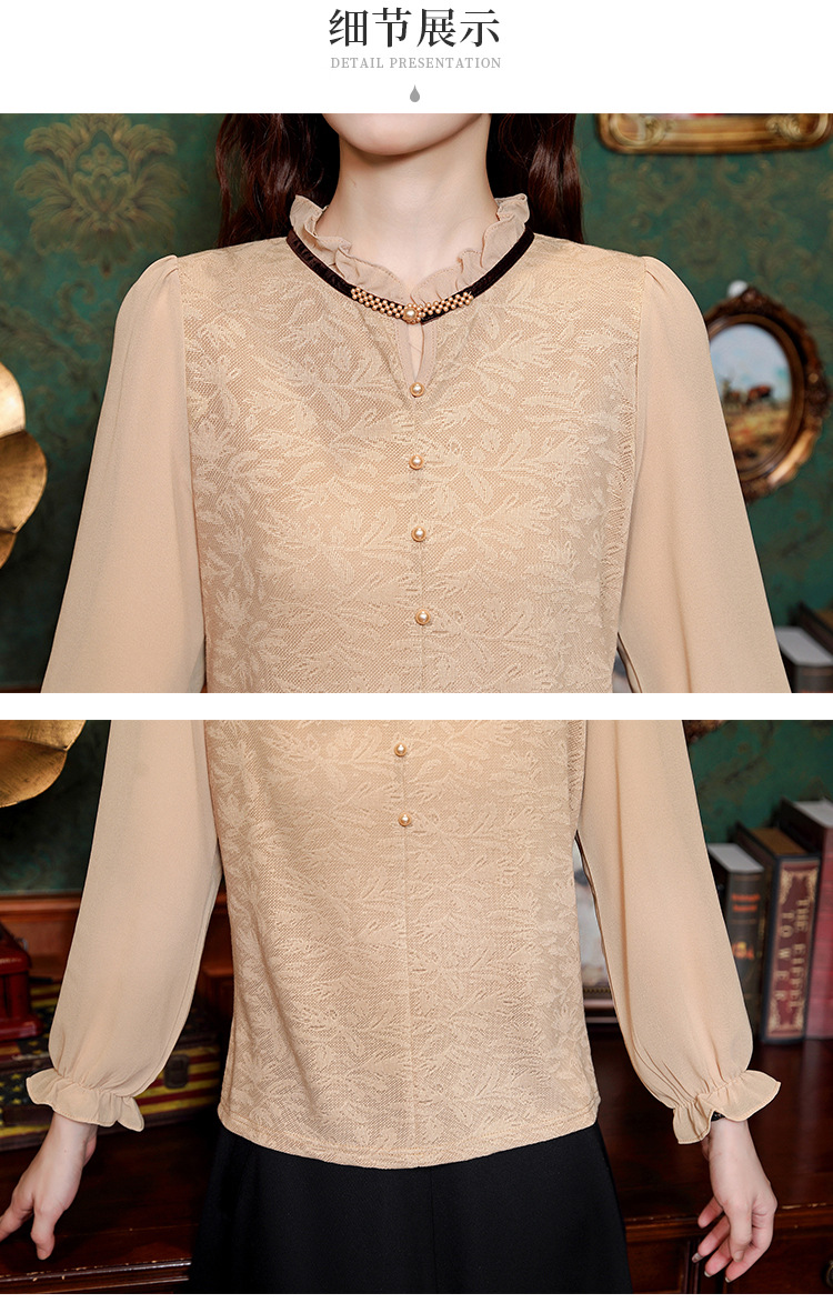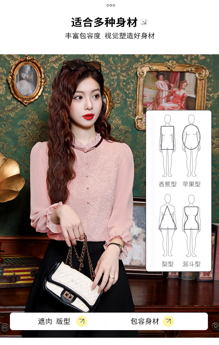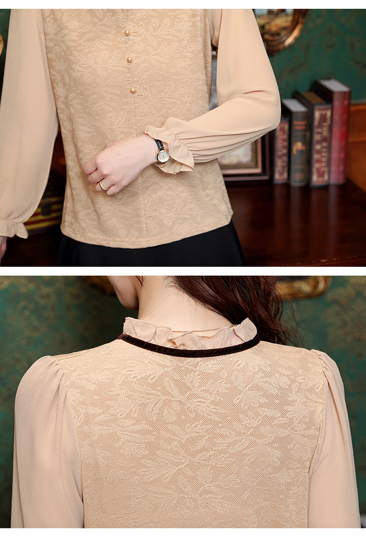 荷叶领珍珠扣喇叭袖显瘦简约上衣KQL-E324N1104