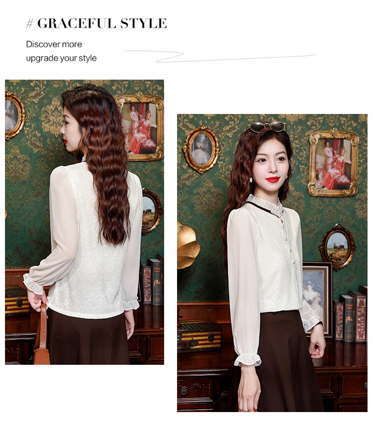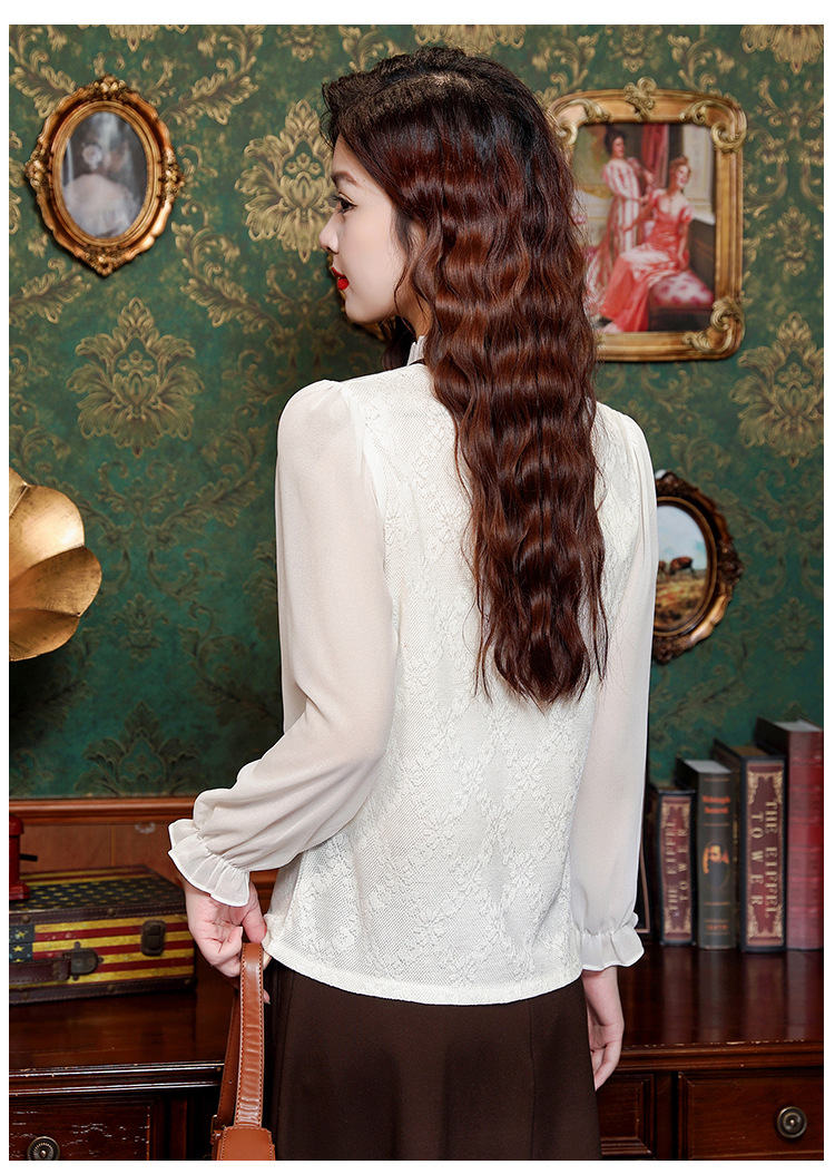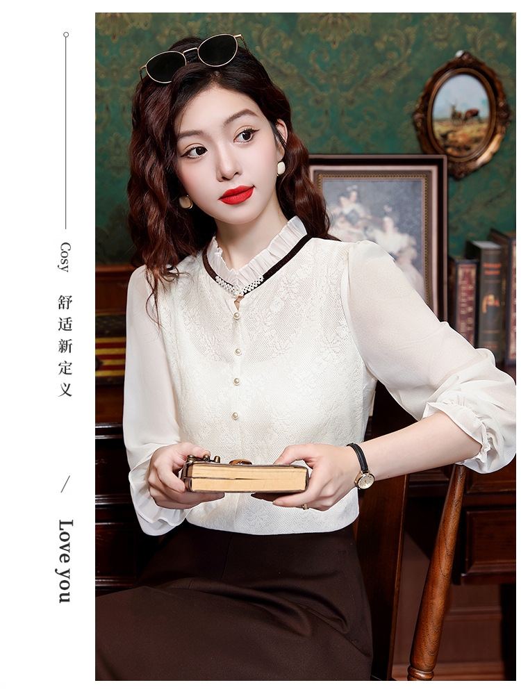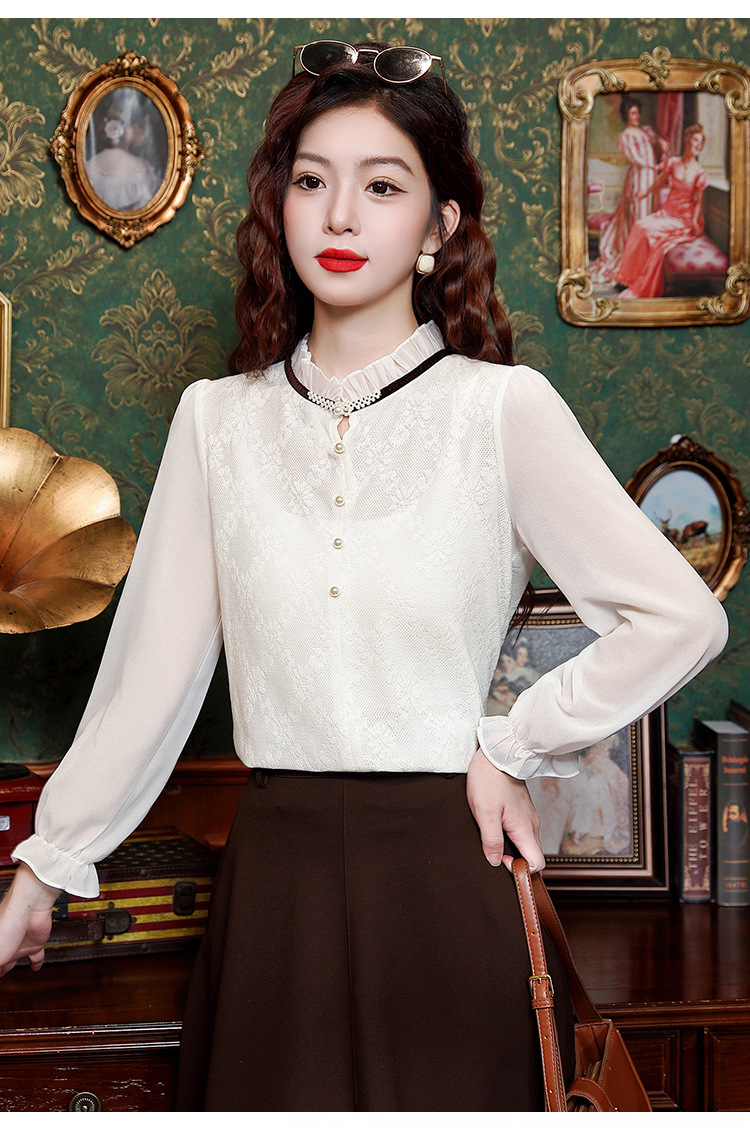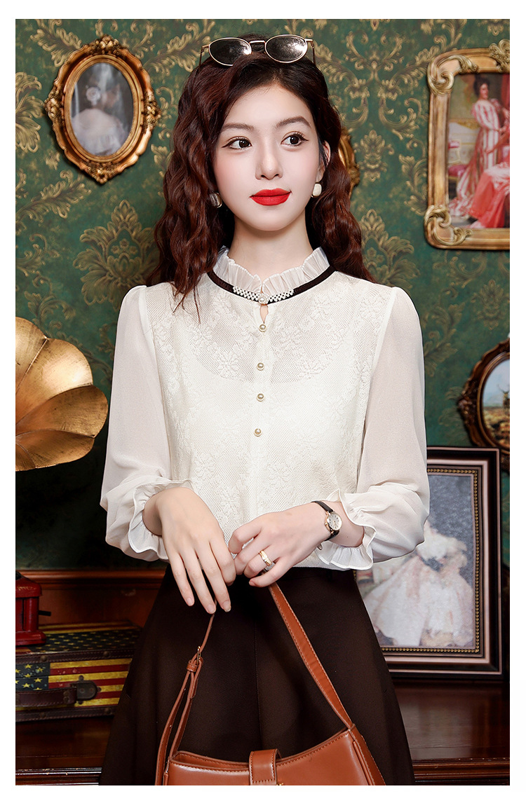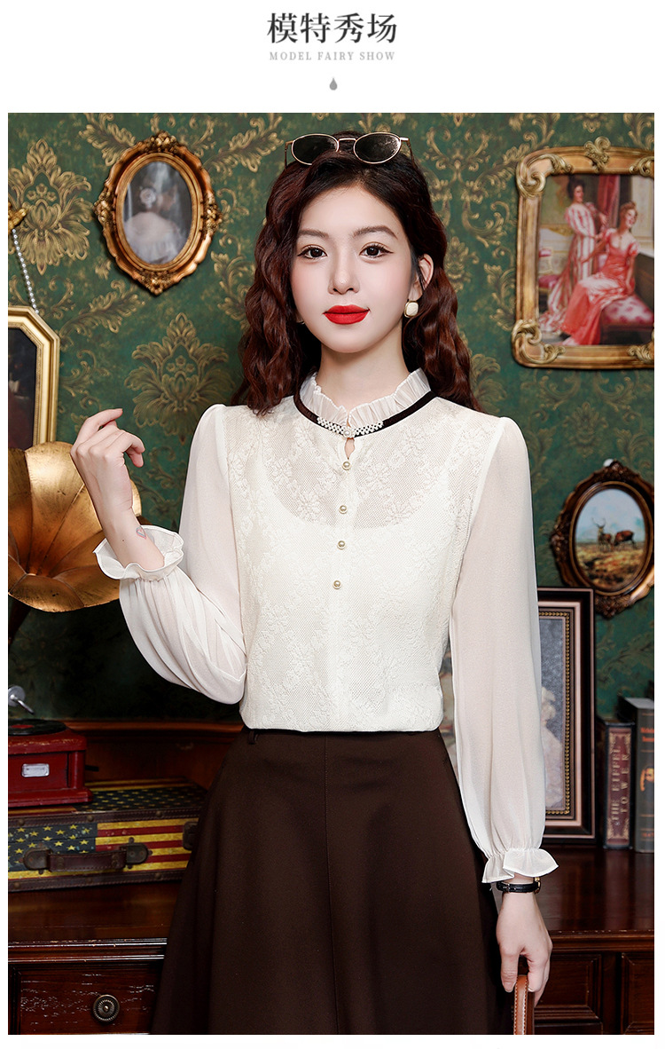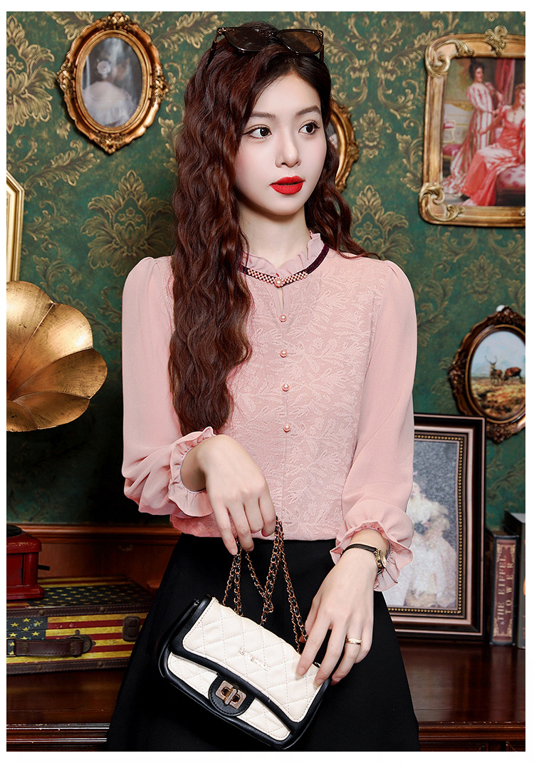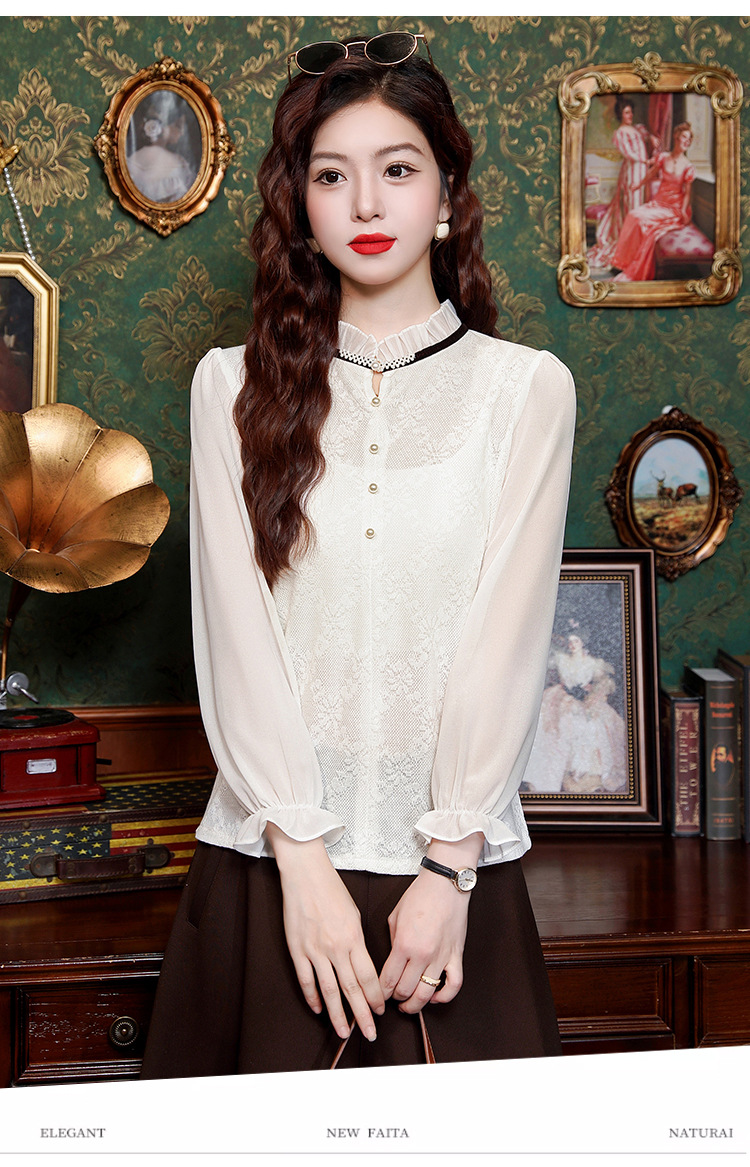 荷叶领珍珠扣喇叭袖显瘦简约上衣KQL-E324N1104