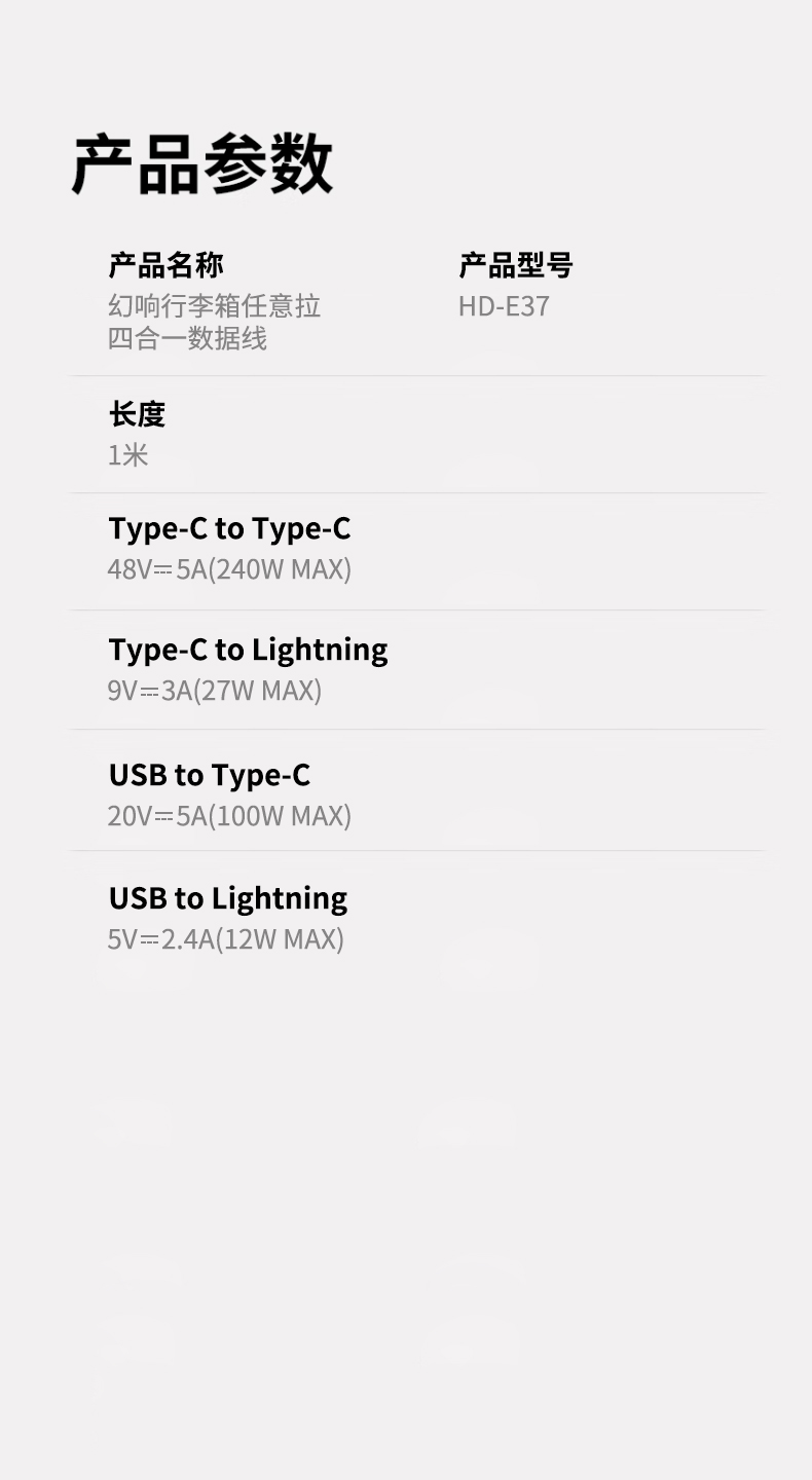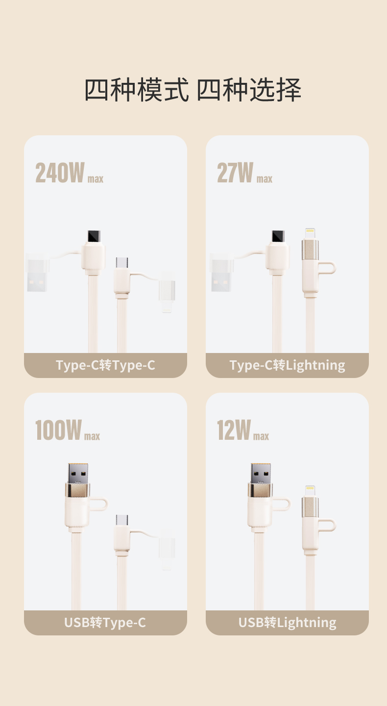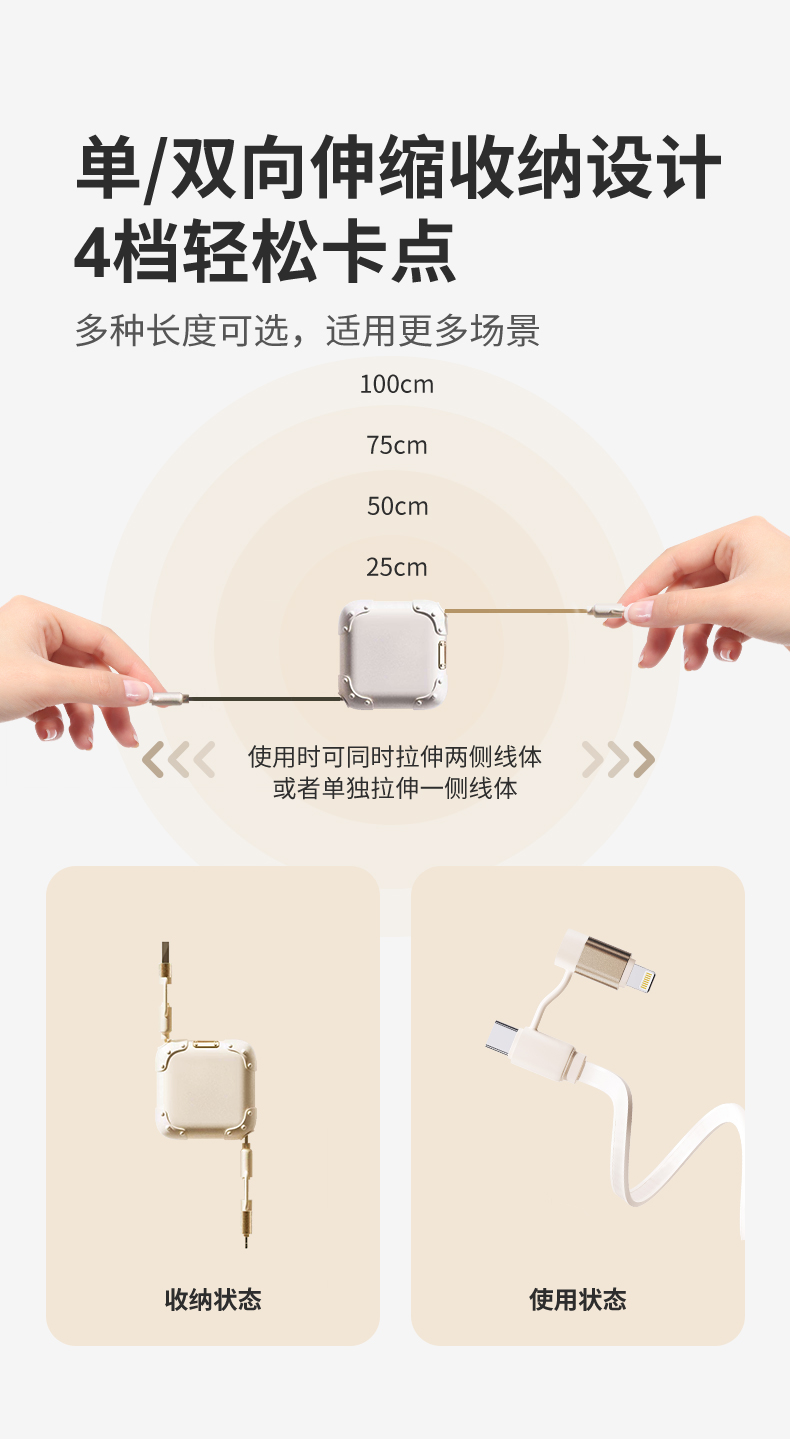 伸缩数据线240W 四合一 出门只带一根线 幻响 A-5149