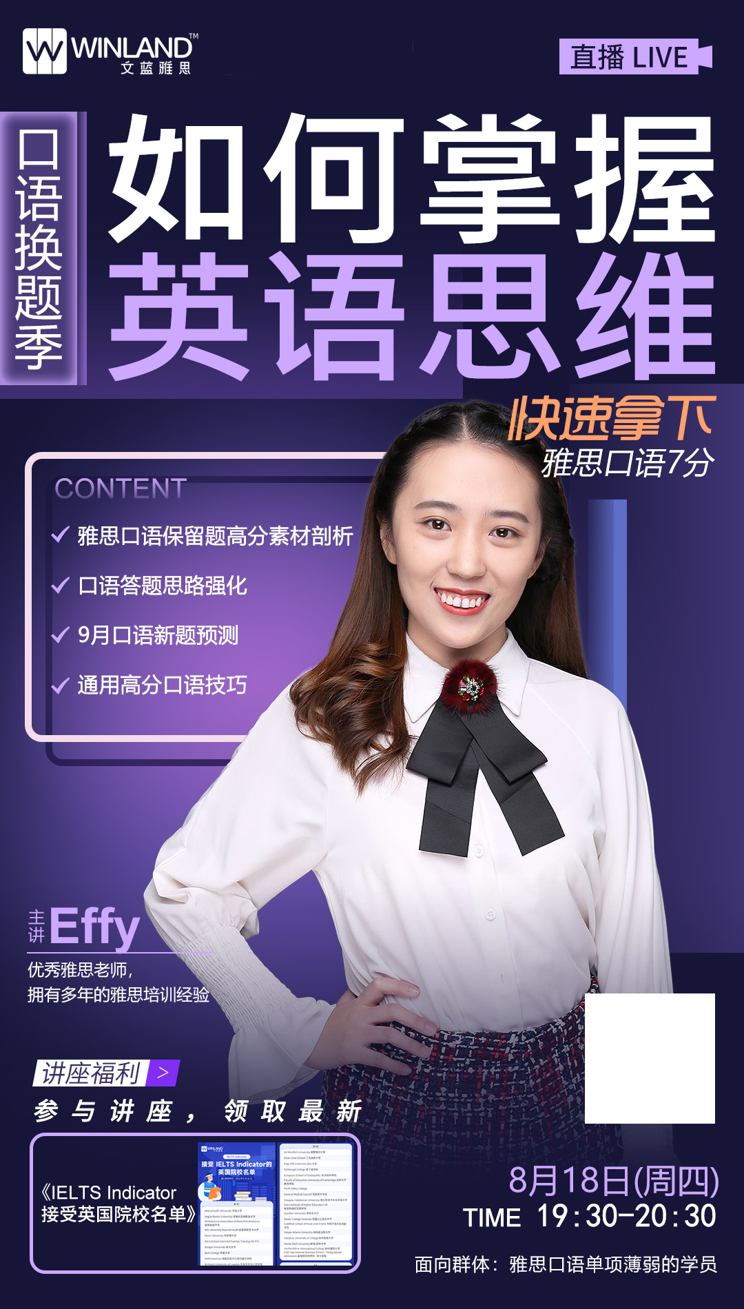 【线上讲座】口语换题季,如何掌握英语思维,快速拿下雅思口语7分?(8月18日)