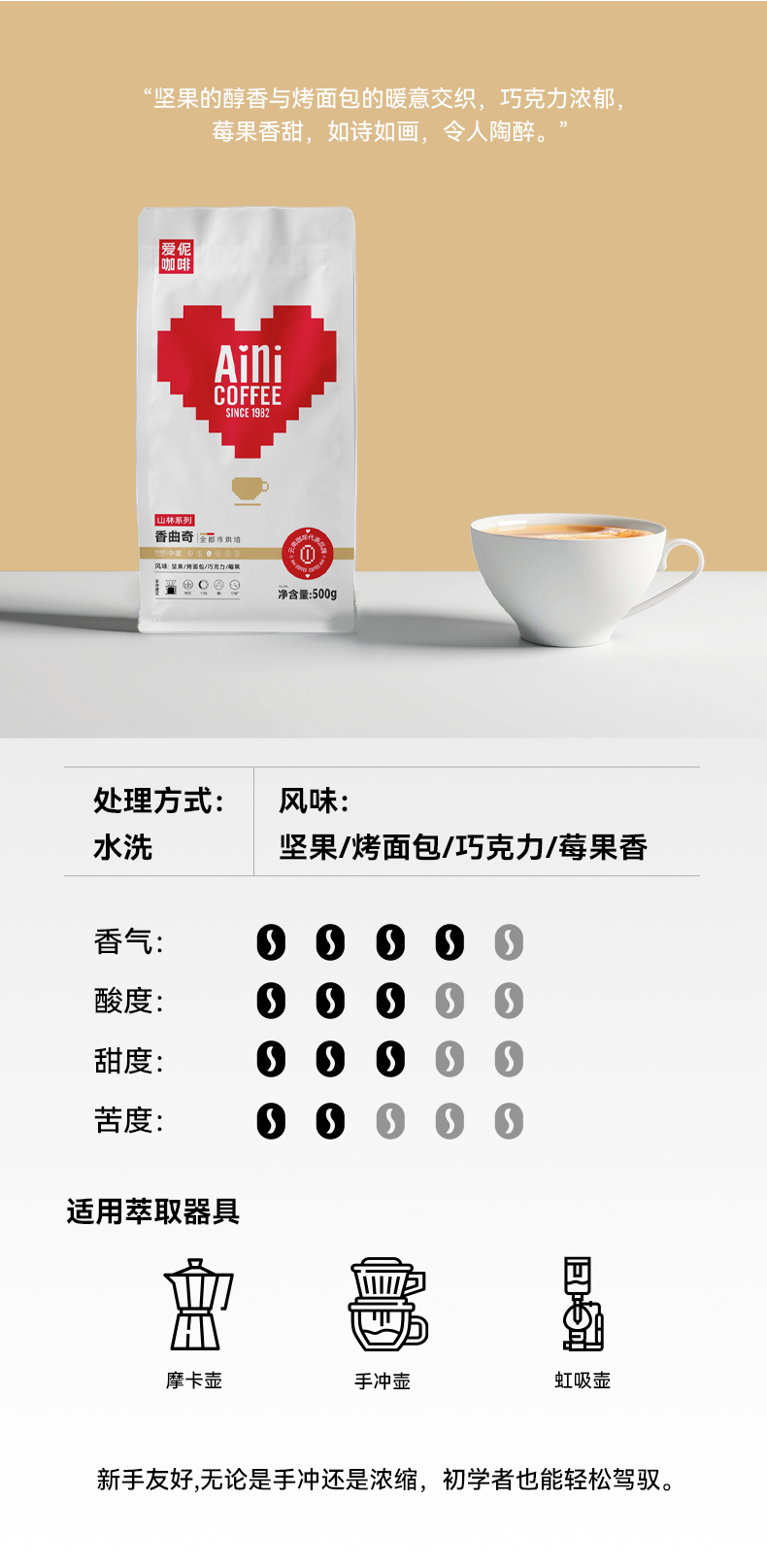 爱伲庄园 香曲奇 全都市烘焙豆 精品中度烘焙 阿拉比卡咖啡豆 500g