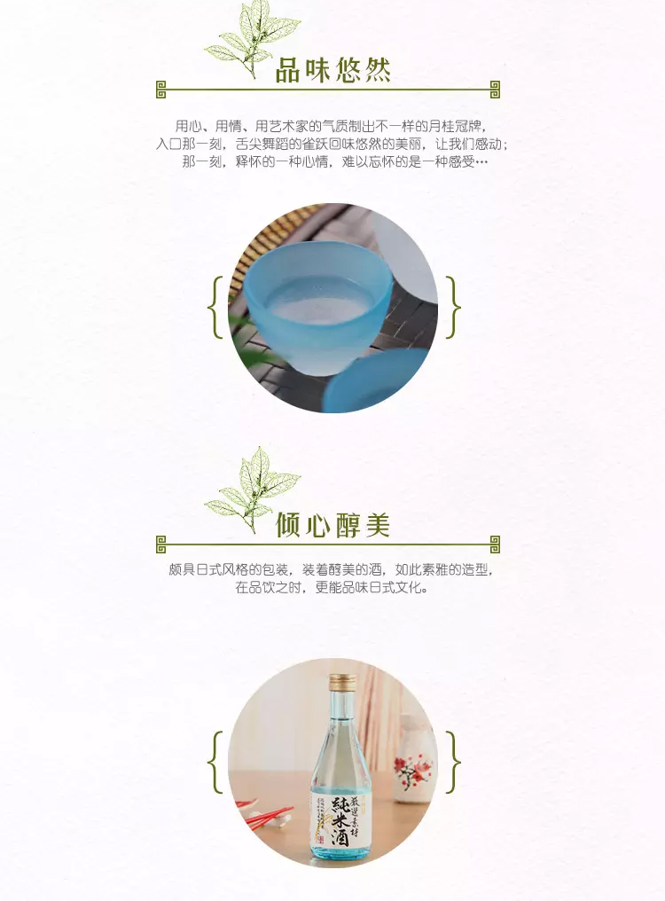 日本月桂冠纯米酒300ml/010020 传统酿造低度酒好米出好酒