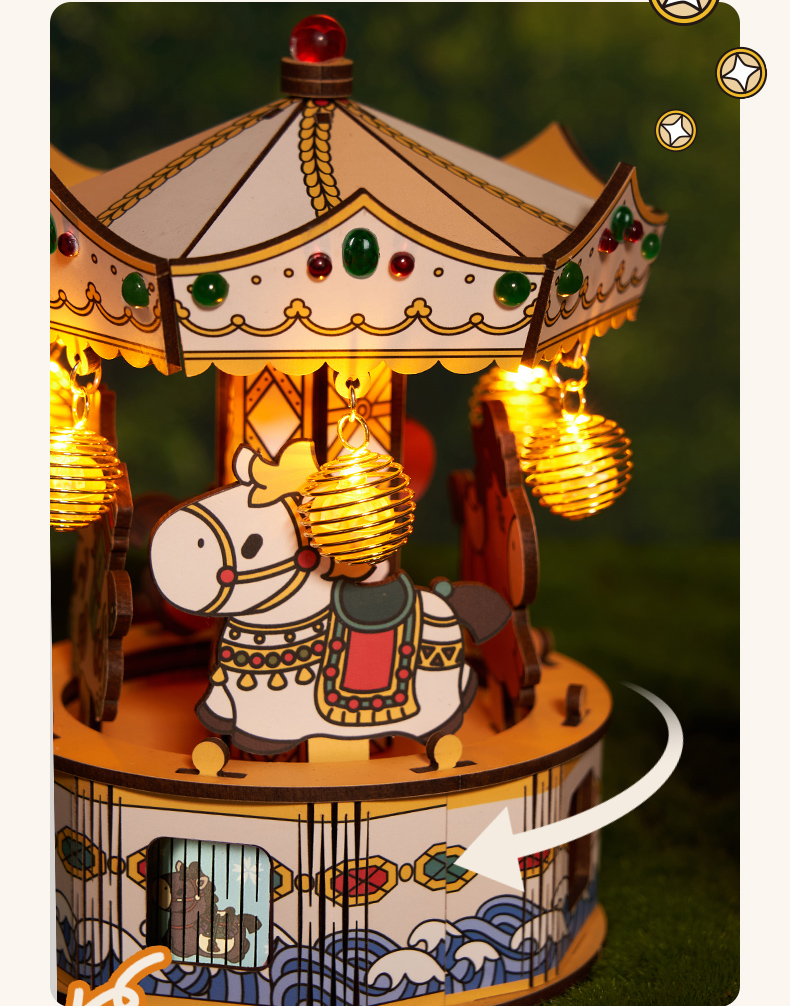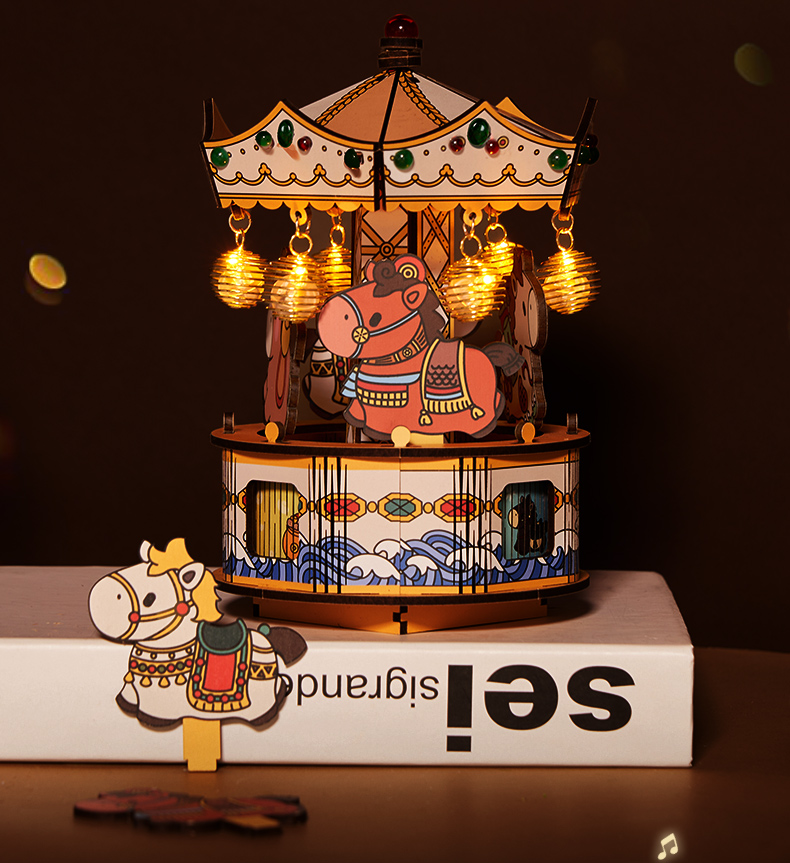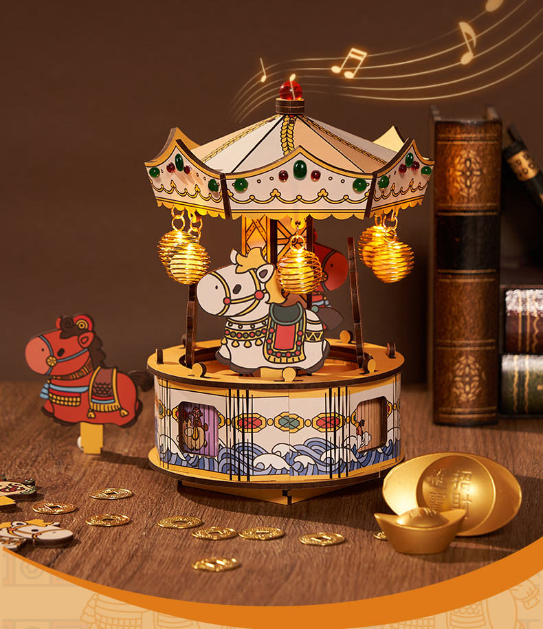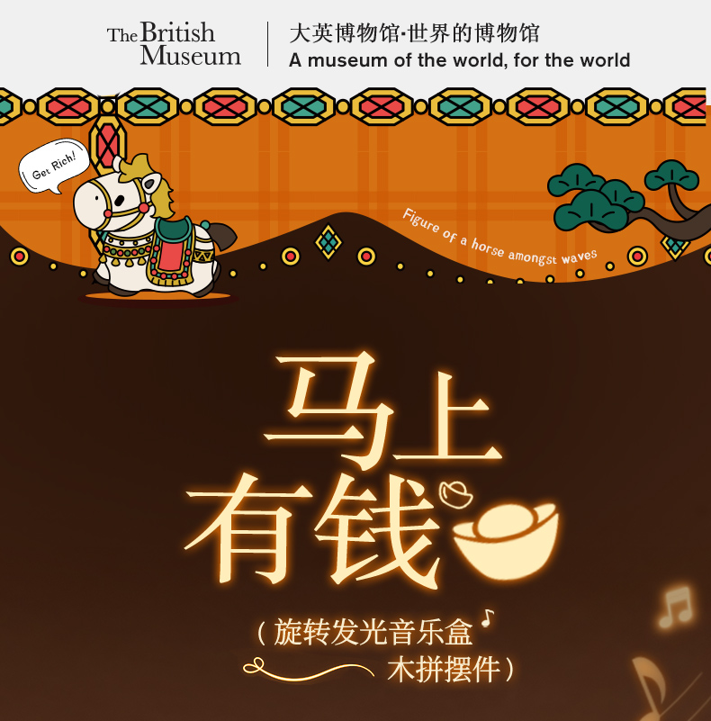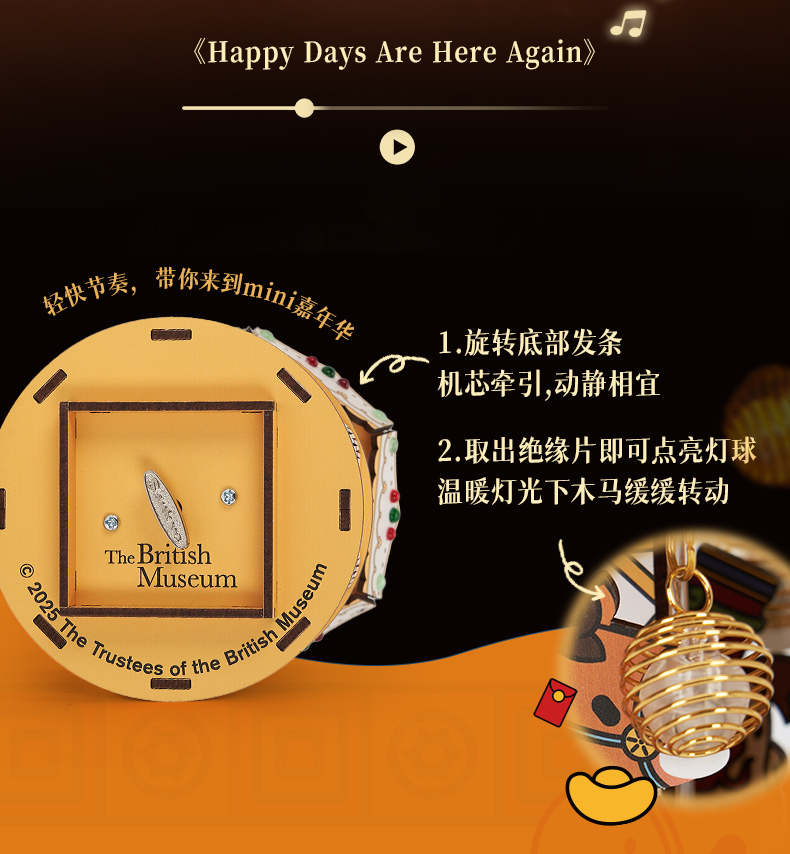 大英博物馆 东方梦境系列 马上有钱 旋转发光音乐盒 木拼摆件