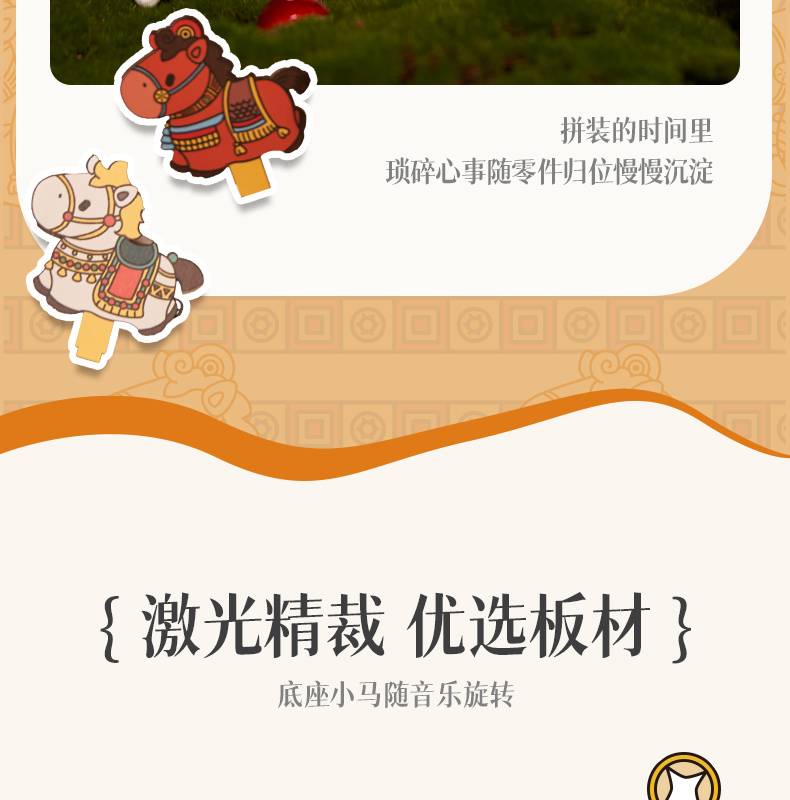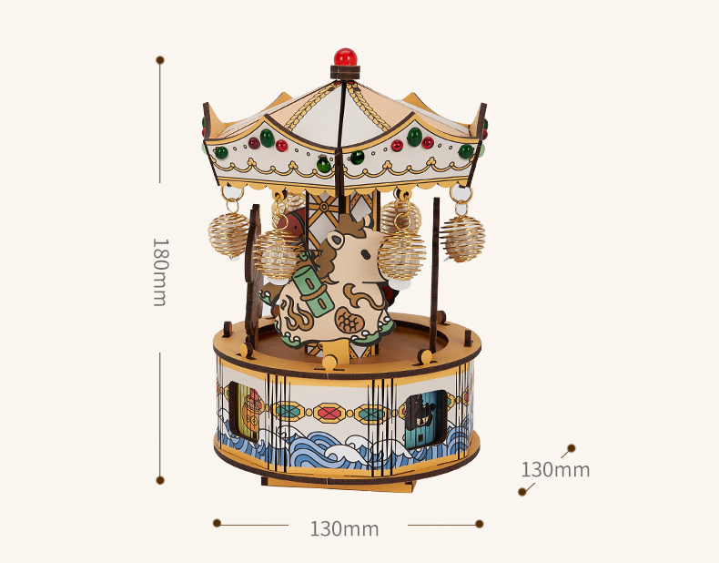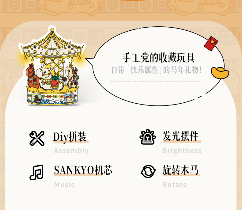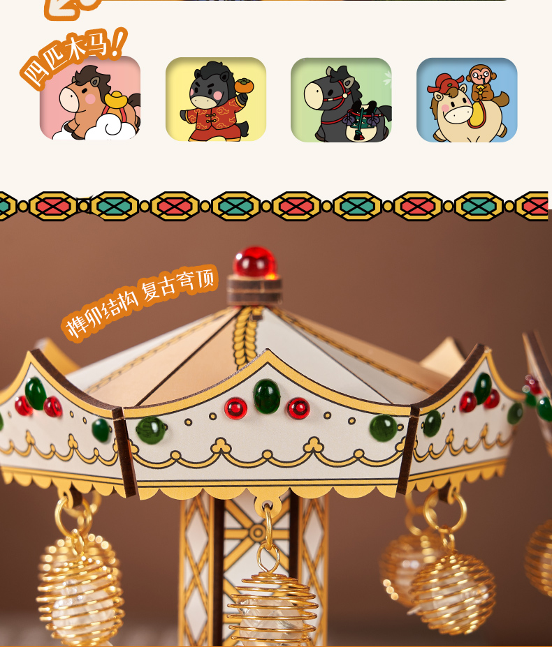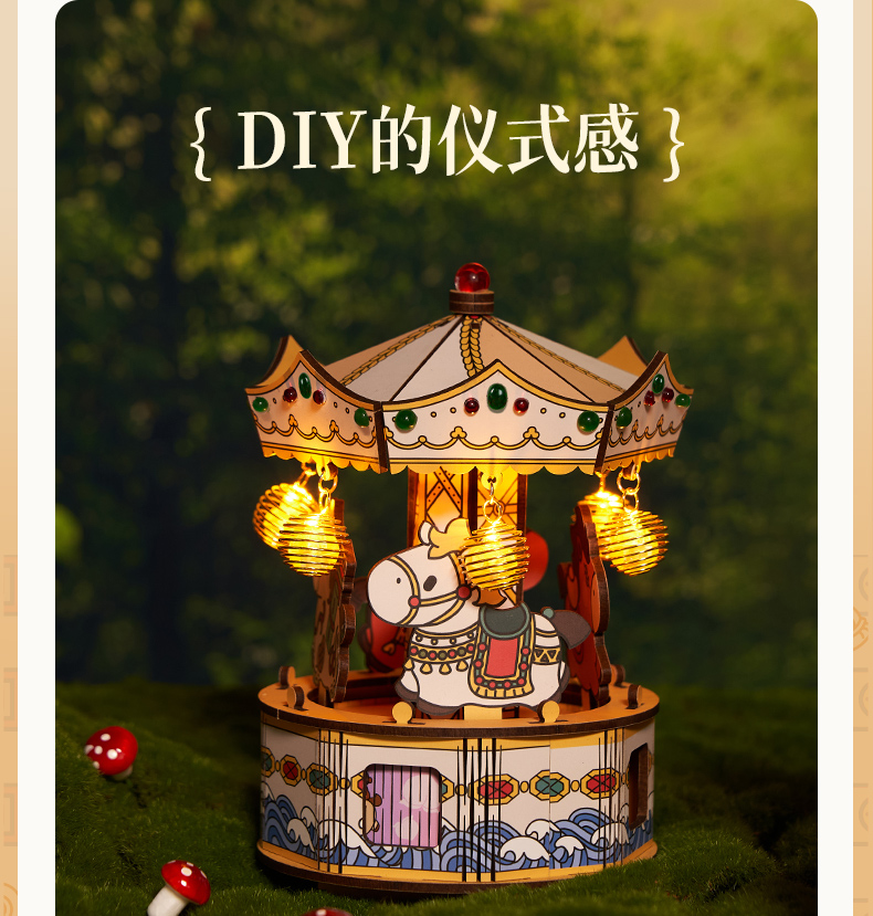 大英博物馆 东方梦境系列 马上有钱 旋转发光音乐盒 木拼摆件