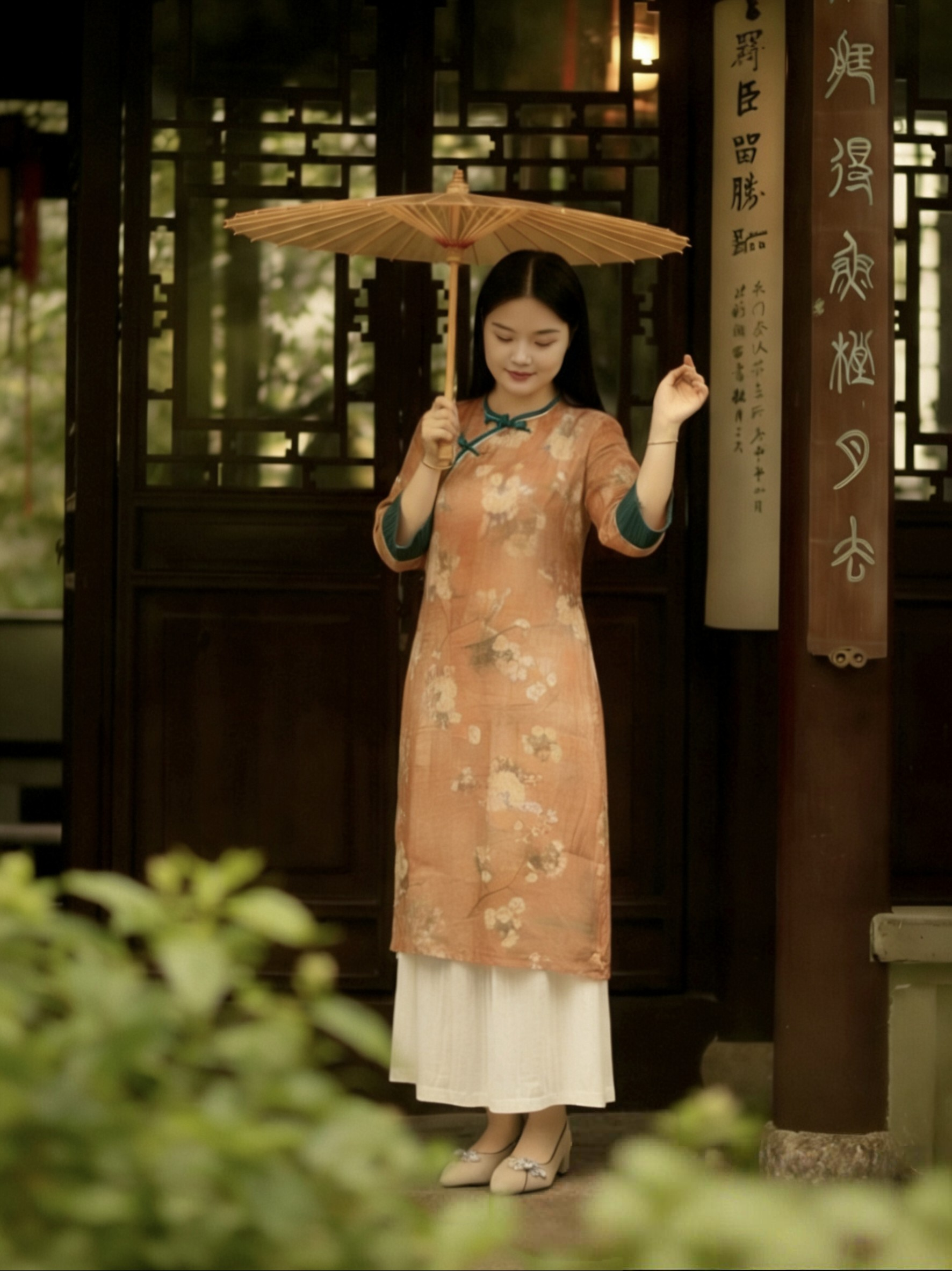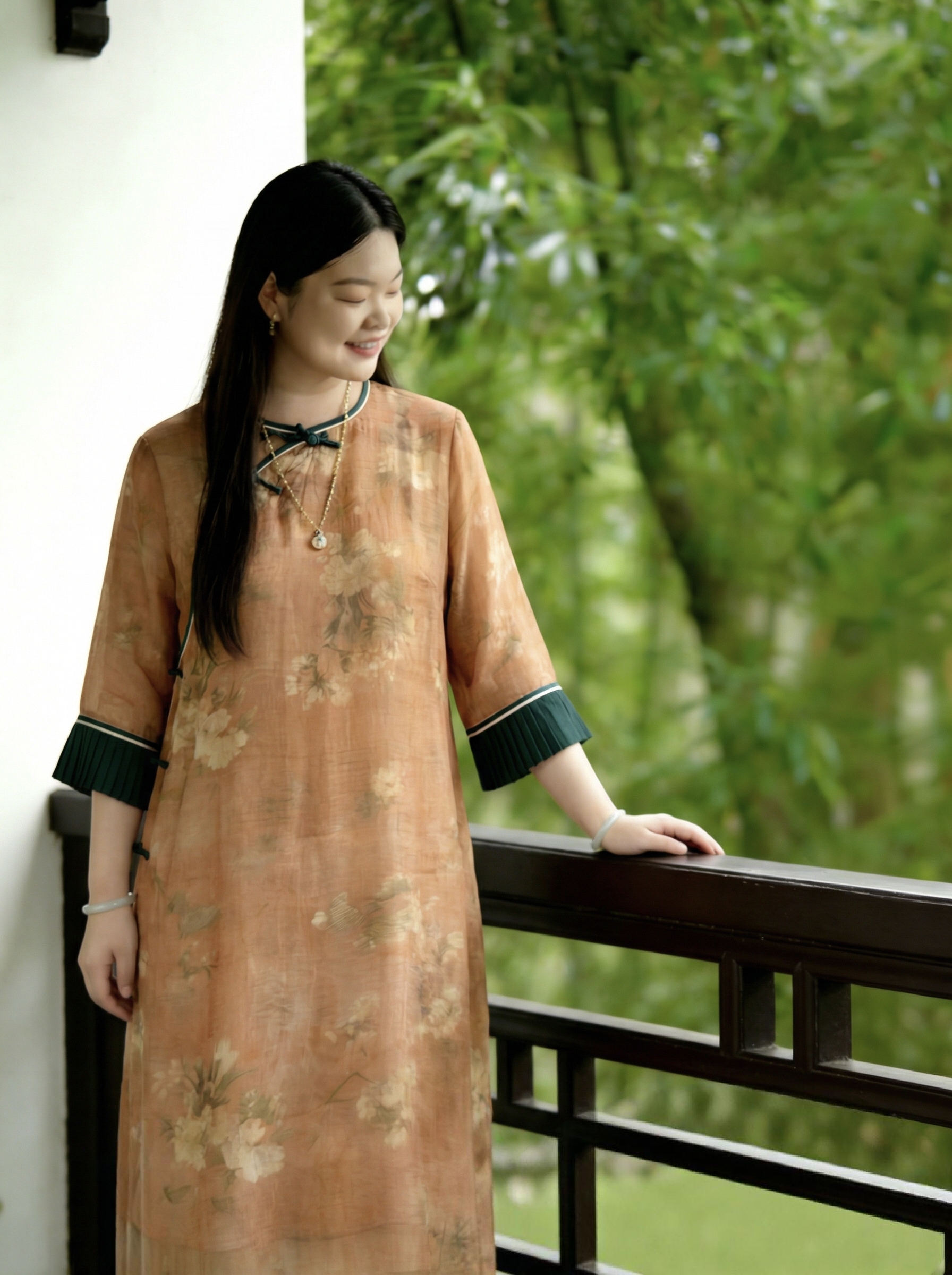 【现货秒发】【繁花肌理新中式旗袍】一眼沦陷!莱赛尔苎麻混纺,透气清爽七分袖,日常通勤典雅。面料: 69%莱赛尔31%苎麻