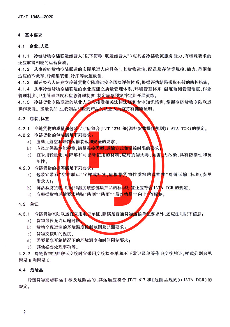 冷链货物空陆联运通用要求(JT/T 1348—2020)