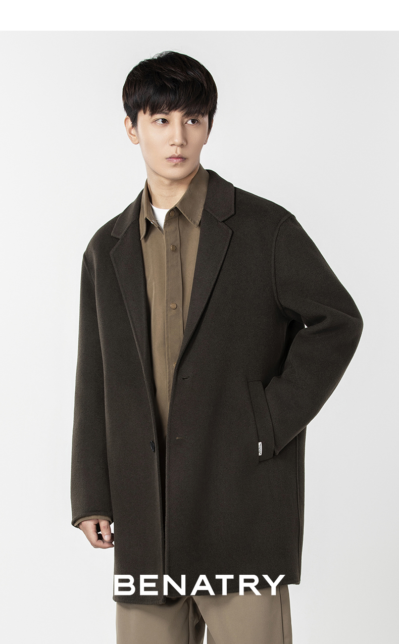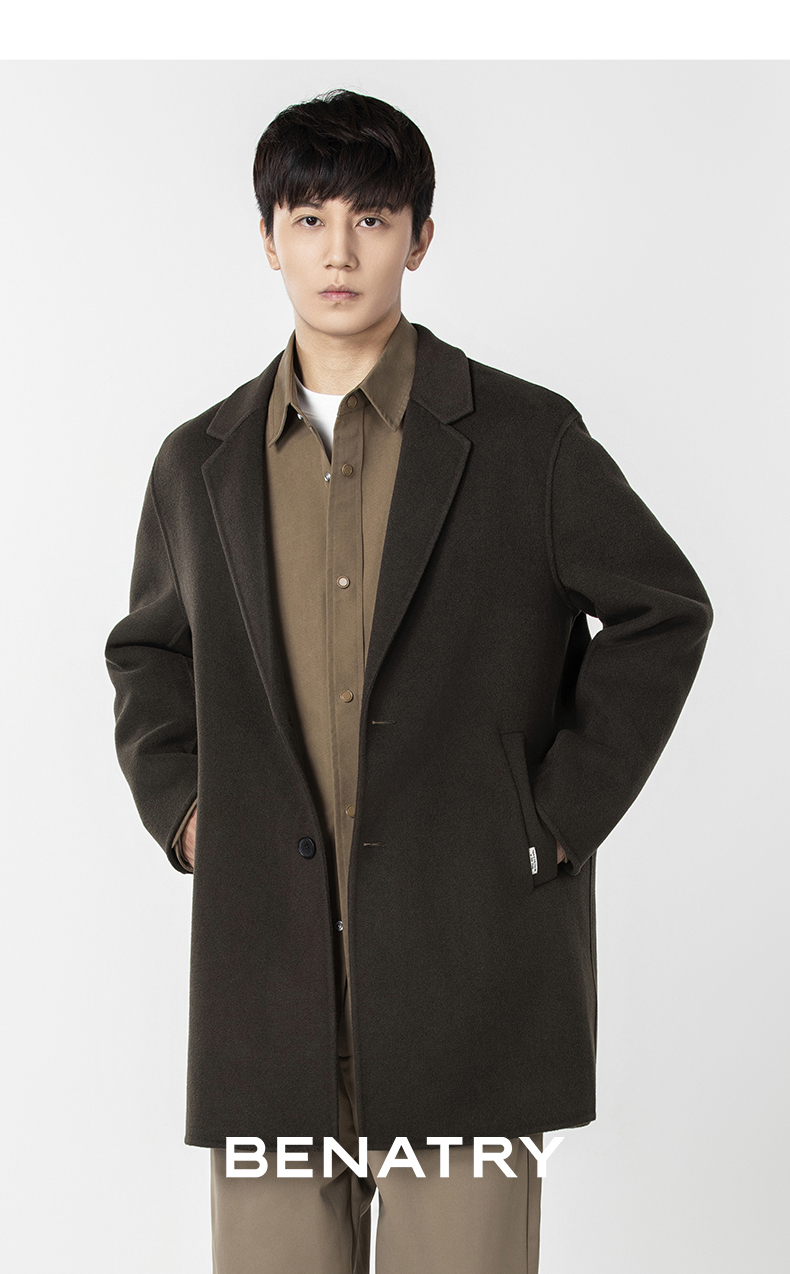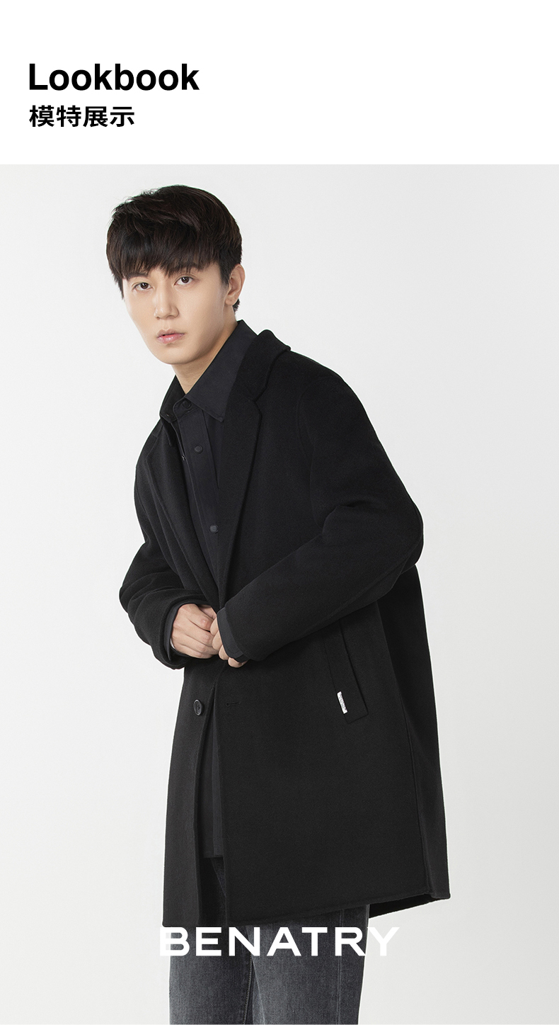 贝纳川戗驳领男士经典中长款大衣外套ECP328002