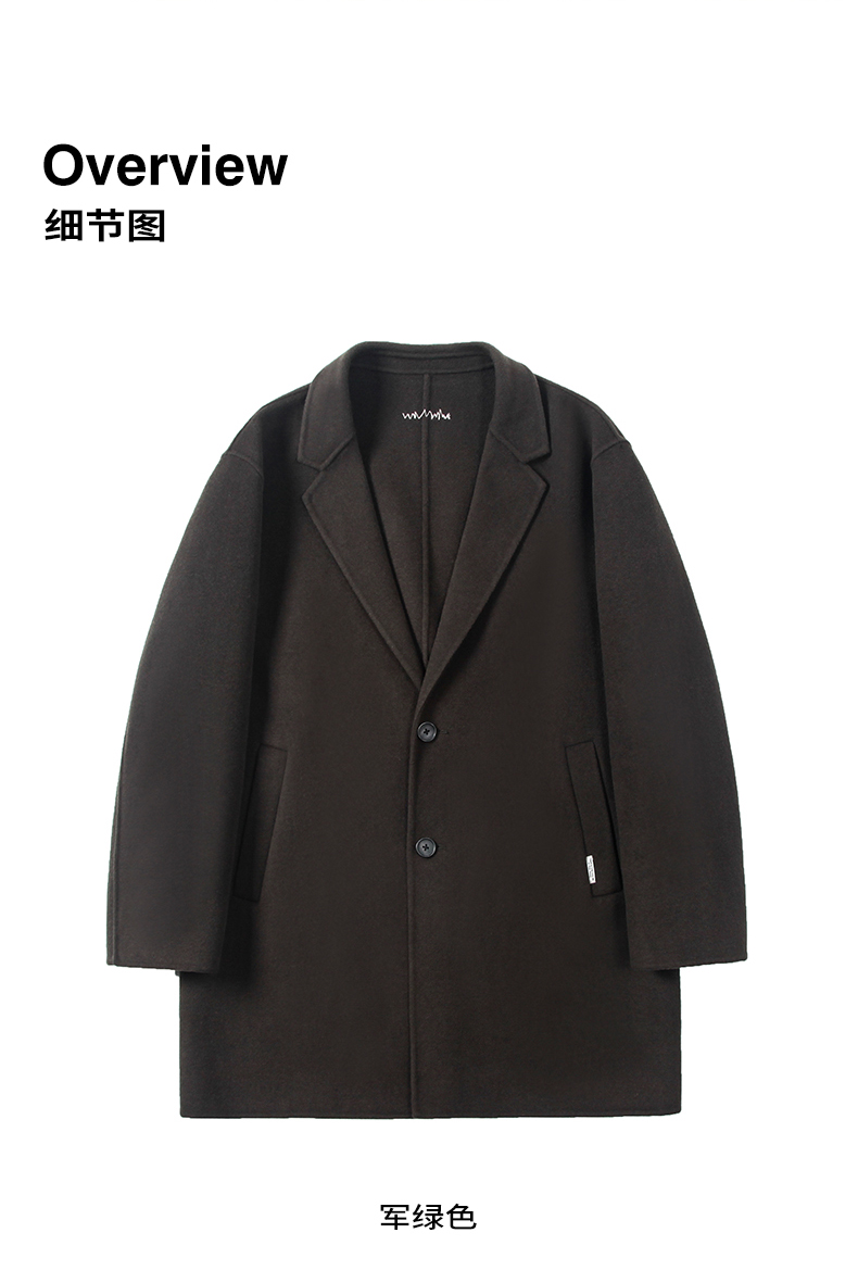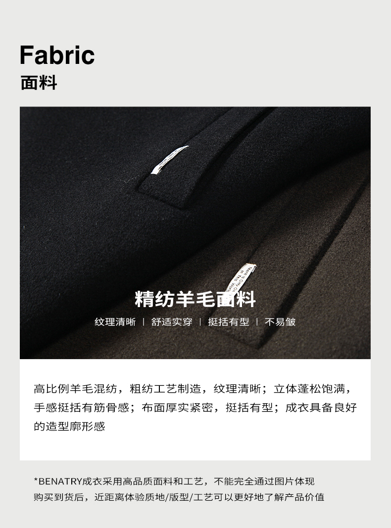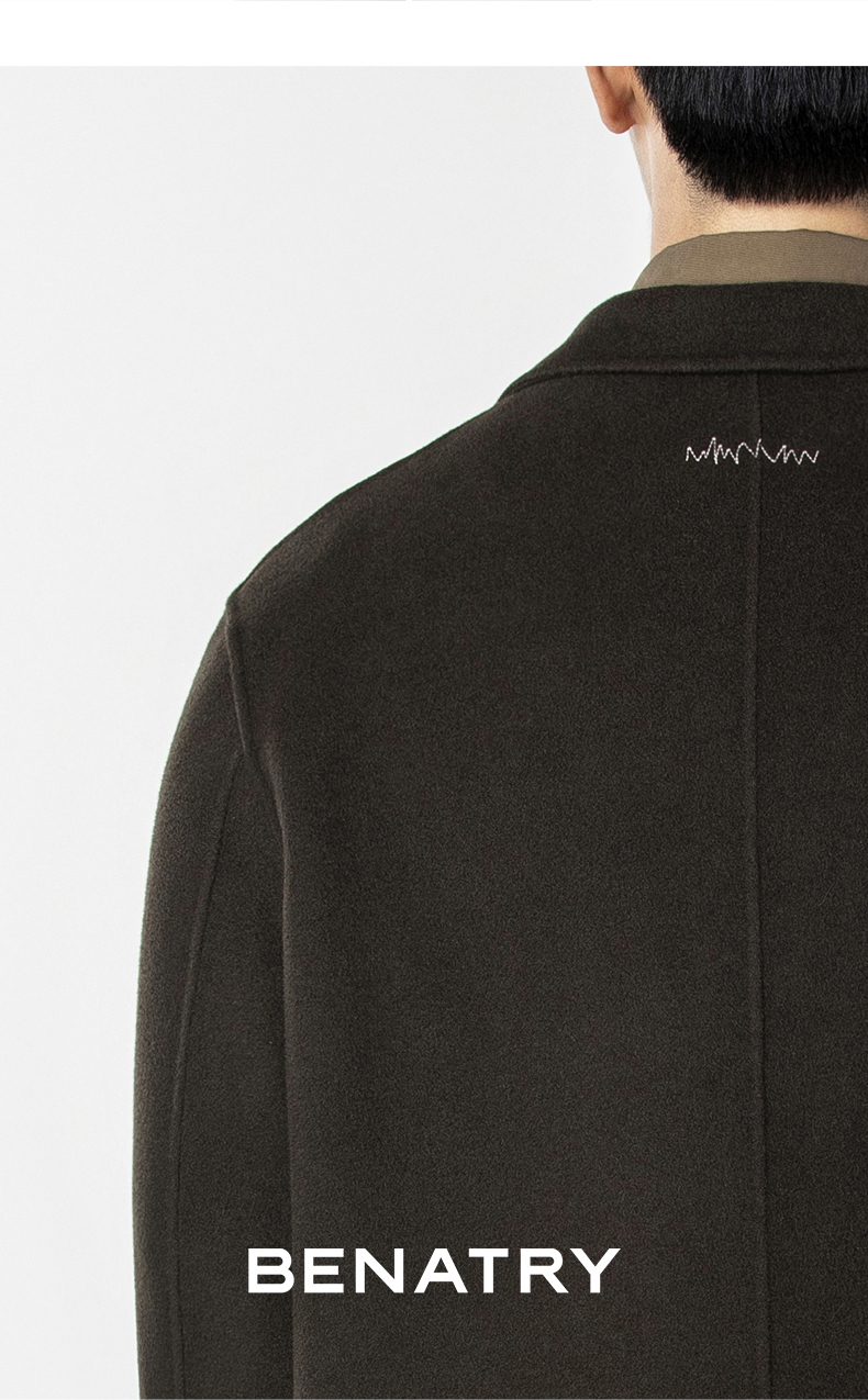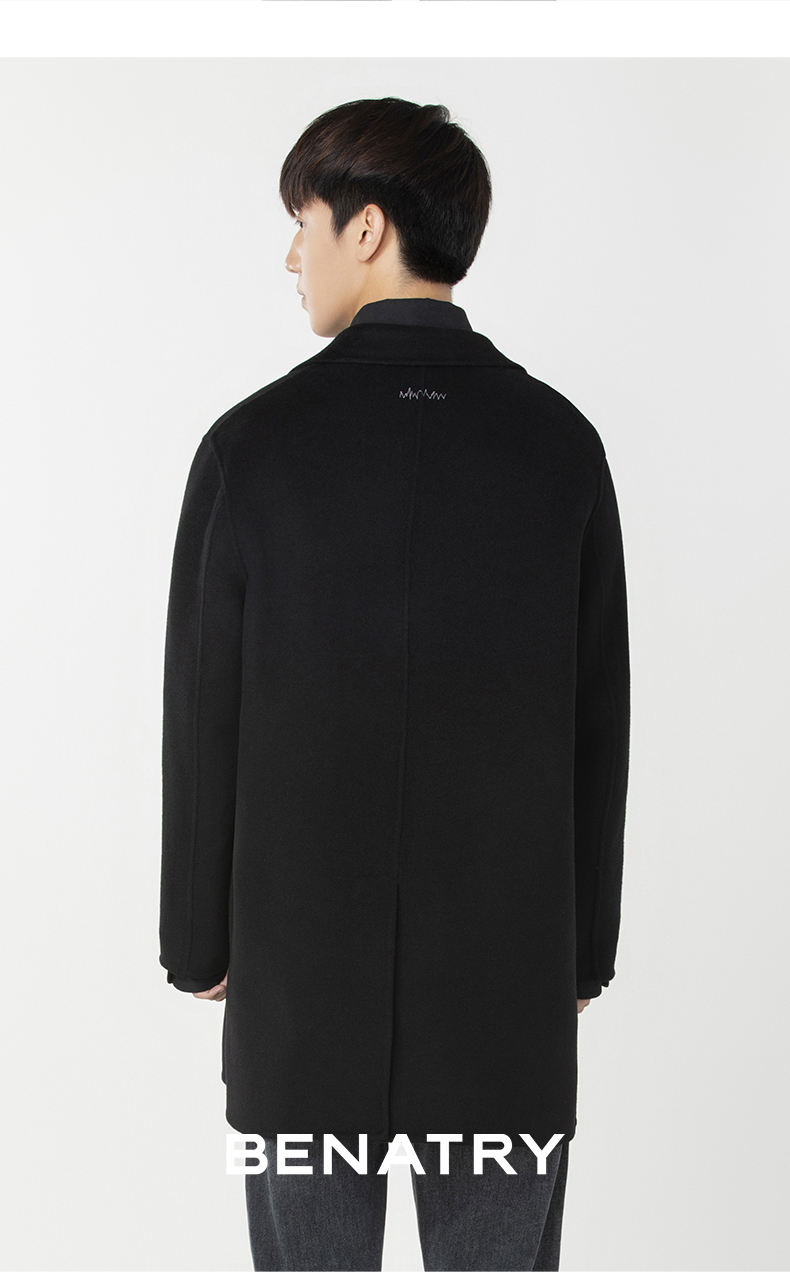 贝纳川戗驳领男士经典中长款大衣外套ECP328002