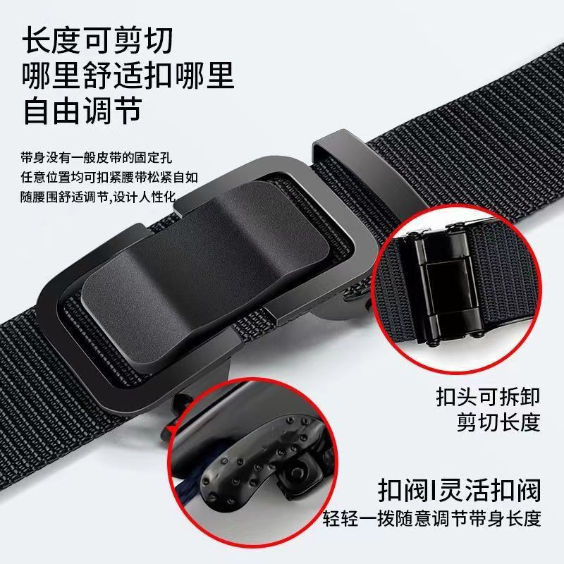 【长度可剪切!哪里舒适扣哪里】新款帆布尼龙皮带百搭无孔自动扣帆布腰带轻便超轻薄耐用男款。ry