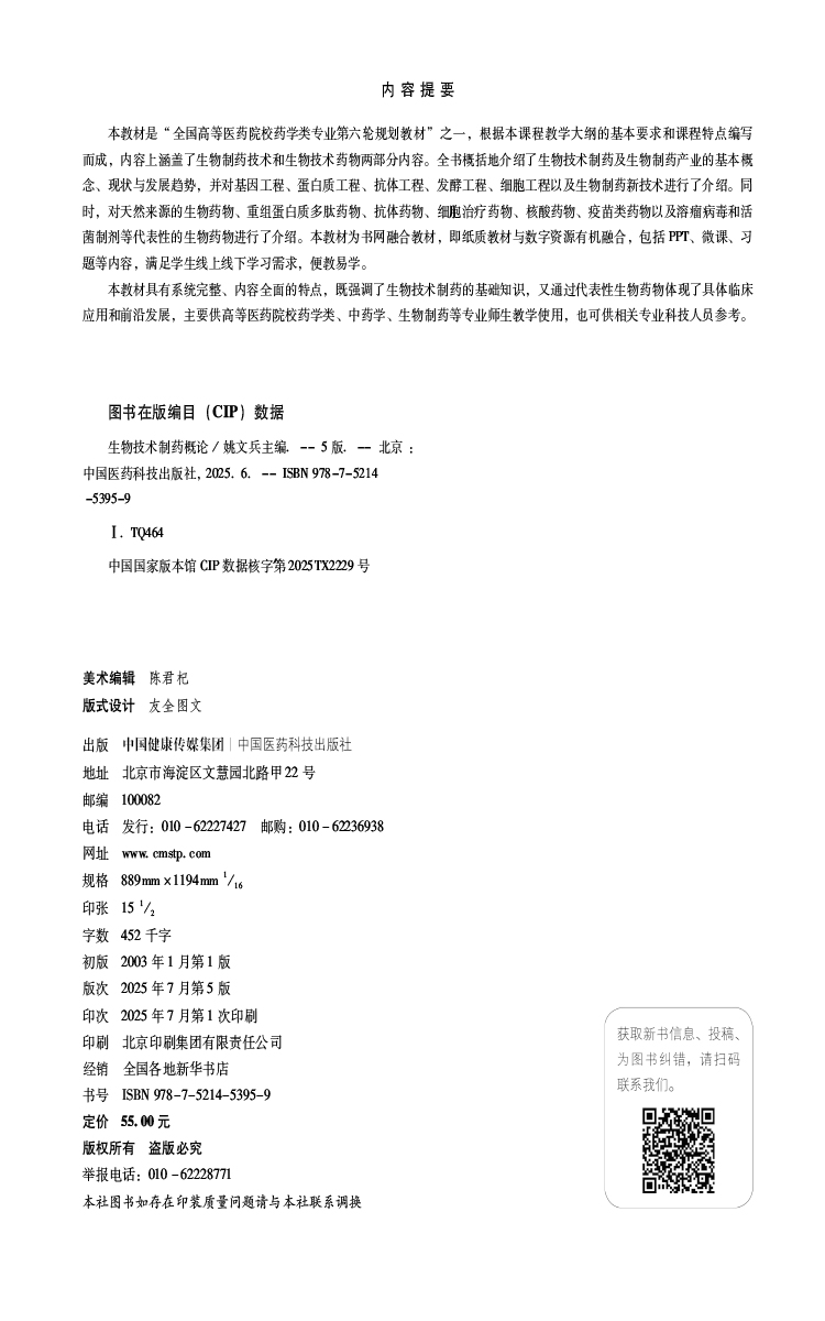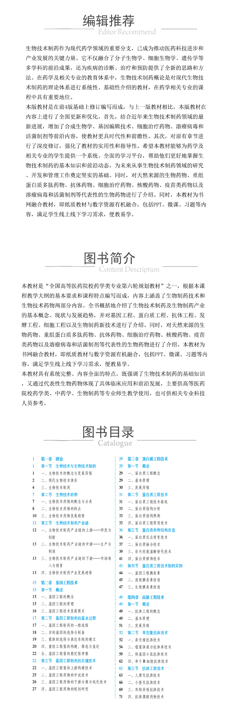 生物技术制药概论 第5五版 全国高等医药院校药学类专业第六轮规划教材 姚文兵 主编 供药学类生物制药等专业用中国医药科技出版社