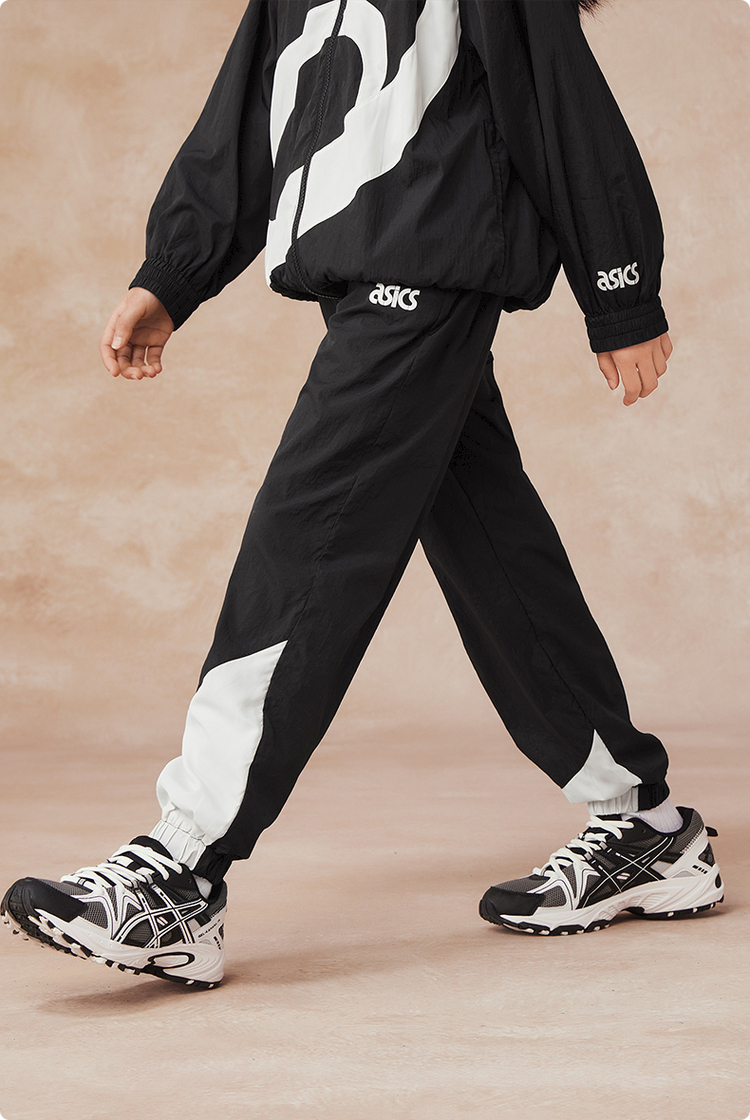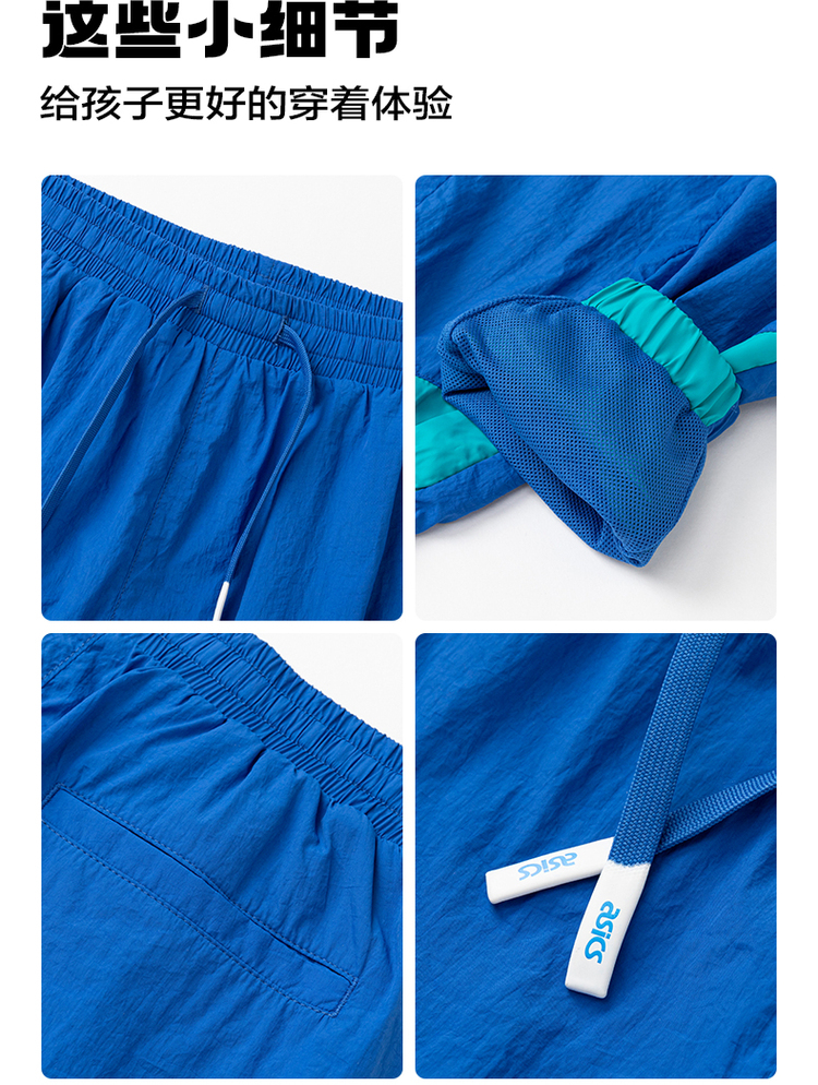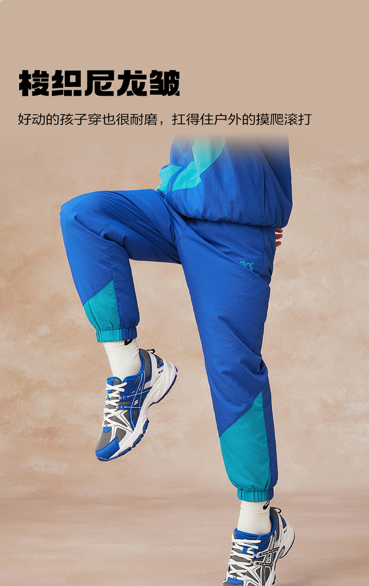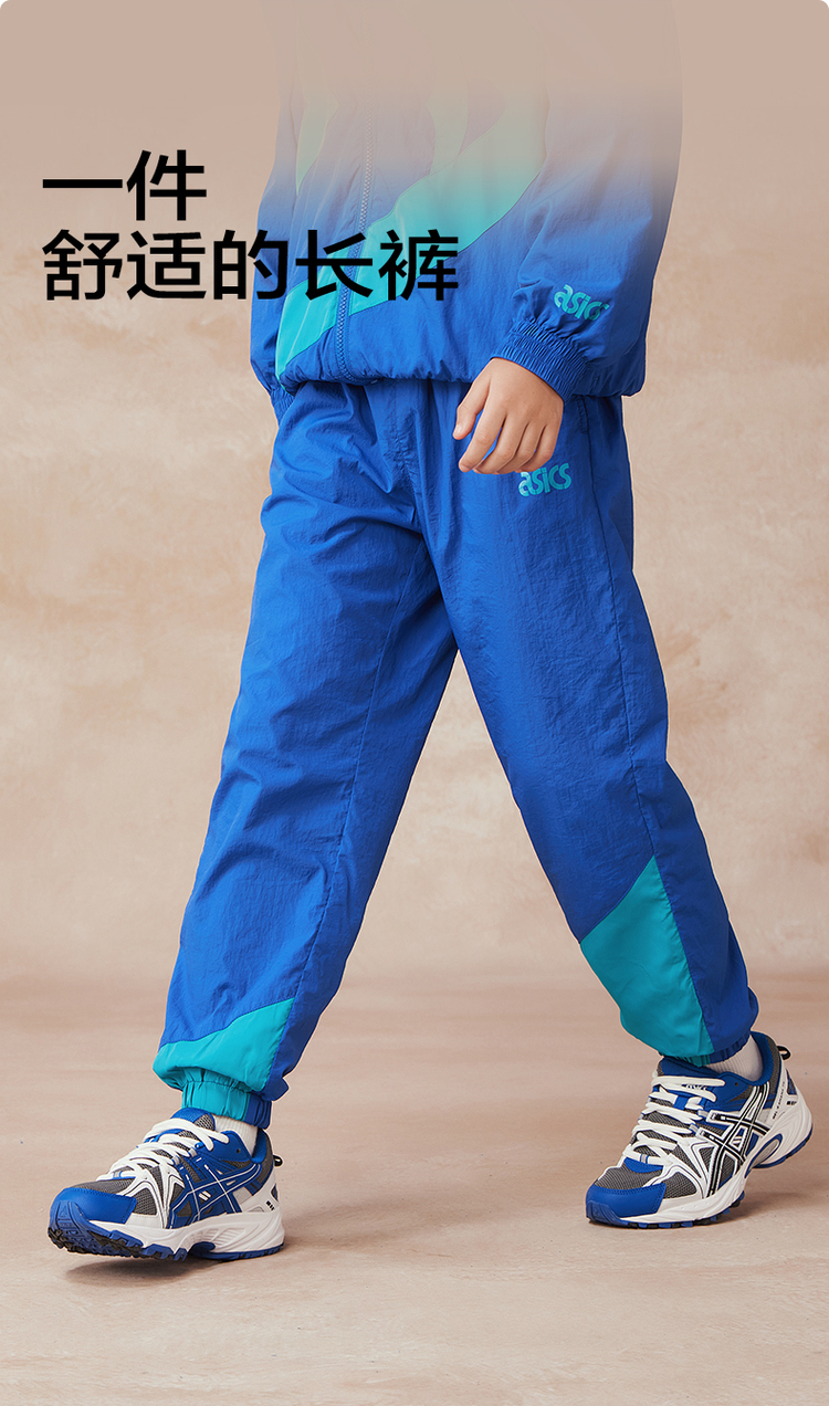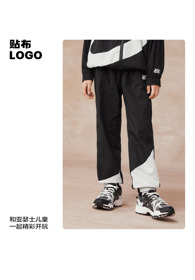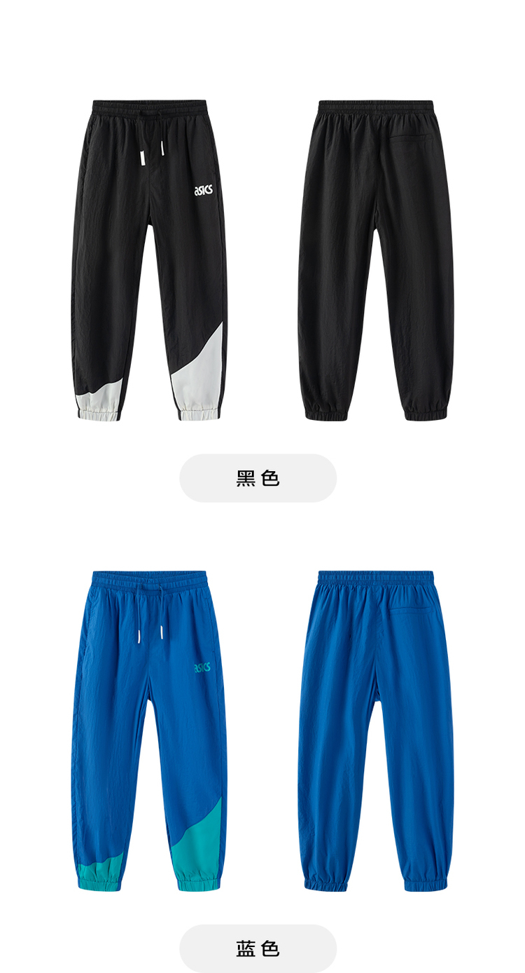 Asics/亚瑟士童装春季薄款运动裤子拼色时尚长裤梭织工裤2025新款
