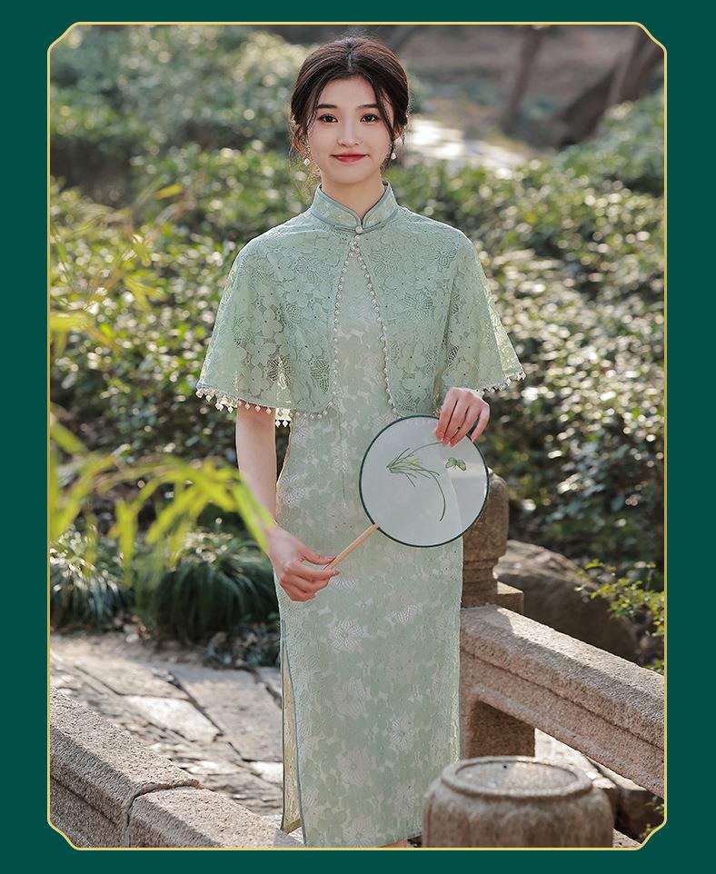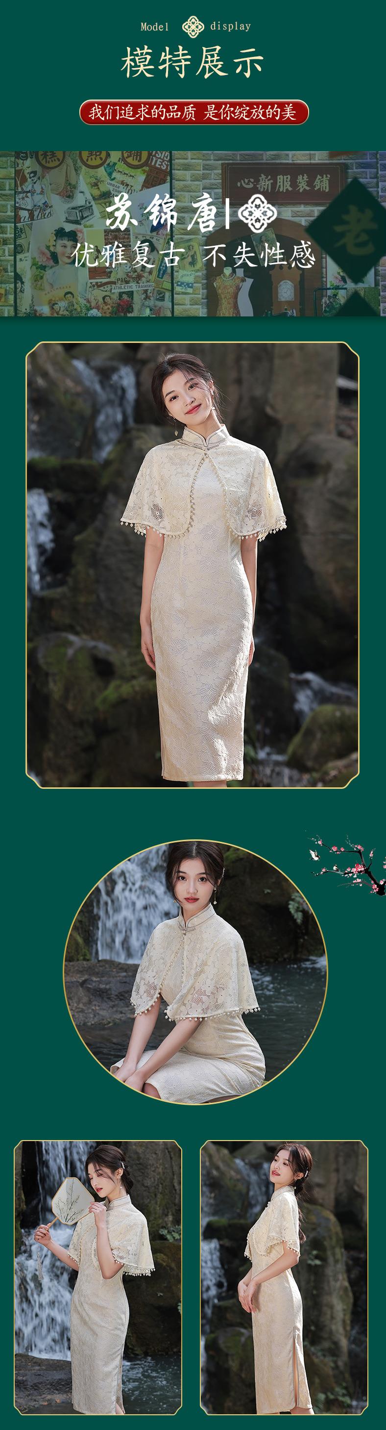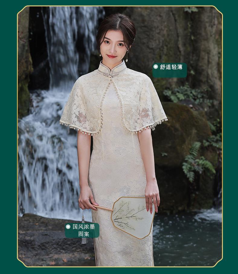 2023春夏款斗篷披肩旗袍年轻款少女气质复古民国风改良旗袍连衣裙
