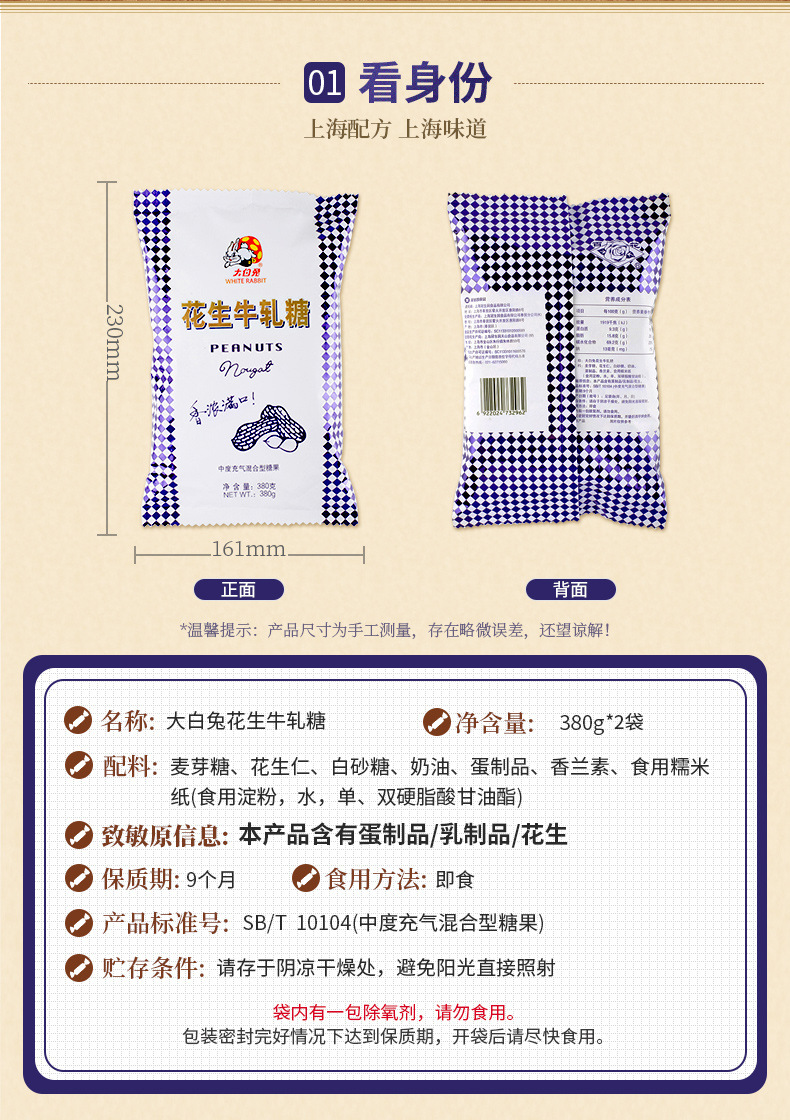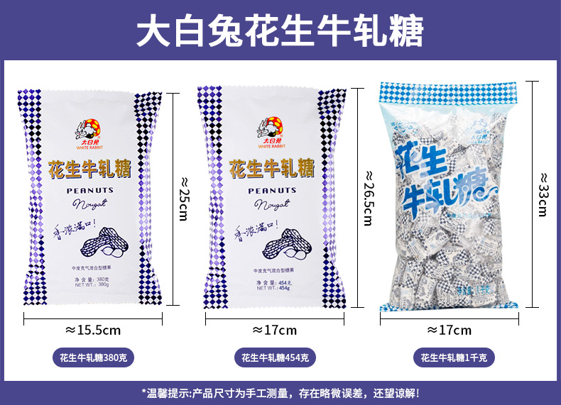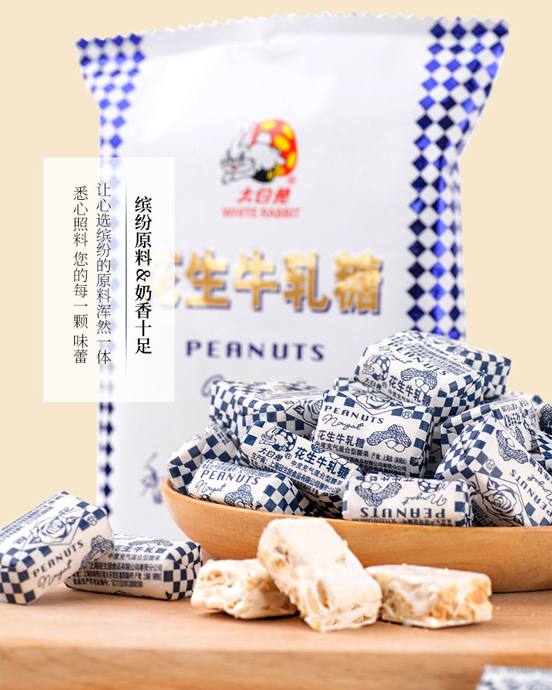 超值2斤装!【童年的美食记忆,好吃嚼不腻!】上海特产冠生园大白兔花生牛轧糖 儿童节糖果1000g/袋-QB
