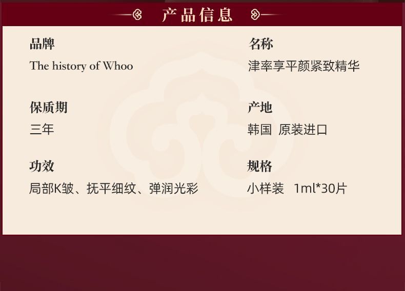 【爆款超低价预售 急单慎拍】whoo后津率享八字纹精华小样1ml*30片去皱抗衰紧致