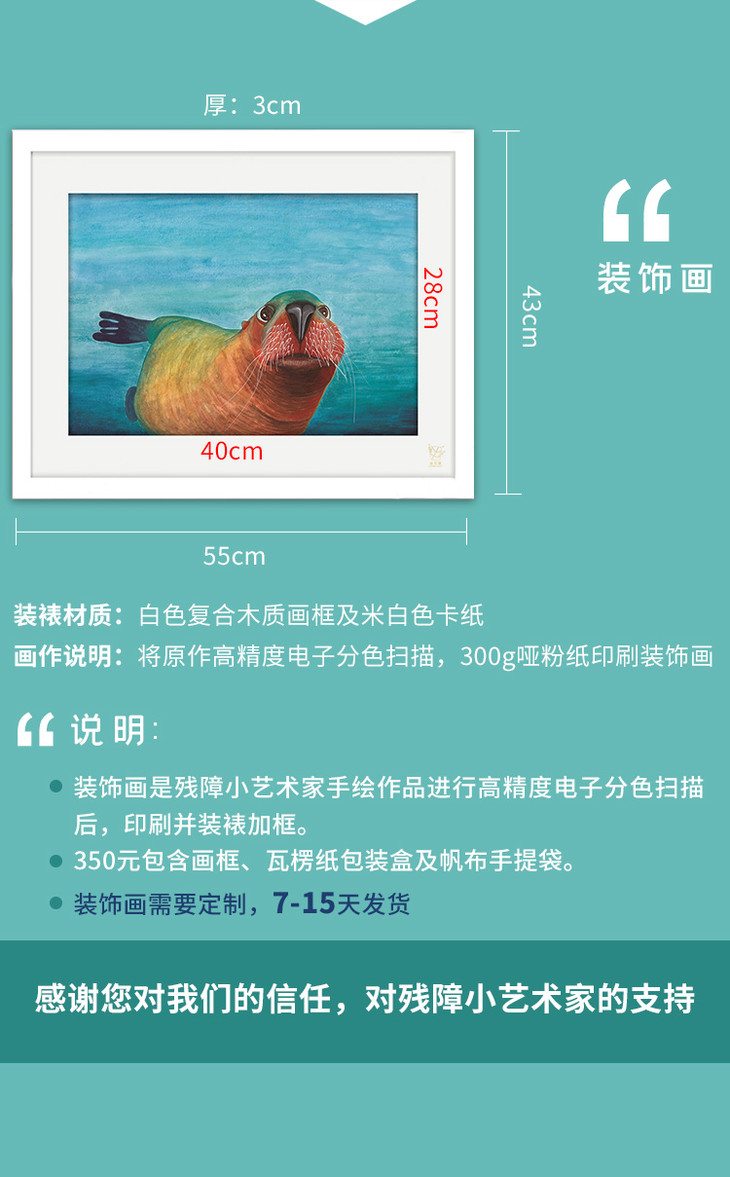 装饰画《小海豹》 金羽翼残障小艺术家手绘作品 复制画