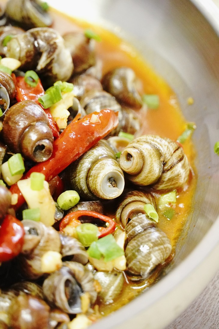 小时候在乡下撸着裤管下田里摸螺蛳 洗洗干净吐吐沙再剪掉尾巴 让爸妈倒上红椒姜蒜末和一些酒爆炒几分钟 就成了餐桌上最是有滋有味的一道口味菜; 现在偶尔上夜市炒上一盘解解馋 又嫌它不干净又总是吃不够; 想自己做吧 本地菜市场上那些小小的没几丁肉的迷你田螺 我真的生不起买回来剪尾处理勤劳欲望