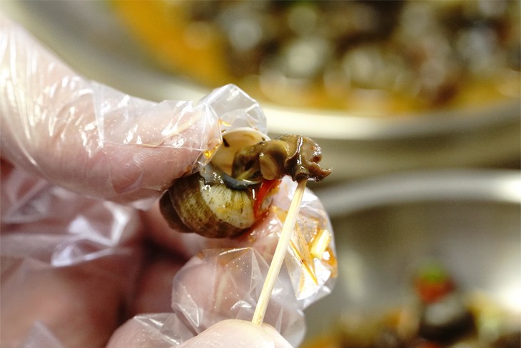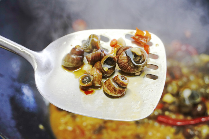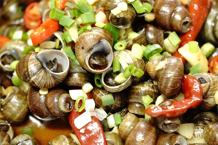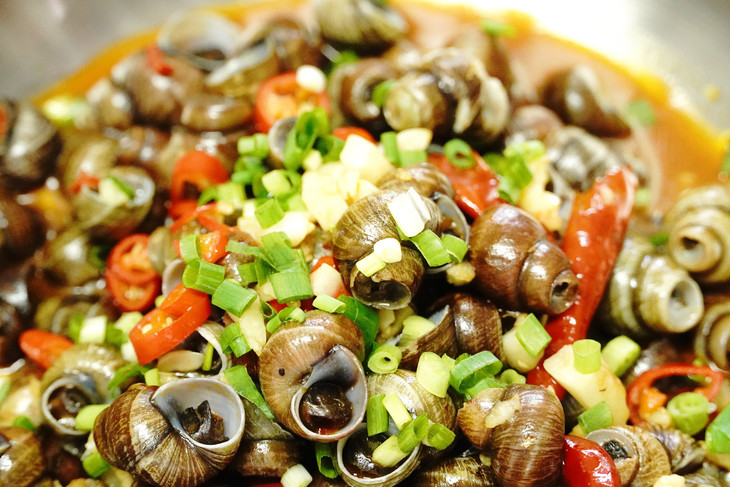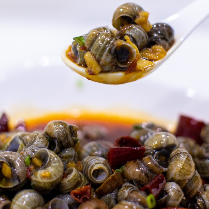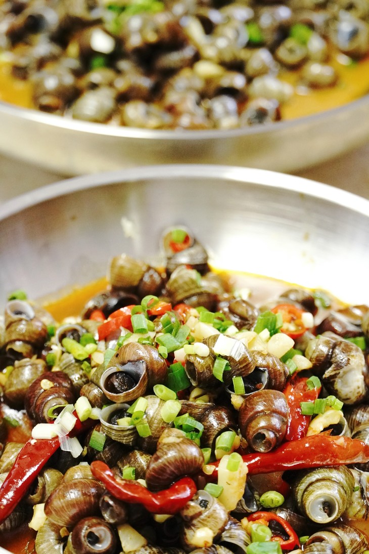 炒螺本就是一道嗦上一口就停不下来的美味小吃🤤 本地的好品质田螺,被楚山人这上等的小炒功夫一加持 不少食客日夜兼程也要驱车到这小村庄狠狠地嗦上两盘 没尝过楚山田螺的螺蛳爱好者真不能算是会吃!