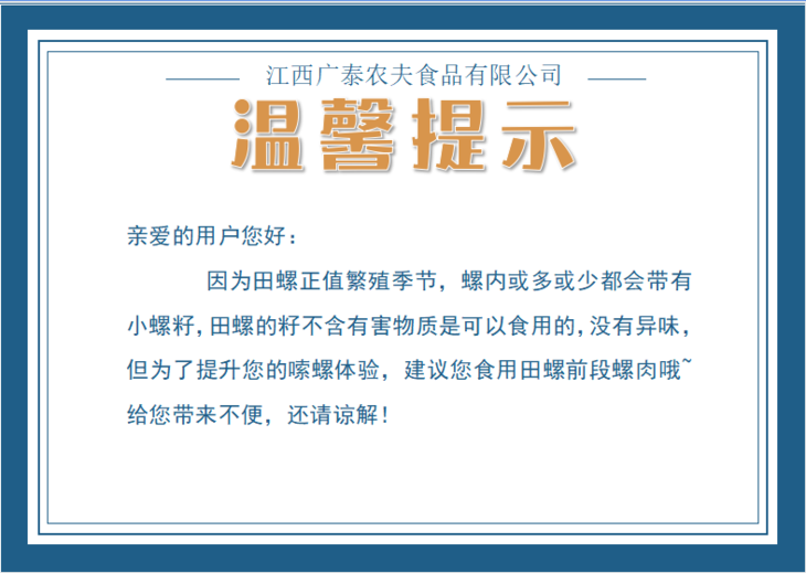 🔺广泰农夫楚山田螺 江西餐食产业博览会认证的金牌供应商🏆
