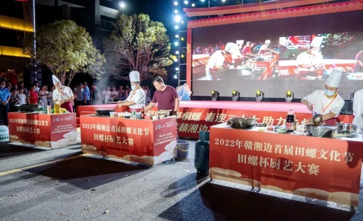 中国吃辣看江西,江西吃辣在萍乡🔥 地处江南 因地制宜 好山好水养出肥美田螺 作为一张城市特色美食名片,萍乡楚山就这一道辣炒田螺 能做到年销预制熟食5000吨 这可是个有田螺厨艺比赛的地方!