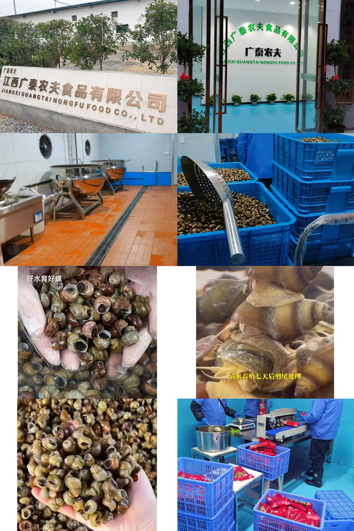 一份田螺,从养殖到销售, 需将优良螺种投放到高标准水质池塘自然生长🌾 → 收螺后在无菌车间内进行浸泡吐沙、清洗换水三次 → 趁鲜活焯水煮杀、再精选螺粒剪尾、 再二次机器清洗,确保每颗都干净 → 最后密制配方熟制 真空包装进冷库速冻