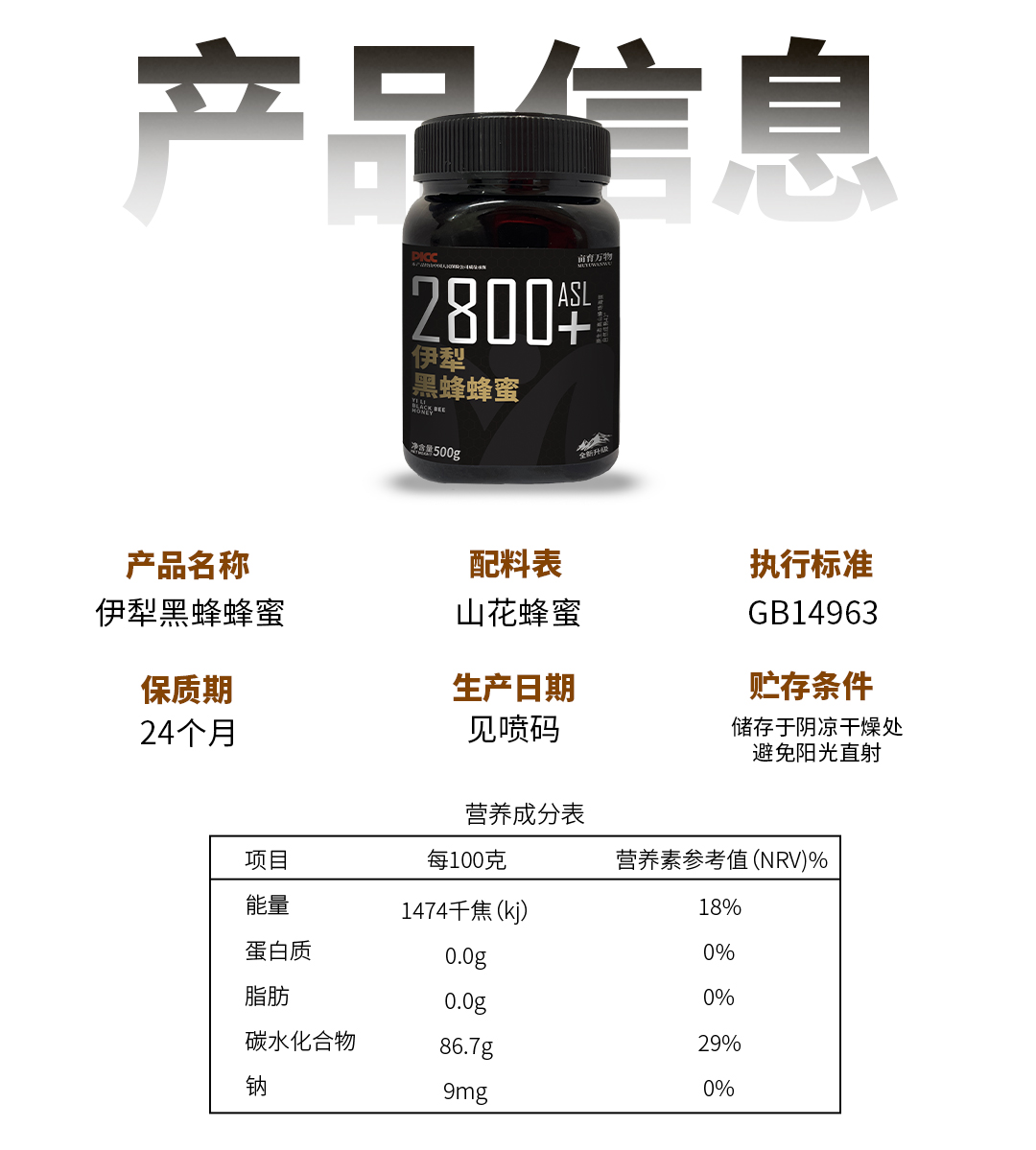 新疆伊犁黑蜂蜂蜜 500g/瓶 2800米天山纯净蜜源 第46届全球蜂蜜金奖