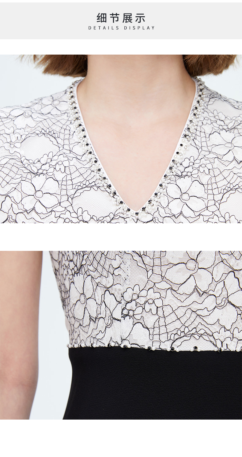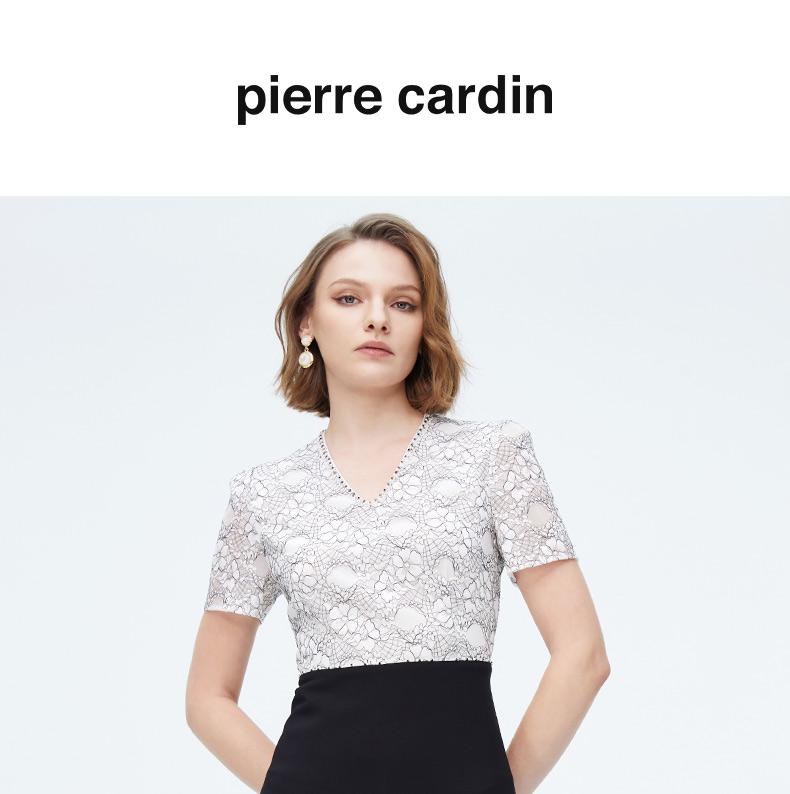 皮尔卡丹女装AB配知性修身蕾丝连衣裙P4226D4058W3