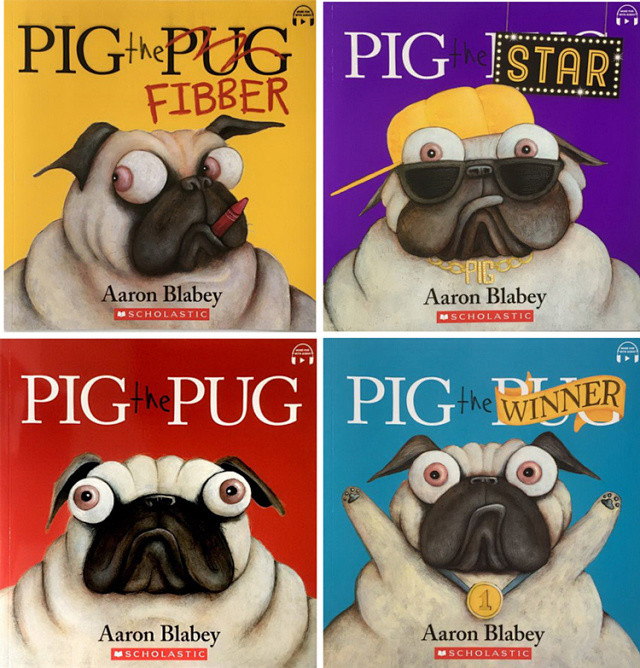 【4-8岁推荐】Pig The Pug/Fibber/Winner/Star 巴戈狗猪猪系列绘本 盒装4册+CD+玩偶 我是大坏蛋同作者Aaron Blabey