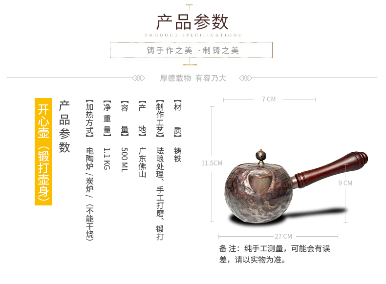 铸味 | 0.5L开心壶铸铁茶壶生铁壶泡茶壶煮水壶手工铸造电磁炉适用