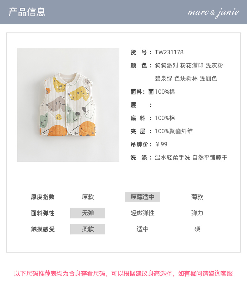 马克珍妮秋装新款 男女童趣味印花全棉无袖马甲 儿童马甲231178