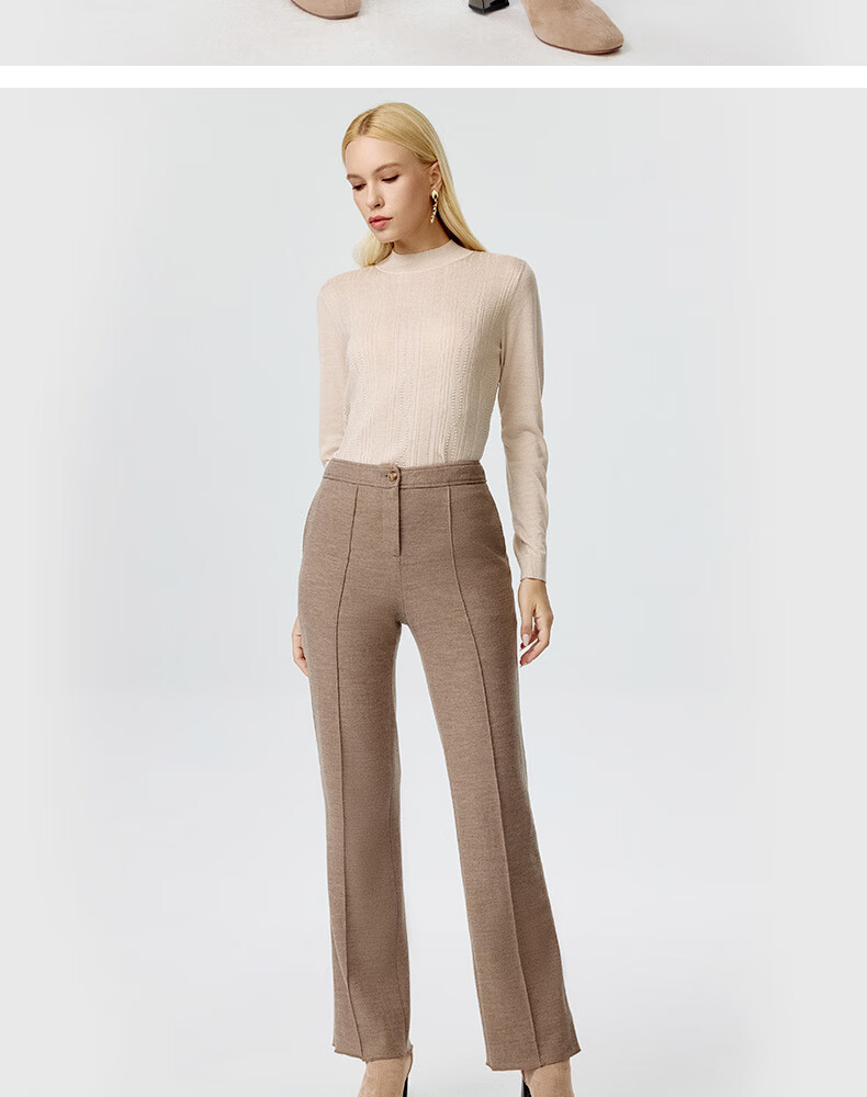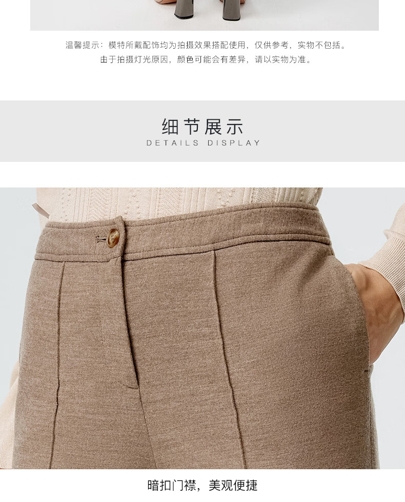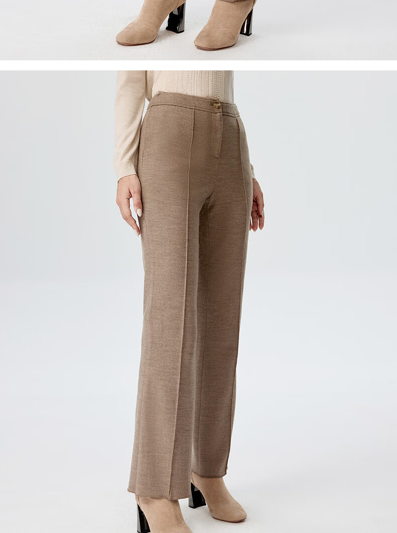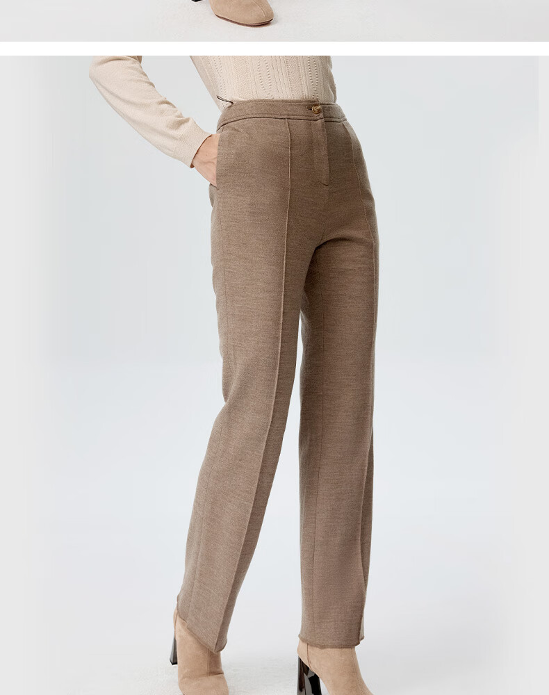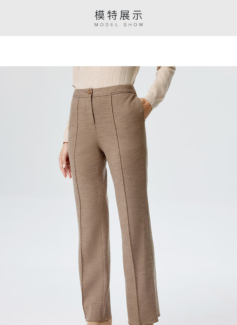皮尔卡丹女装裤子休闲裤咖色秋冬保暖外穿时尚羊毛裤P3355T3971K1