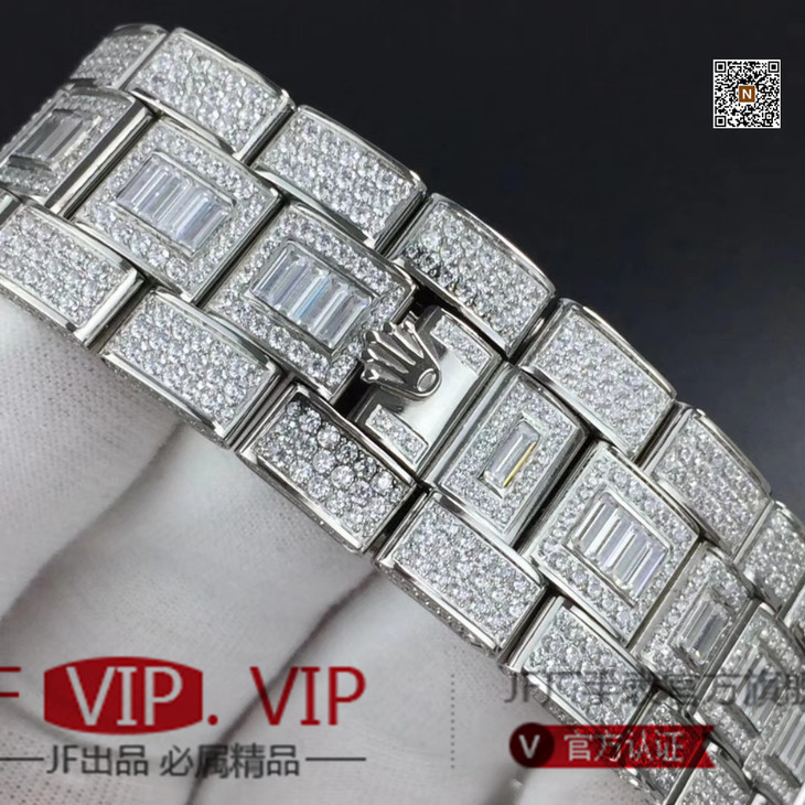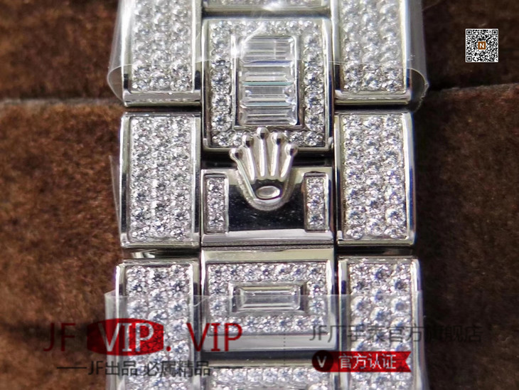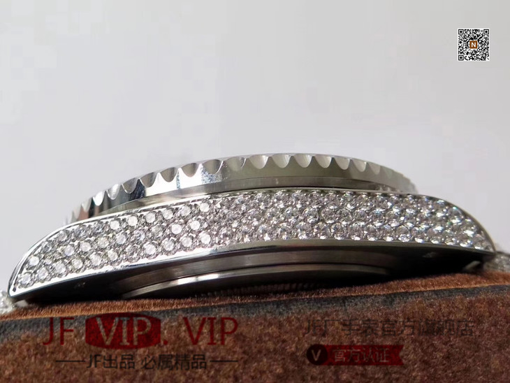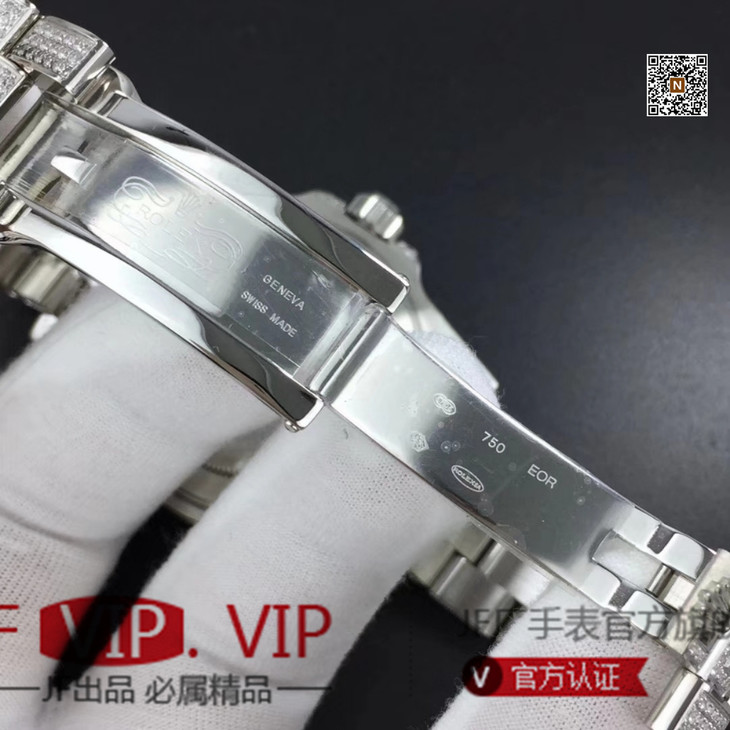 TW劳力士格林尼治型II的密镶钻特别款——ROLEX116769TBR-74779B完美还原史上最昂贵的劳力士满天星腕表。【表壳】腕表尺寸40mm。采用德国顶级904L蚝式钢所制。表盘,表圈,表壳,表链都密集镶满最顶级的施华洛世奇美钻。尽量还原正品奢华至极的无敌质感。【表带】采用904L蚝式钢打造,蚝式表带于1930年代末推出,由三排宽大、平整的链节组成,极其坚固,表链全身也整齐缜密的镶满美钻,效果光华四射。【机芯】采用顶级海鸥2824GMT两地时机芯。
