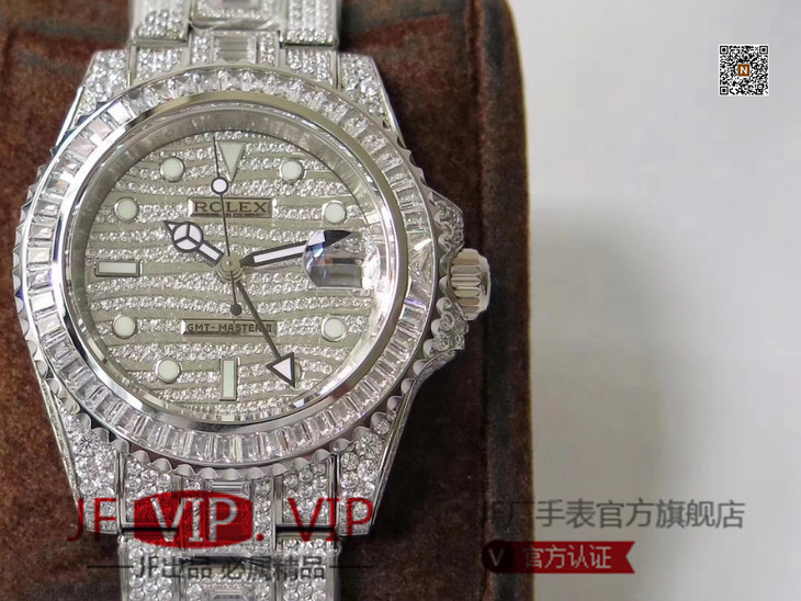 TW劳力士格林尼治型II的密镶钻特别款——ROLEX116769TBR-74779B完美还原史上最昂贵的劳力士满天星腕表。男士腕表,精钢表带,