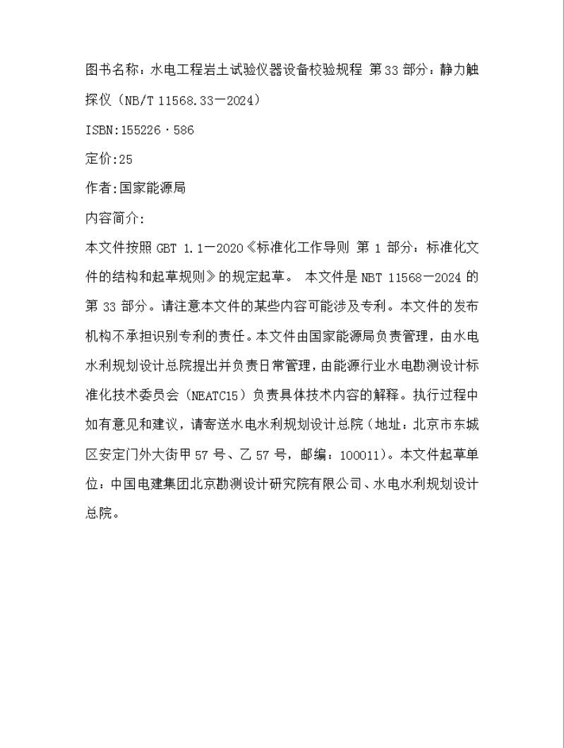 水电工程岩土试验仪器设备校验规程 第33部分:静力触探仪(NB/T 11568.33—2024)