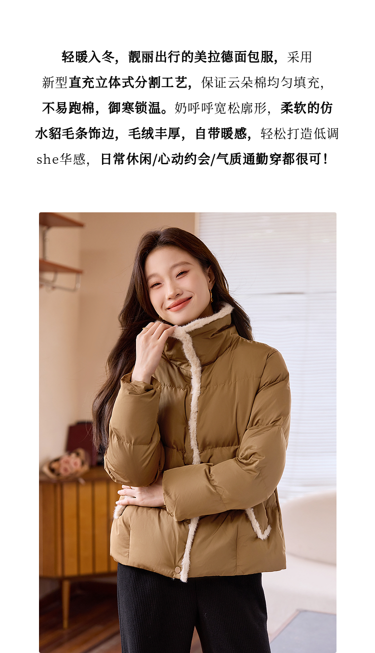 【139元福袋,不支持退换】熙世界羽绒棉服女冬季新款加厚保暖仿水貂毛领面包服棉衣短款外套