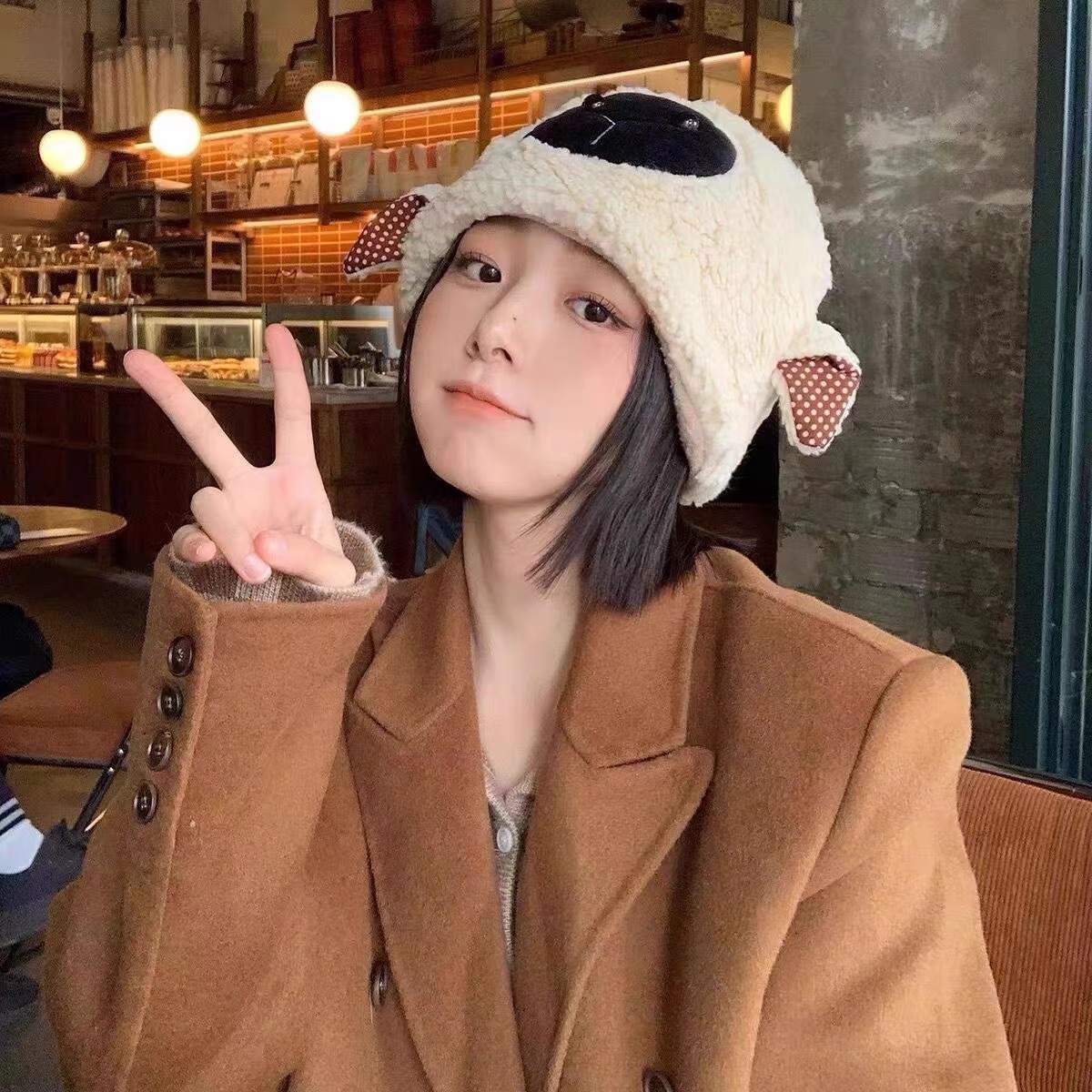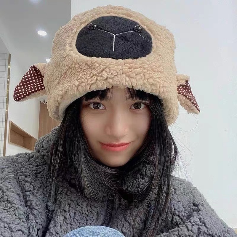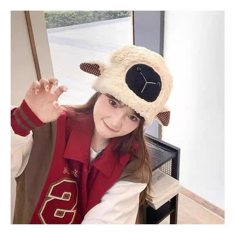 「9.9元包邮!五款配色」防风加厚小羊帽子 冬天渔夫帽女款韩系小羊耳朵可爱毛茸茸保暖羊羔配饰