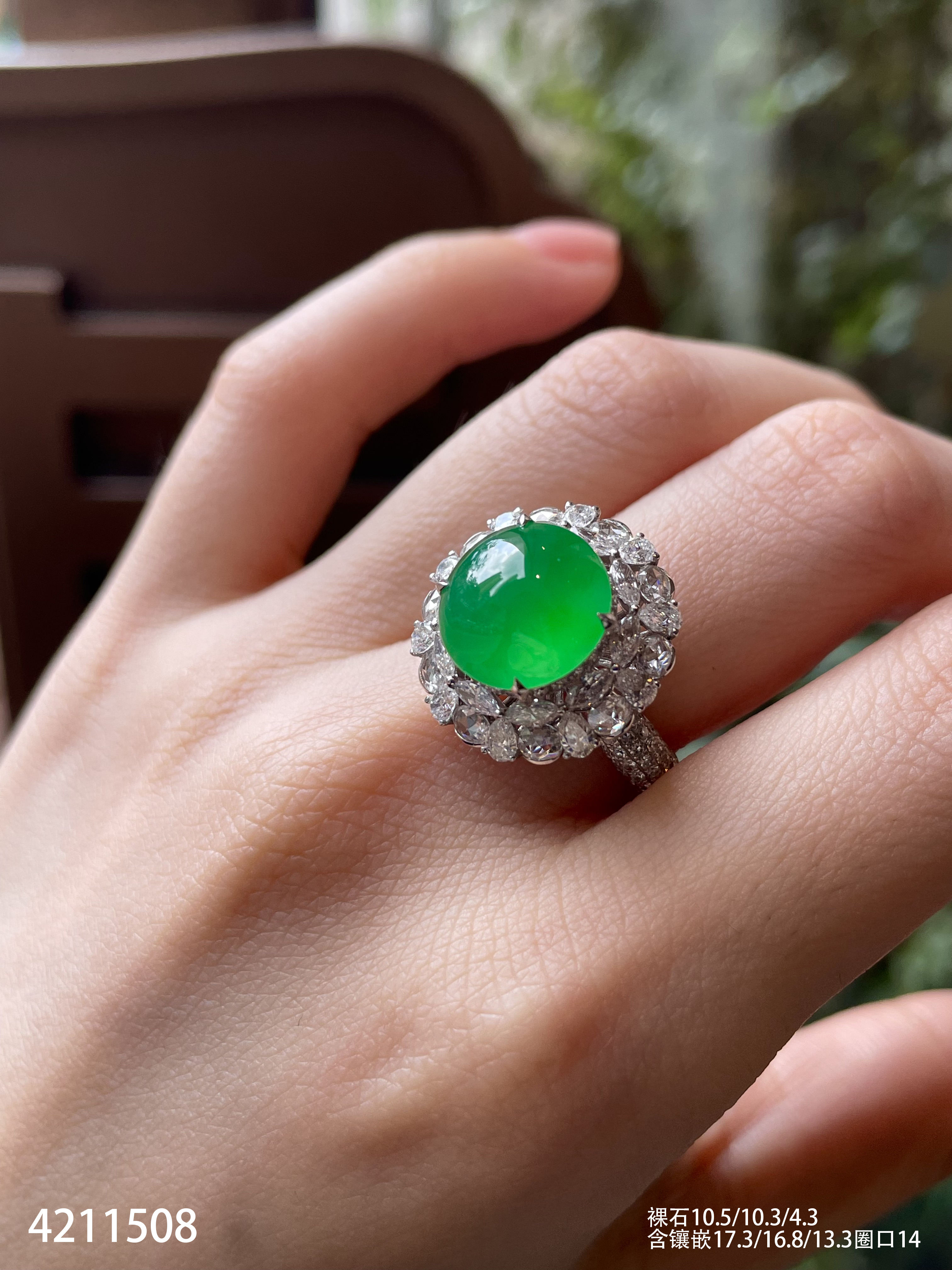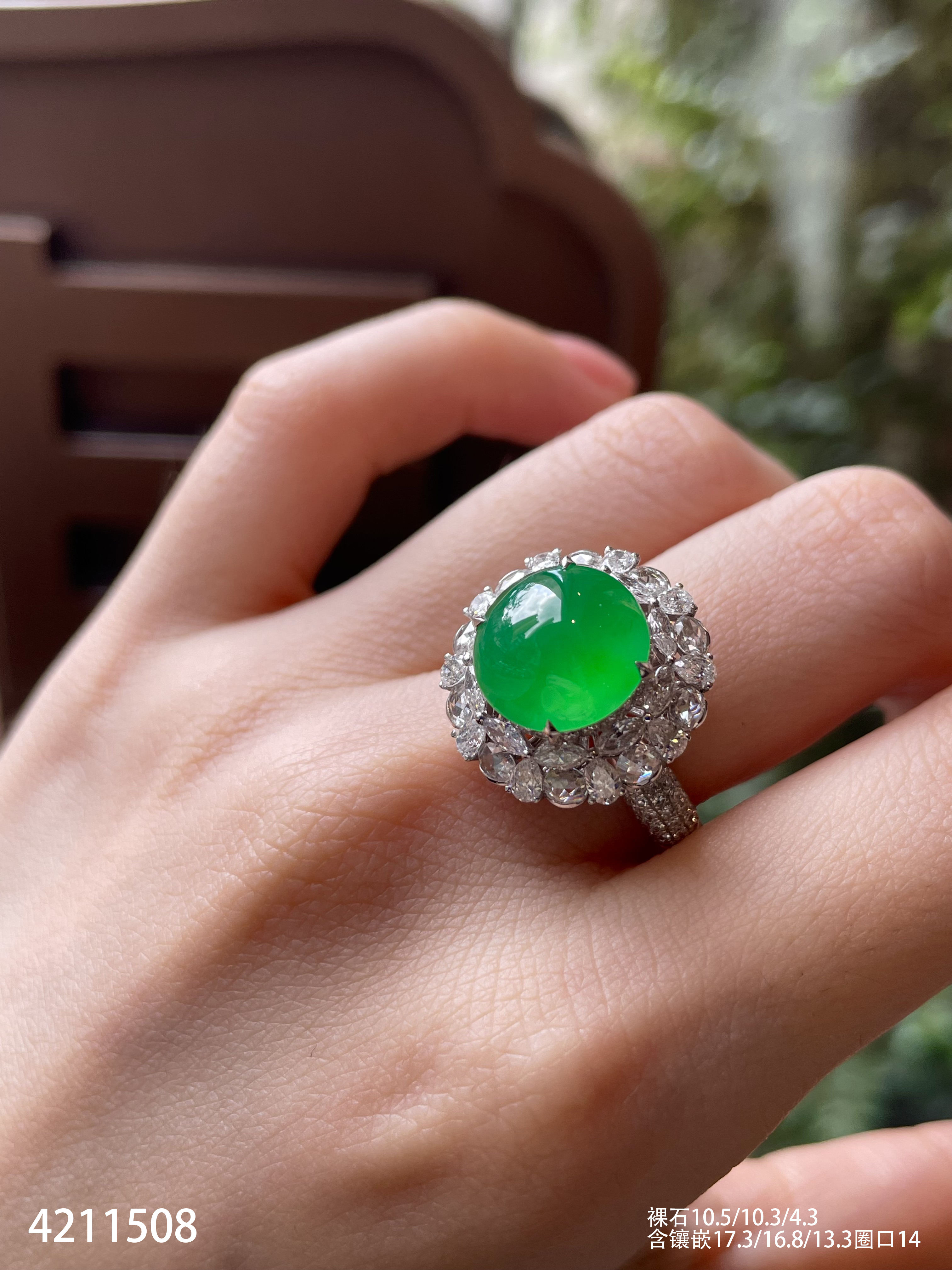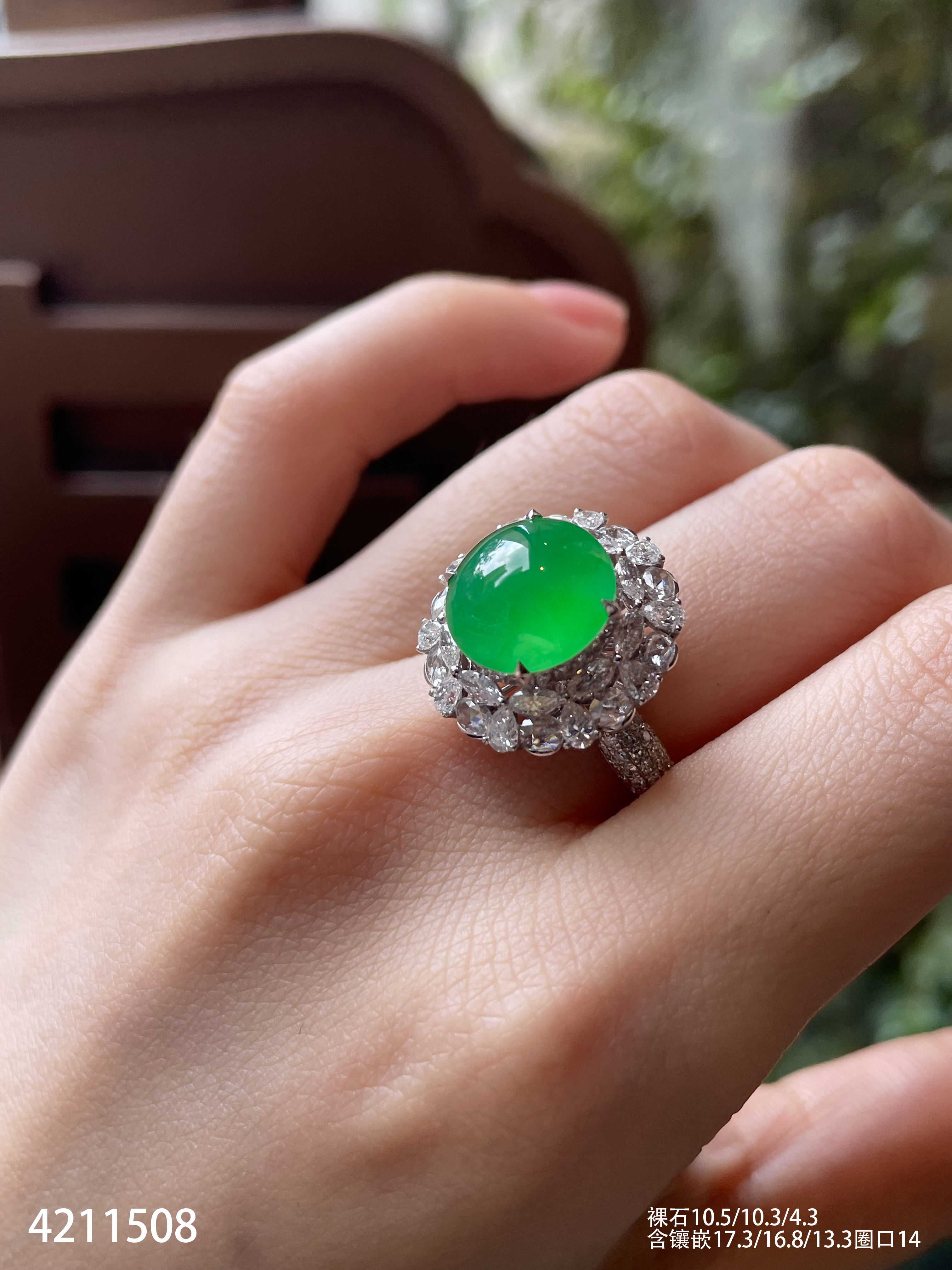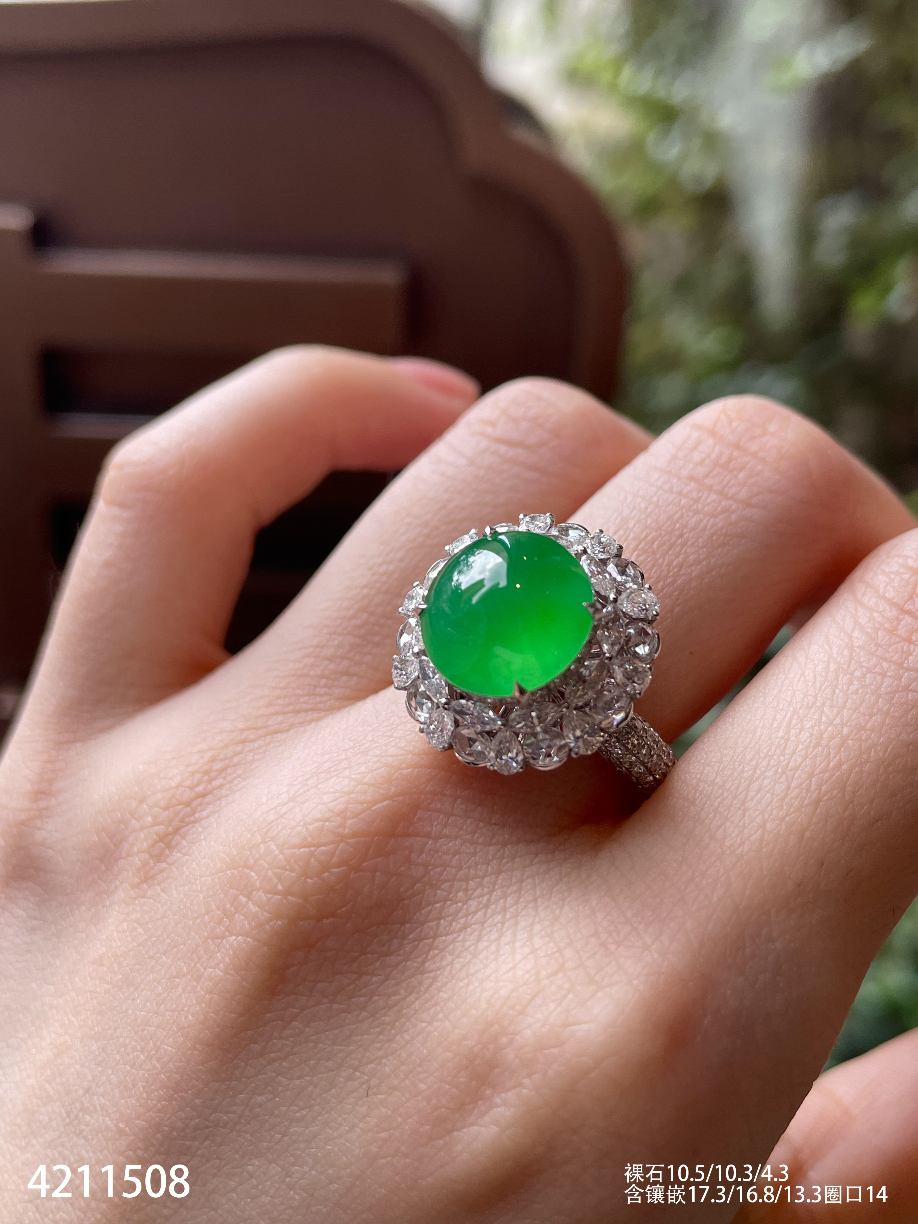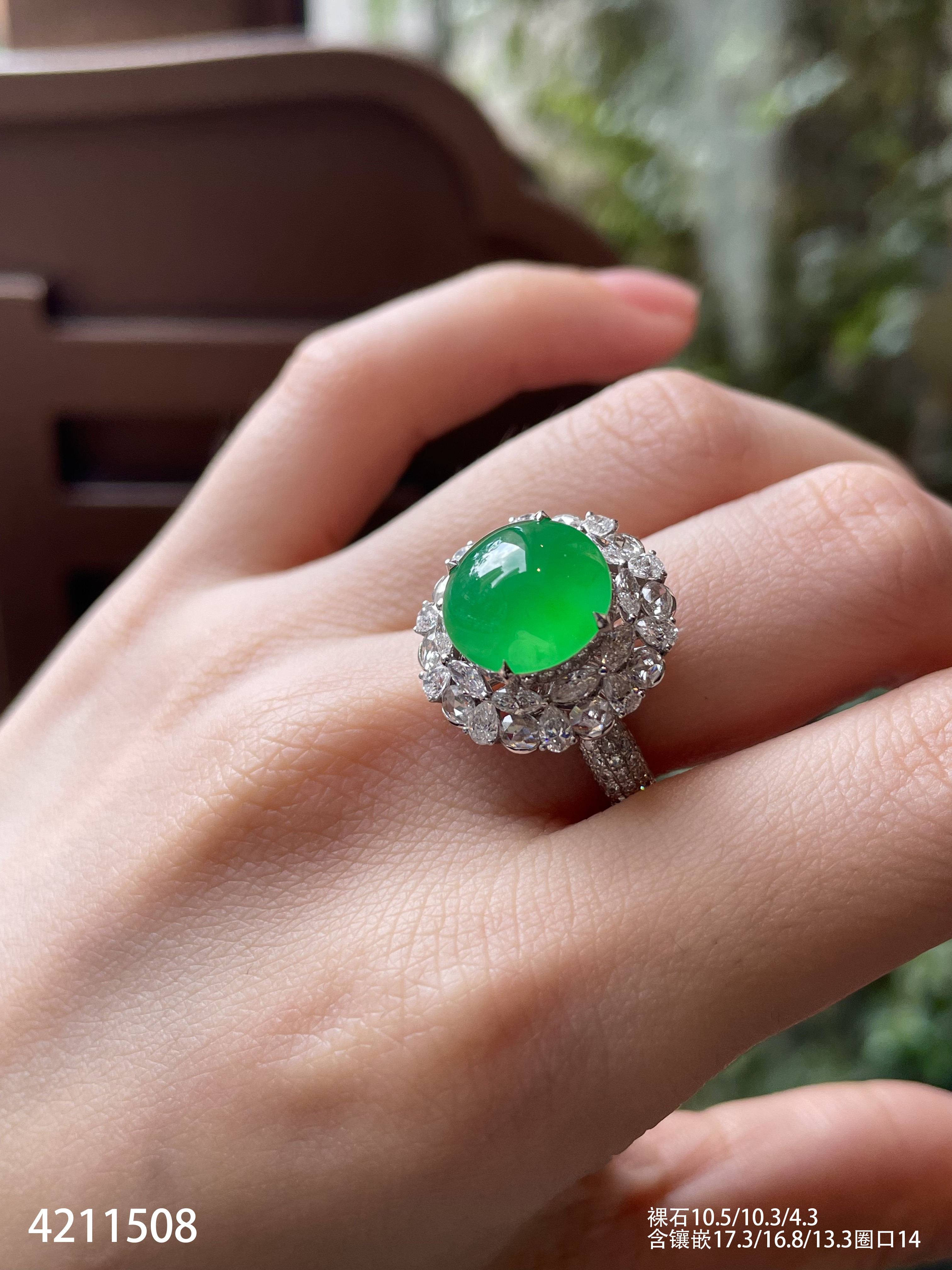 玻璃种阳艳绿蛋面戒指【4211508】具体价格微信咨询