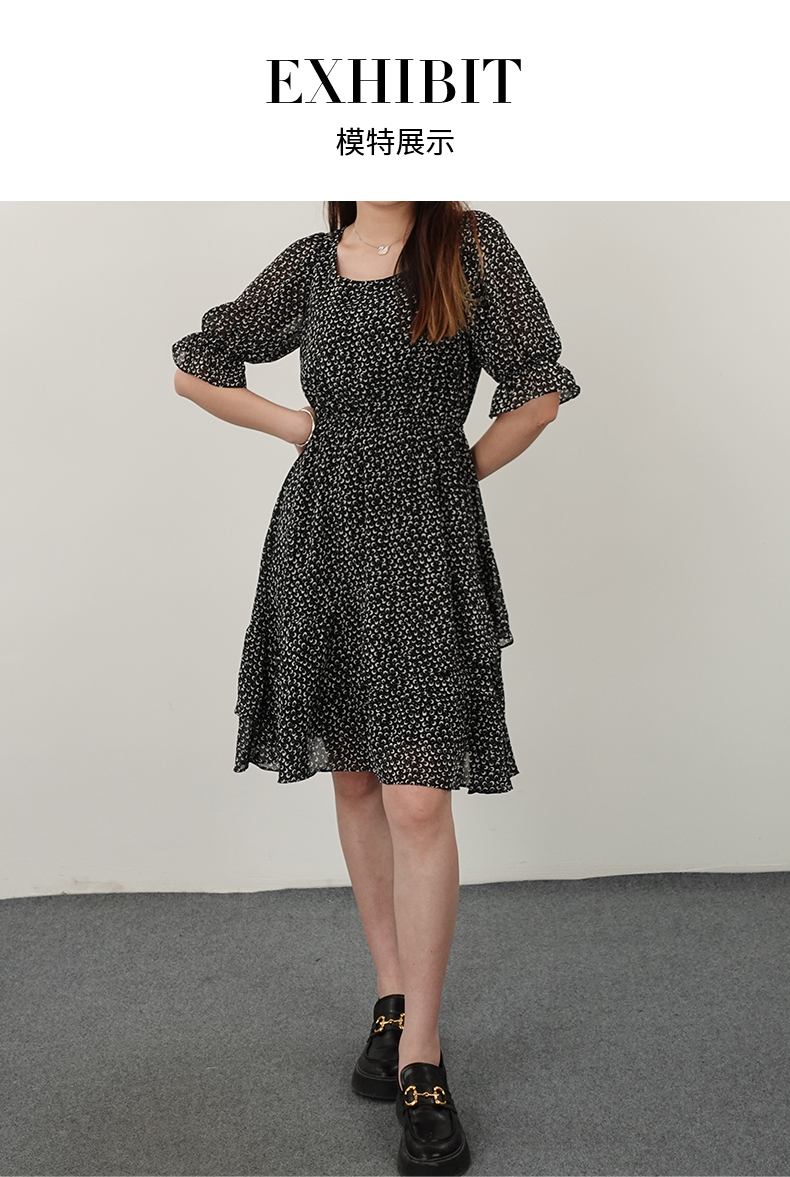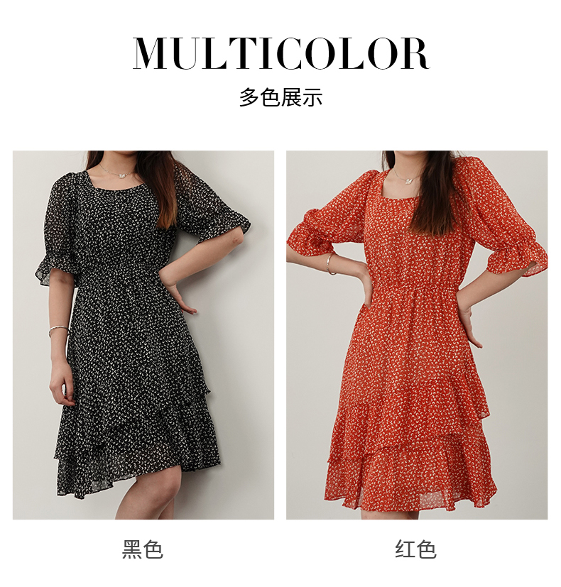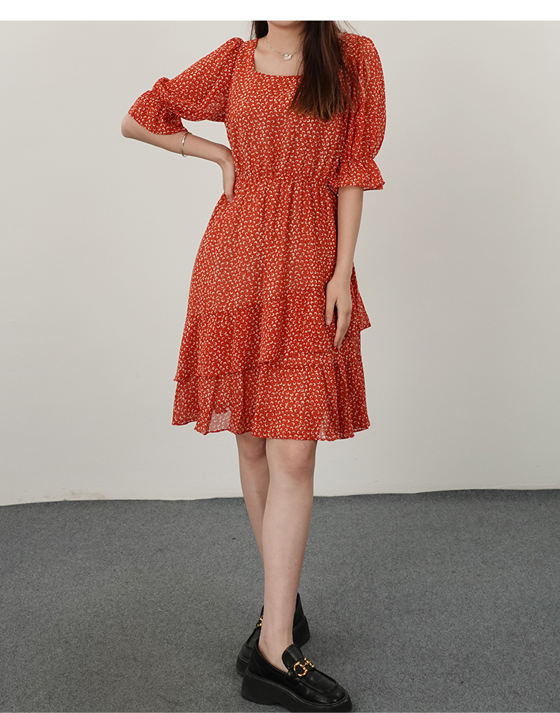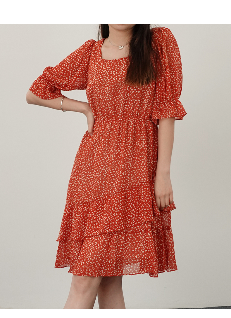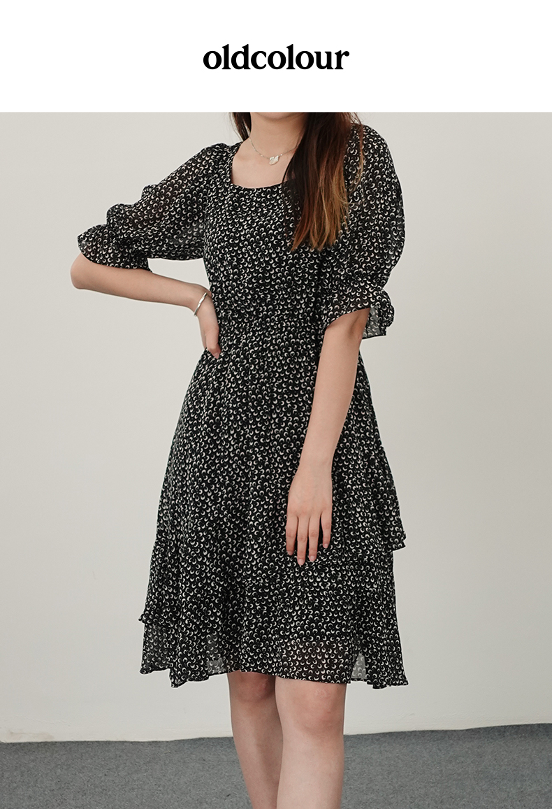 oldcolour21夏方领碎花高腰连衣裙薄款减龄N21101178