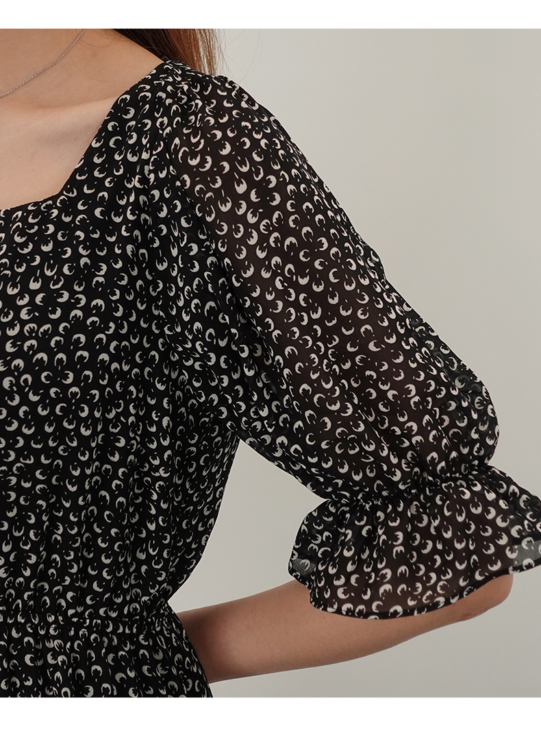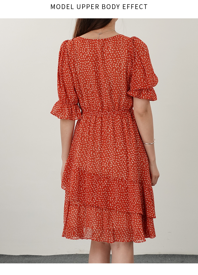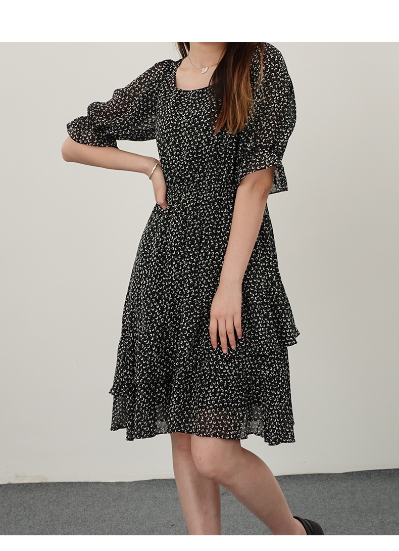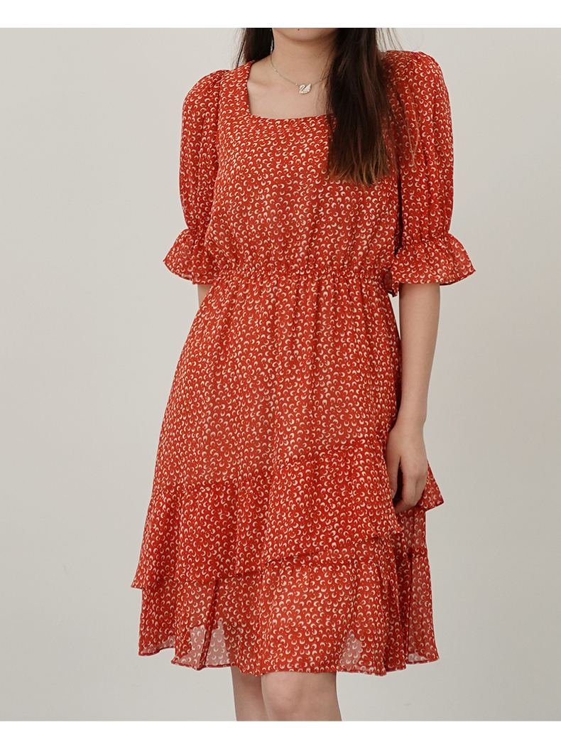 oldcolour21夏方领碎花高腰连衣裙薄款减龄N21101178